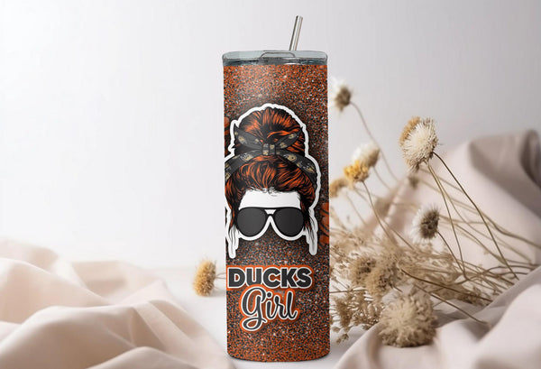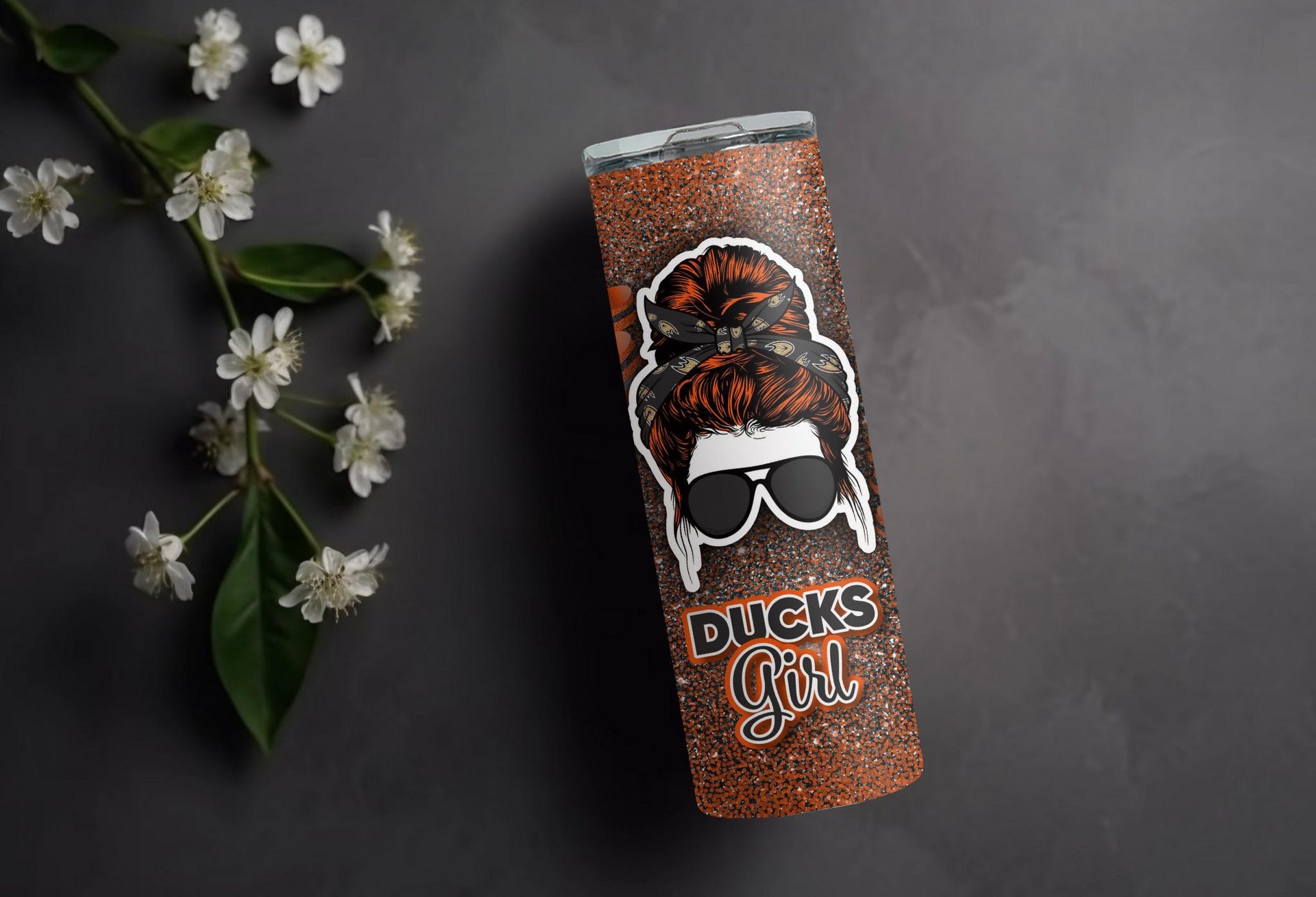 Show off your Anaheim pride with this stunning "Ducks Girl" tumbler!