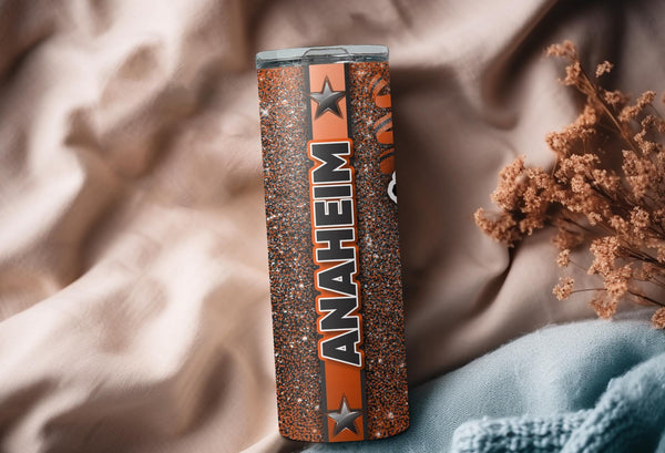 Whether you are cheering from the stands of the Honda Center or watching from home, this sparkling tumbler is the perfect way to keep your drink at the perfect temperature while representing your favorite team. Featuring a vibrant orange and black faux-glitter design, this cup is made for the ultimate hockey fan.