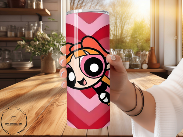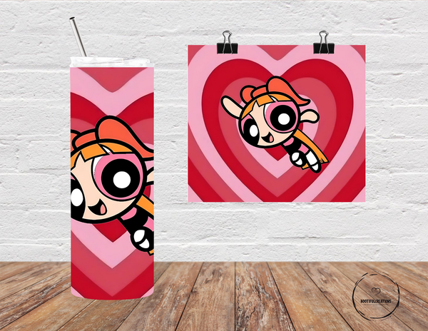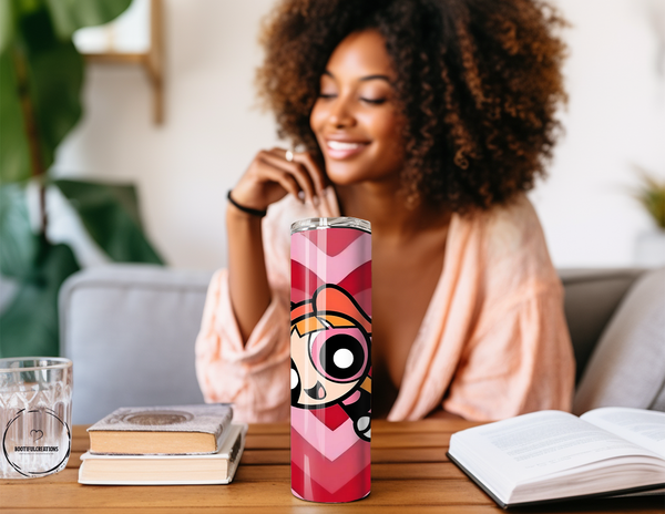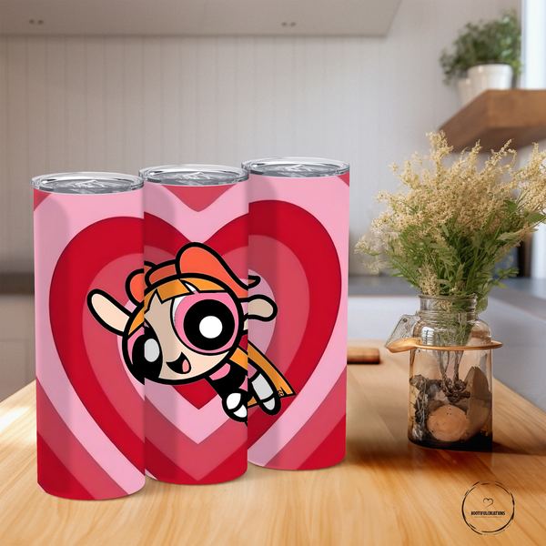 This personalized Blossom tumbler from the Powerpuff Girls features a red heart and can keep drinks hot for up to 6 hours and cold for up to 24 hours. Stay hydrated and show off your love for the Powerpuff Girls with this stylish and functional tumbler.