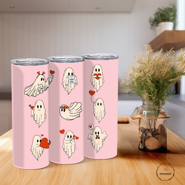 Introducing the Bootiful Valentine's Day Ghost Tumbler! Keep your drinks hot for up to 6 hours and cold for up to 24 hours with our adorable ghost illustrations and heartfelt Valentine's Day theme. Personalize it with a name for an extra special touch. Stay spooky and stylish this holiday!