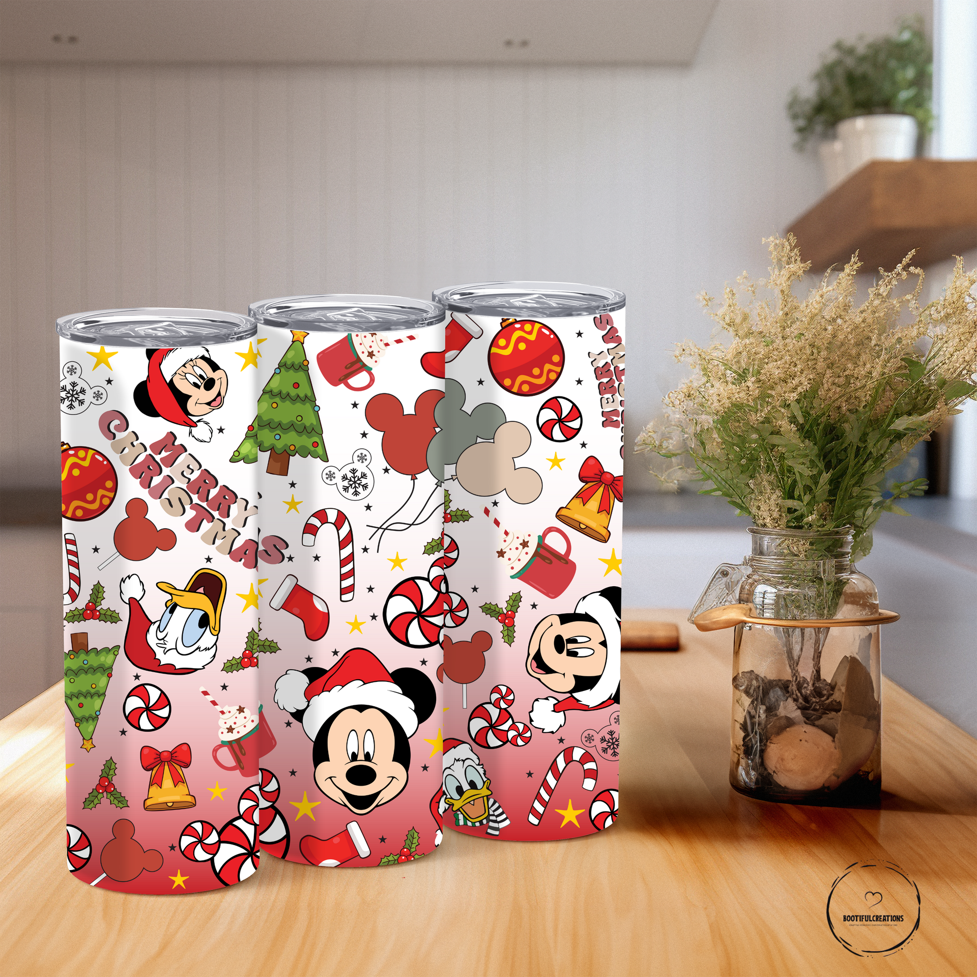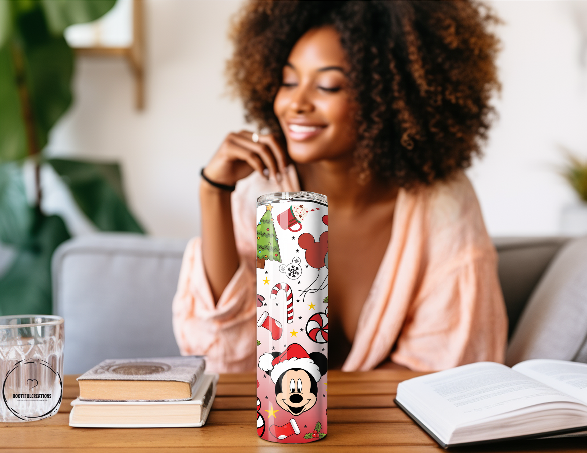 Stay festive and hydrated with our Christmas Mickey Mouse Tumbler! Featuring everyone's favorite mouse in a holiday theme, this tumbler keeps drinks hot for up to 6 hours and cold for up to 24 hours. Personalize it with a name for the perfect gift. Don't wait, grab yours today!