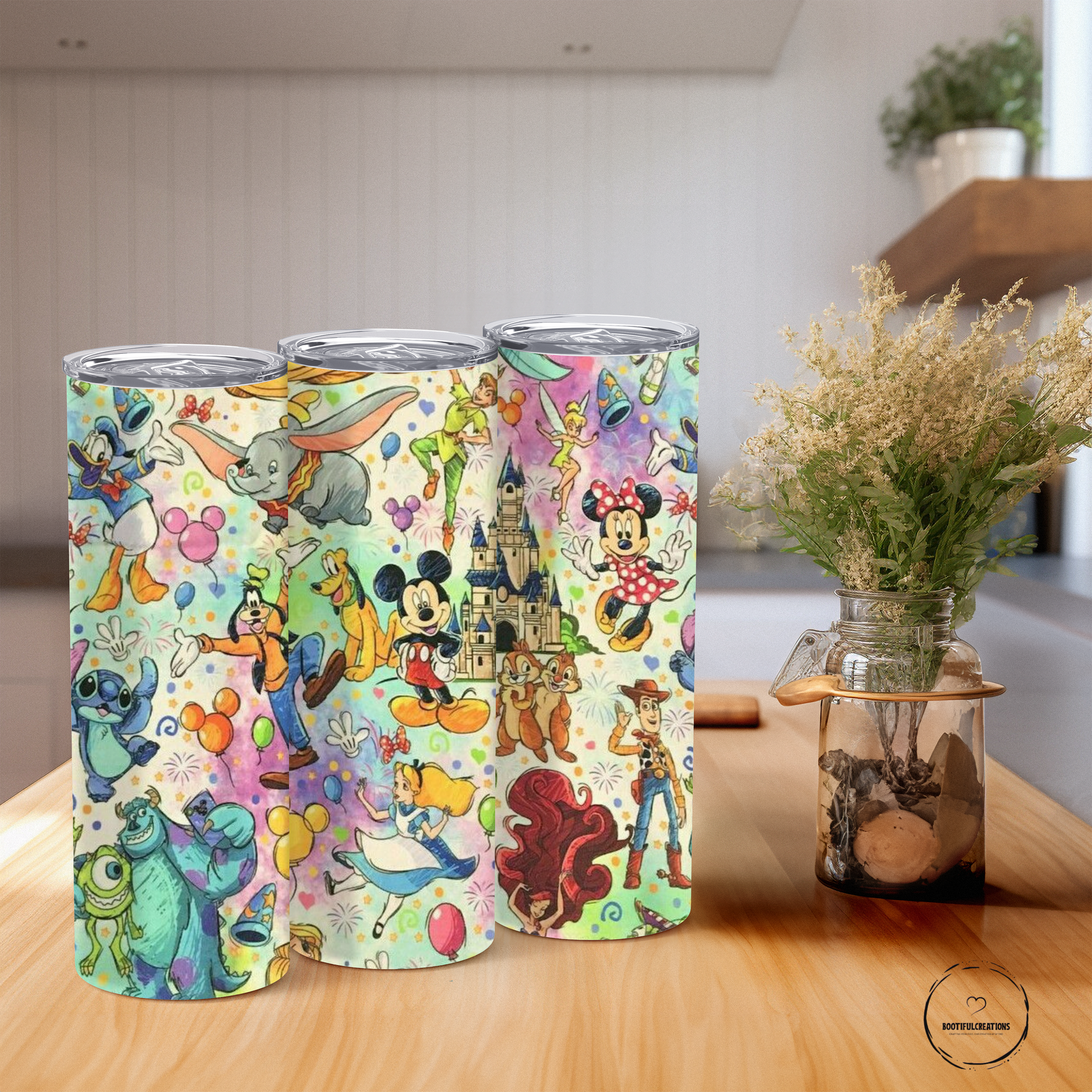 Experience the magic of Disney on the go with our Disney Magic Tumbler! Featuring beloved classic characters, this tumbler can keep your drinks hot for up to 6 hours and cold for up to 24 hours. Personalize it with a name for the perfect touch. Bring the magic with you, wherever you go!