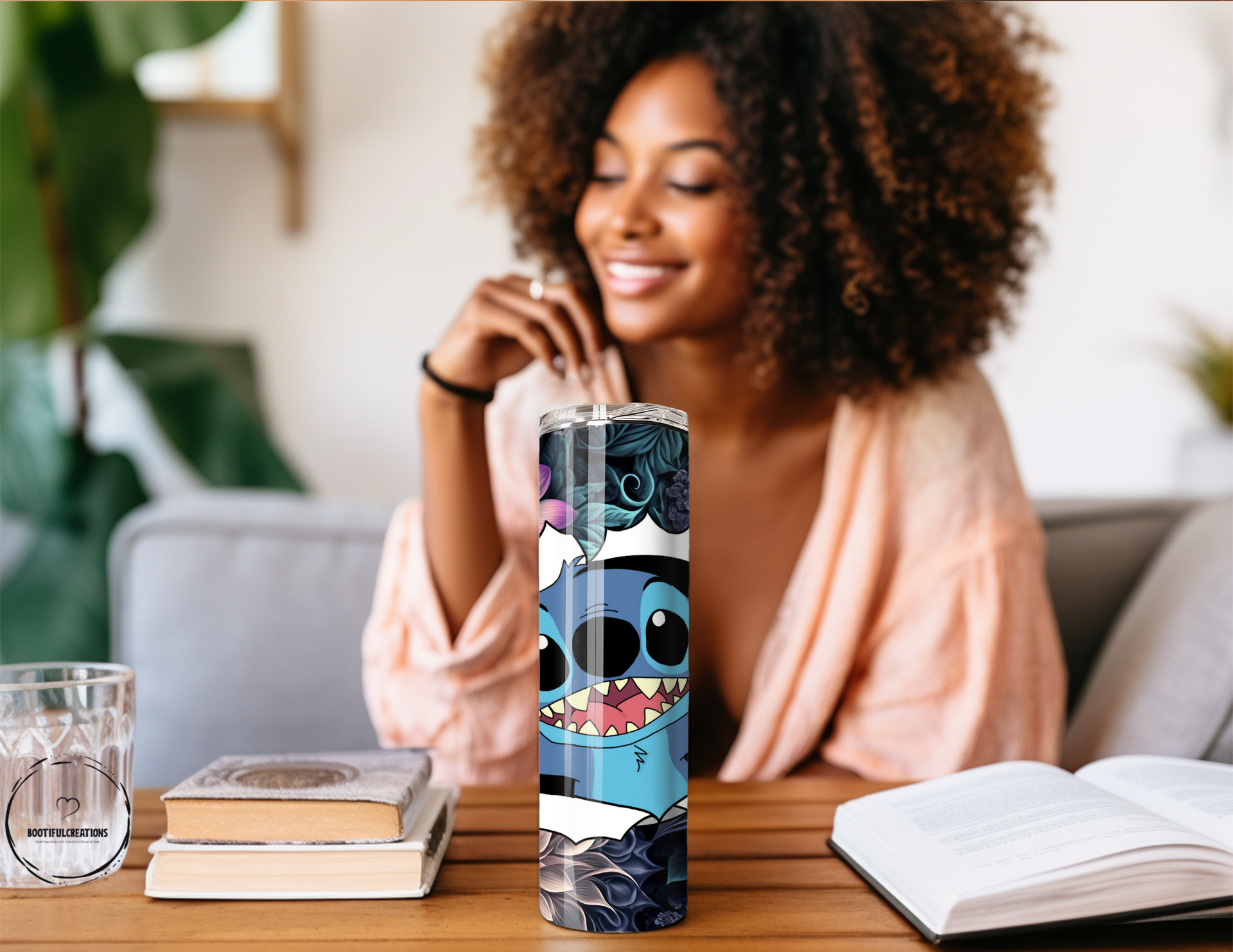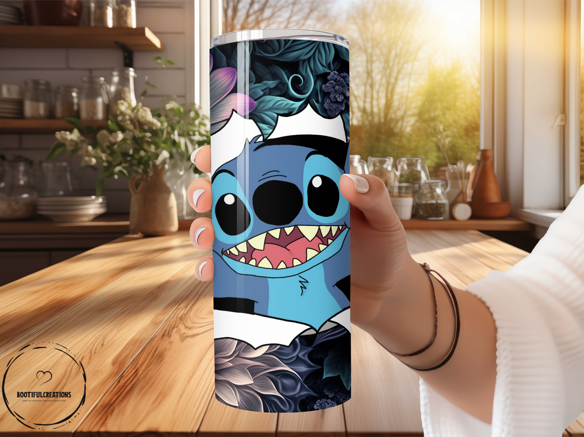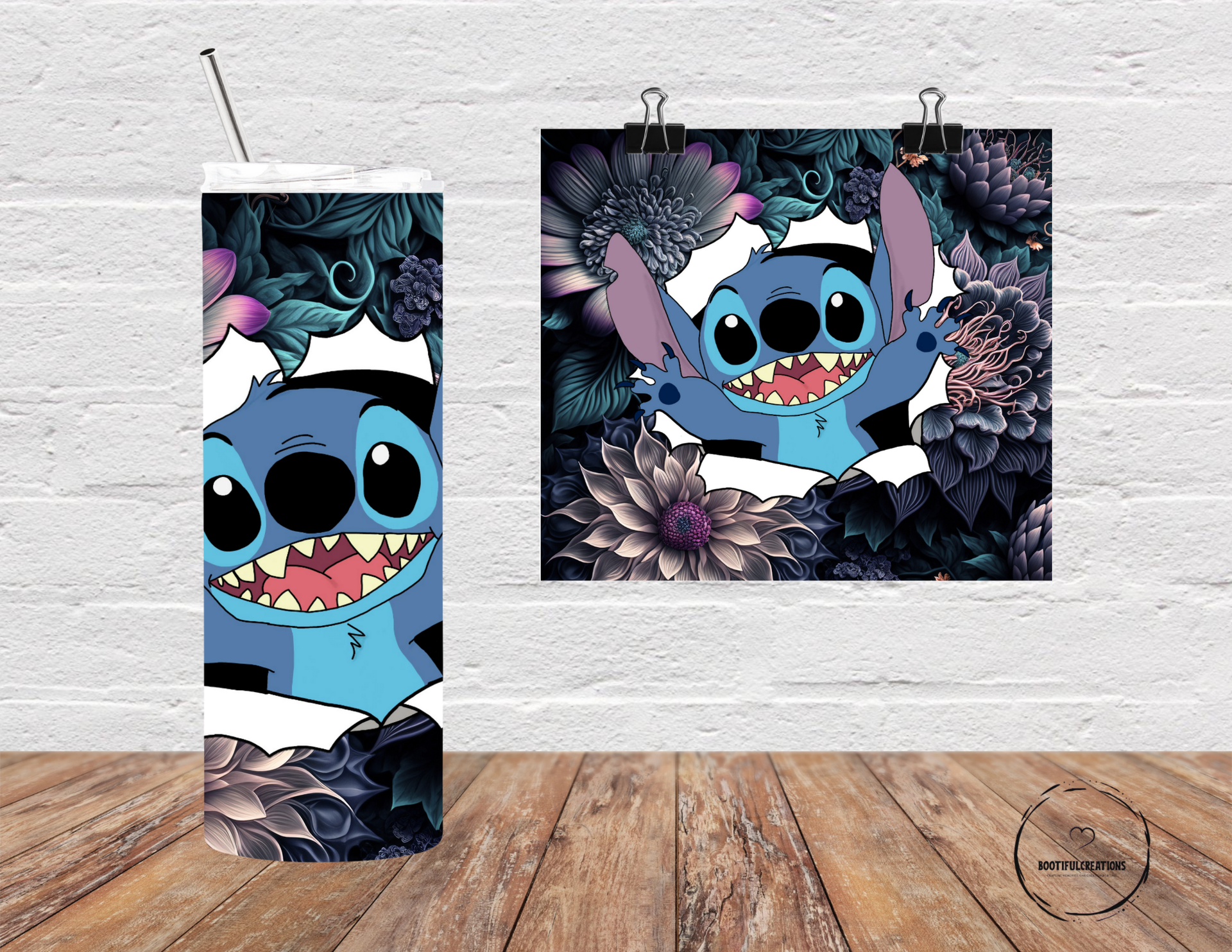 Stay stylish and hydrated with our Floral Stitch Tumbler! Keep your drinks hot for up to 6 hours and cold for up to 24 hours with its insulated design. Personalize it with your name for a unique touch. With its beautiful floral pattern and everyone's favorite alien, Stitch; this tumbler will make a statement wherever you go!