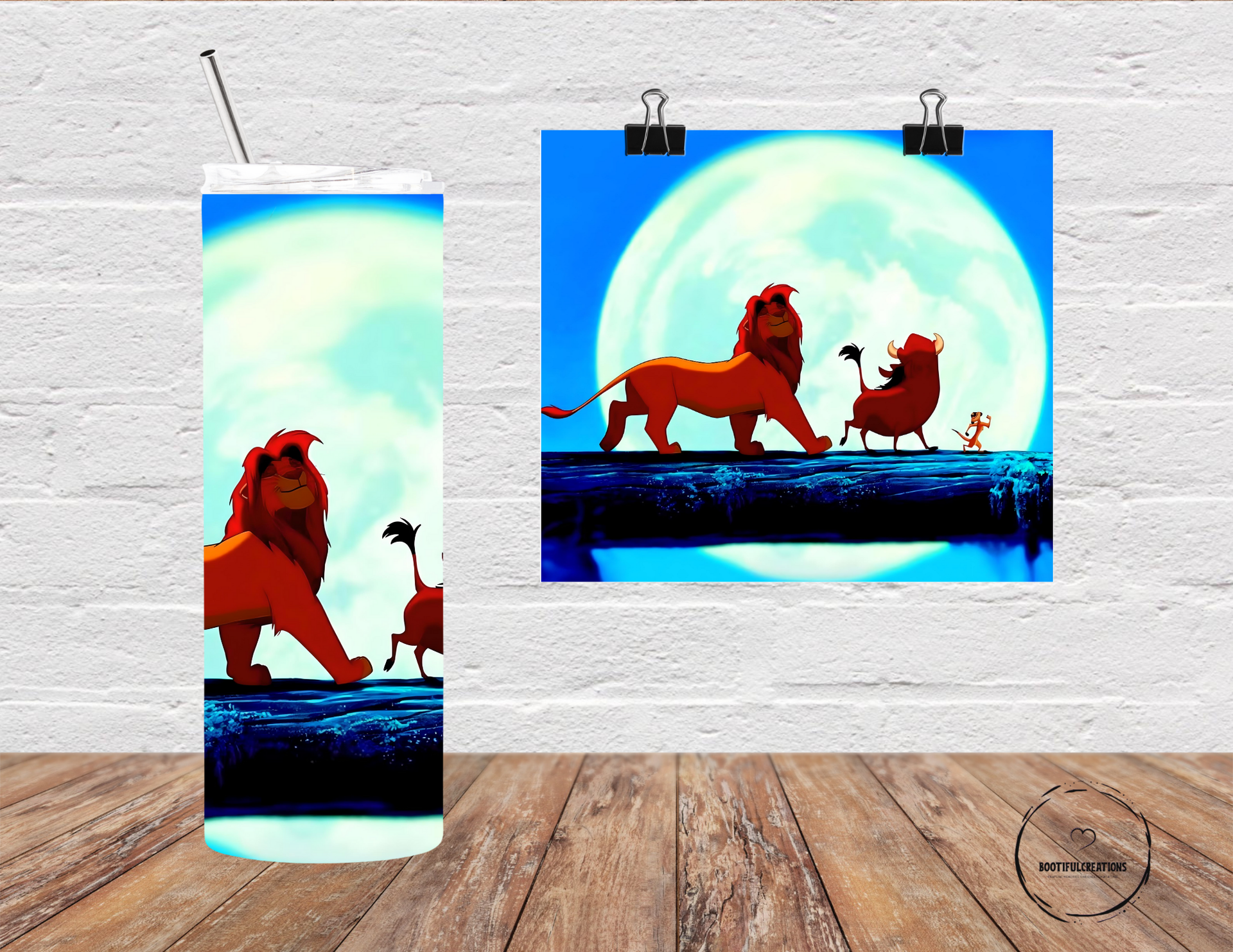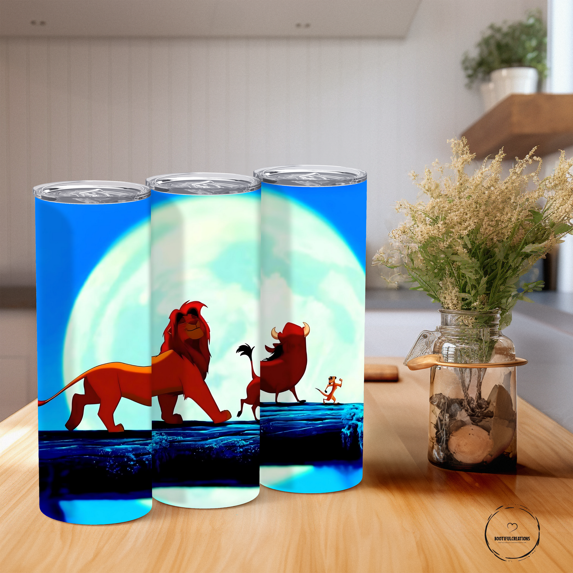 Experience the magic of the Lion King with our Hakuna Matata tumbler! Featuring Simba, Timon, and Pumbaa, this tumbler keeps drinks hot for up to 6 hours and cold for up to 24 hours. Personalize it with a name to make it extra special. No worries, just enjoy your drink in style!