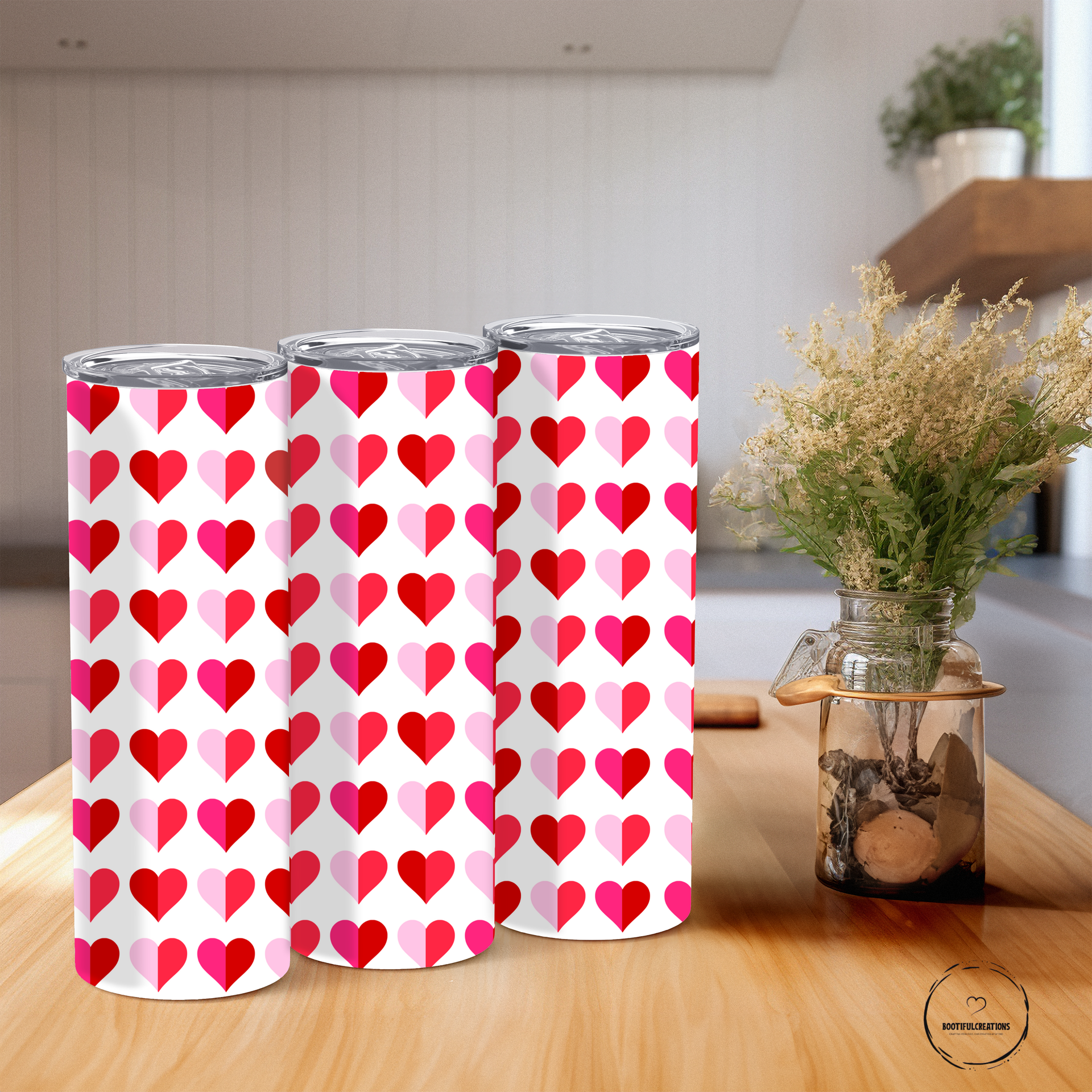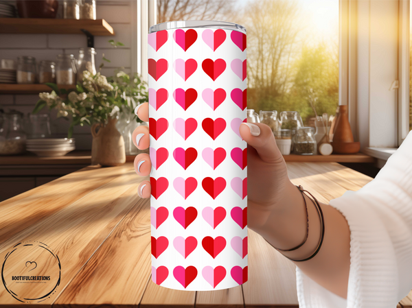 Unleash your love with our Heart Pattern Tumbler! Adorned with a charming pattern of alternating red and pink hearts, it's sure to make your heart skip a beat. Keep your drinks hot for up to 6 hours and cold for up to 24 hours. And for a special touch, personalize it with a name!