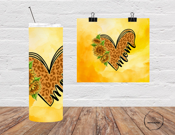 Leopard Print Heart and Sunflowers Mom Tumbler