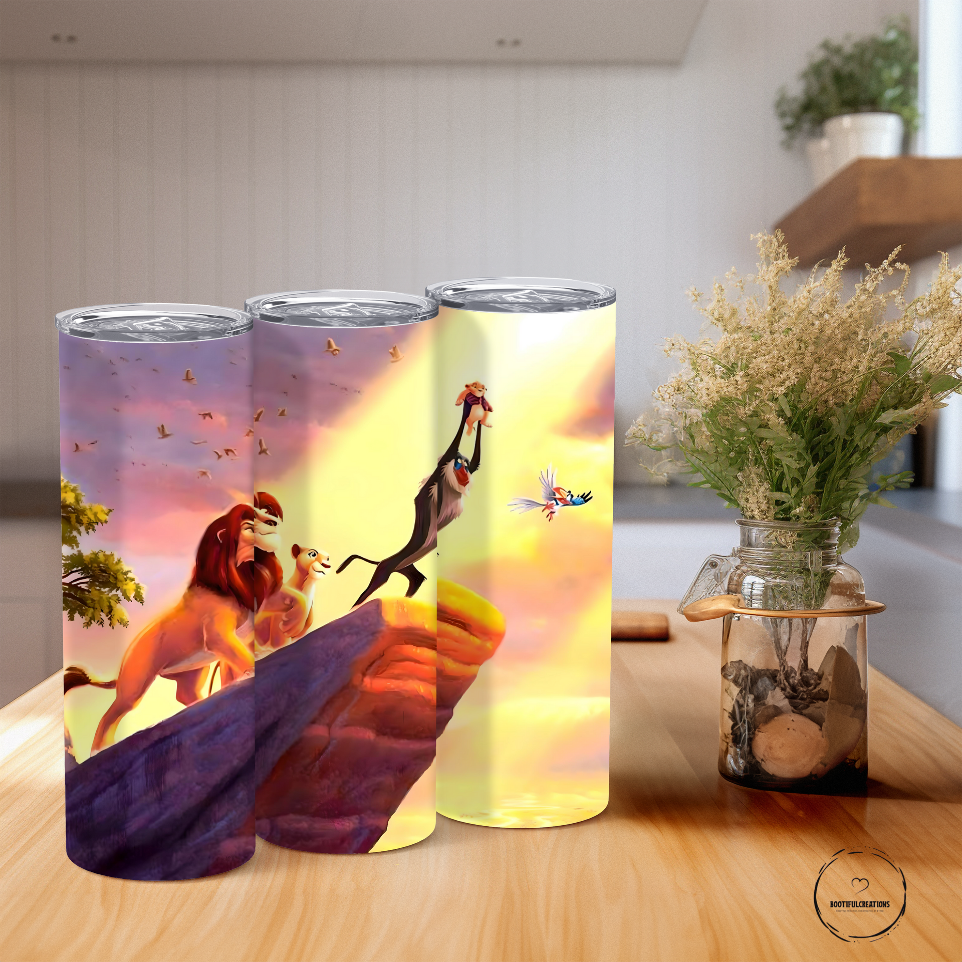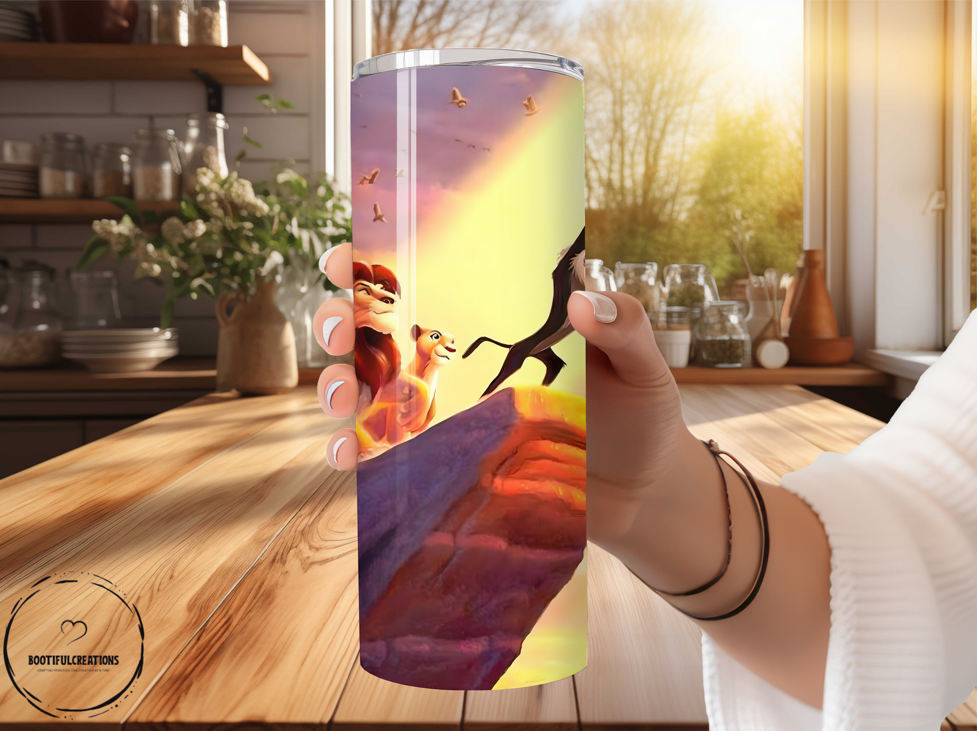 Feel the magic of the Lion King with our tumbler! Keep your drinks hot for up to 6 hours or cold for up to 24 hours. Personalize it with your name and feel like part of the pride. Stay hydrated in style and make every sip an adventure!