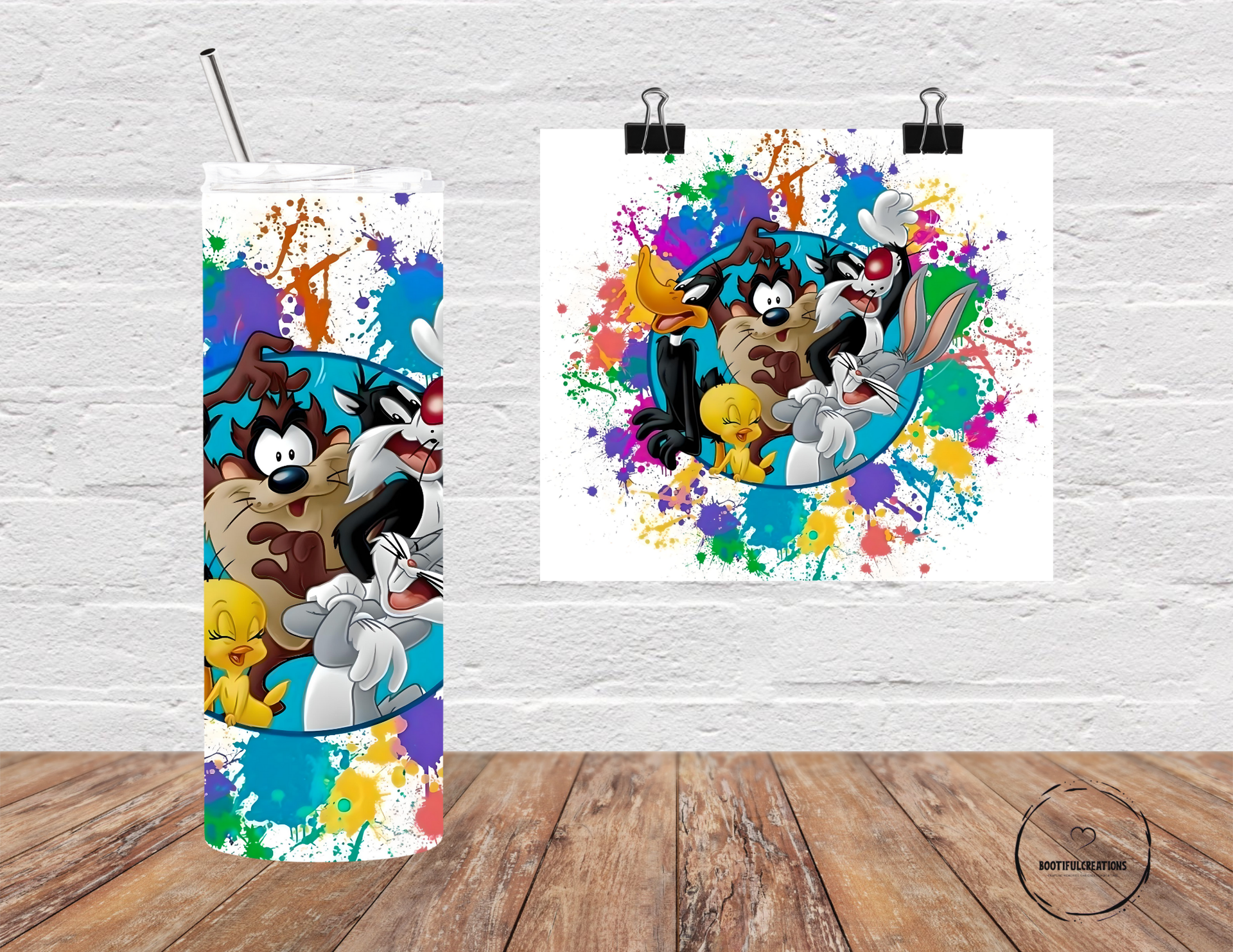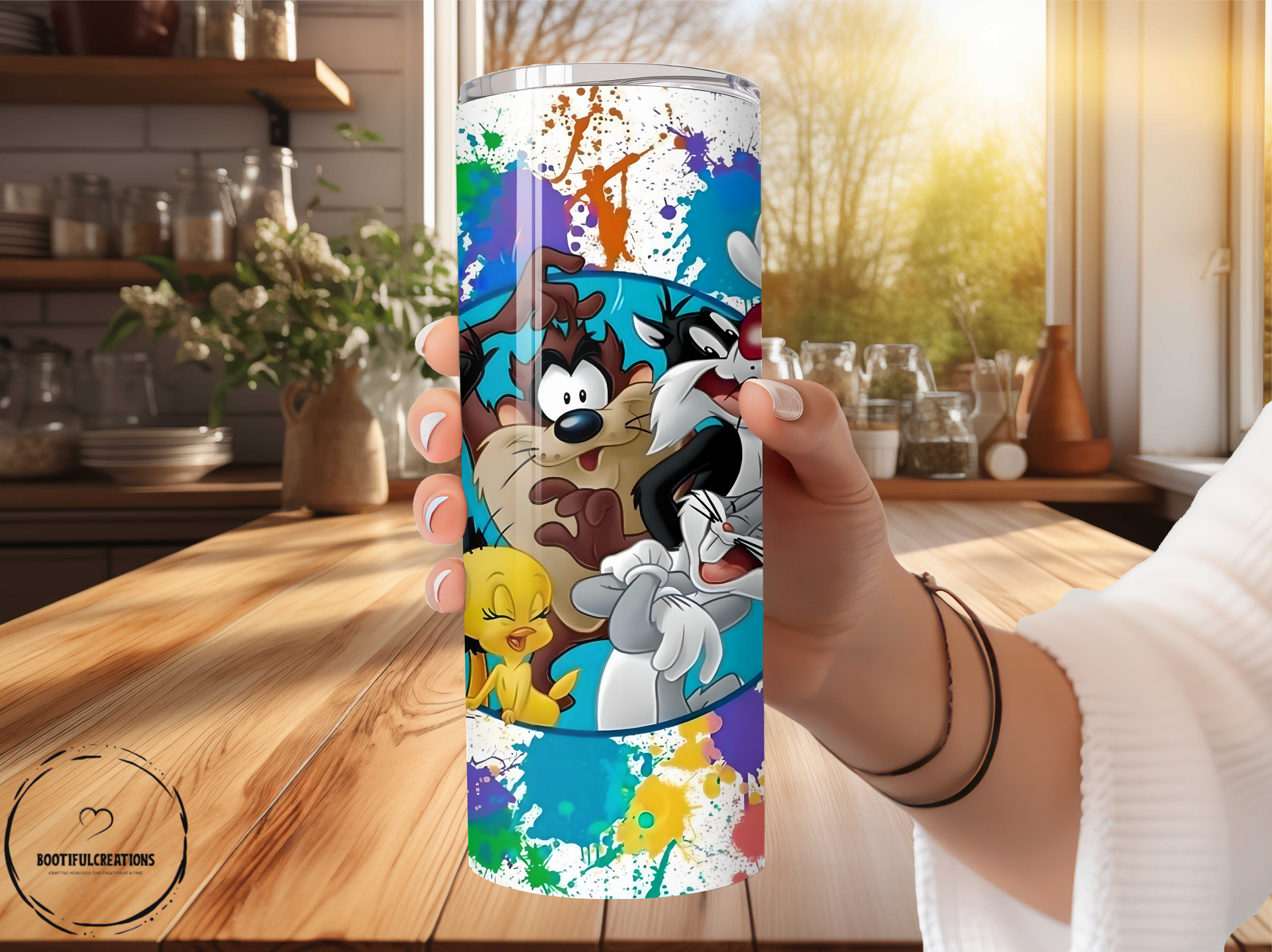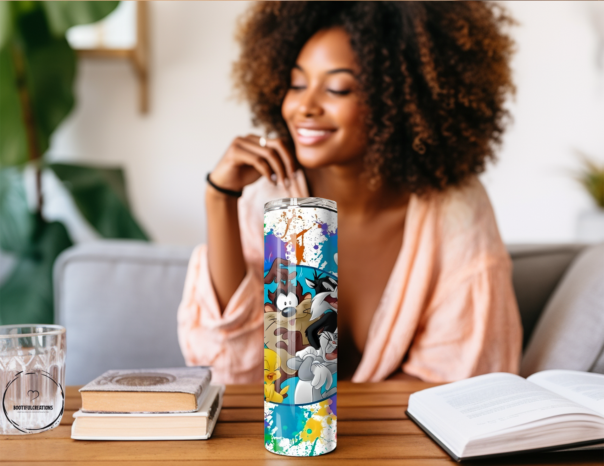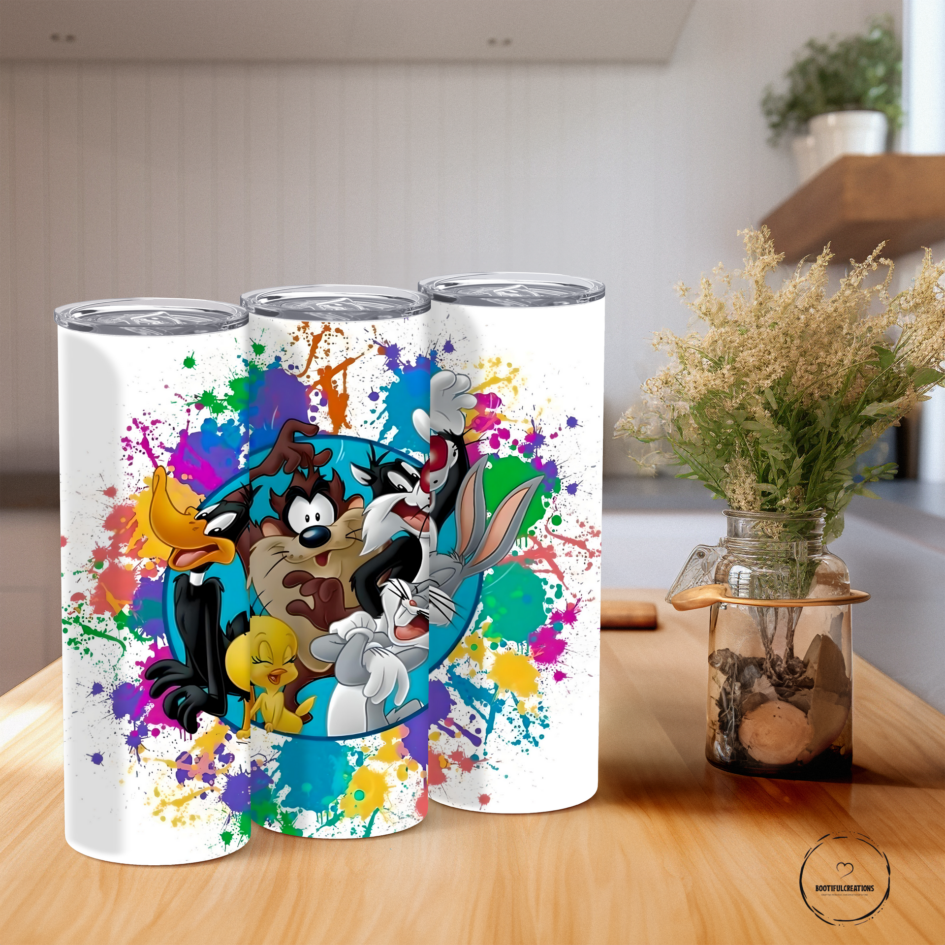 Stay refreshed with the Looney Tunes Character Burst Tumbler featuring your favorite characters. Keep your drink hot for up to 6 hours or cold for up to 24 hours. Personalize it with your name for a unique touch. Perfect for any fan of these beloved cartoons!