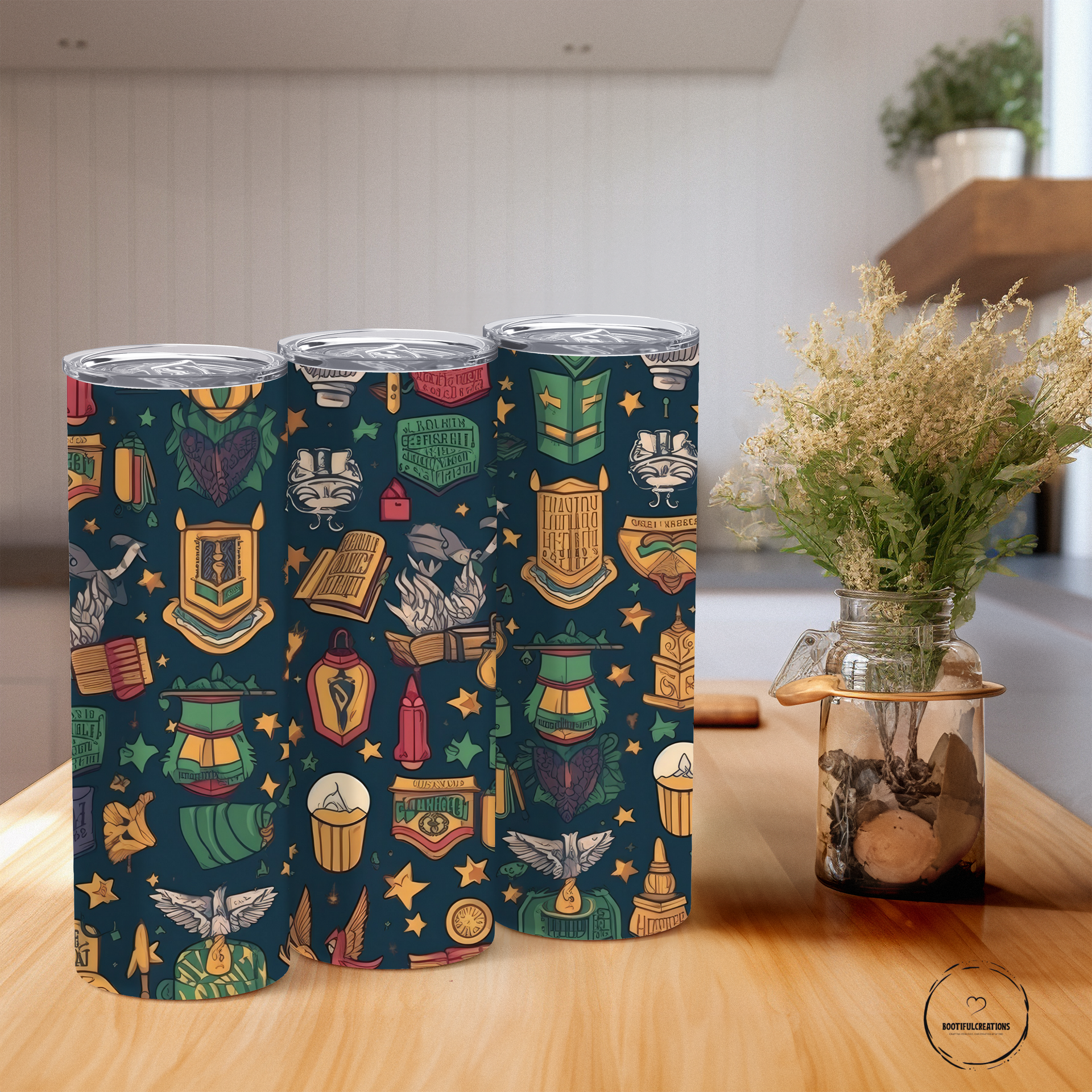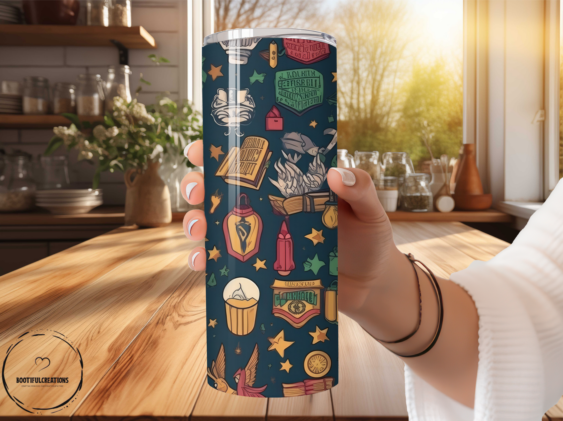 Elevate your daily beverage experience with our Magical Elements Tumbler. Featuring enchanting elements like books, candles, and potion bottles, this tumbler will inspire and delight. Keep your drink hot for up to 6 hours or cold for up to 24 hours. Personalize it with your name for a truly magical touch.
