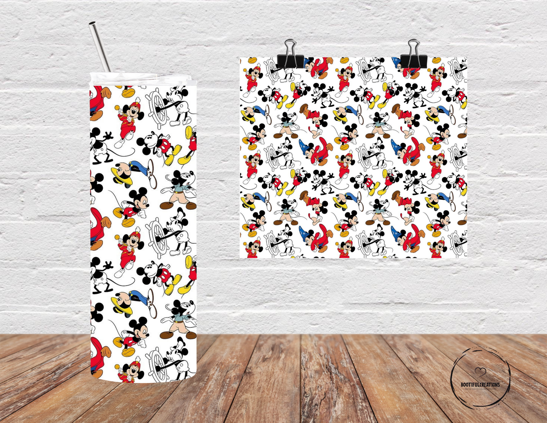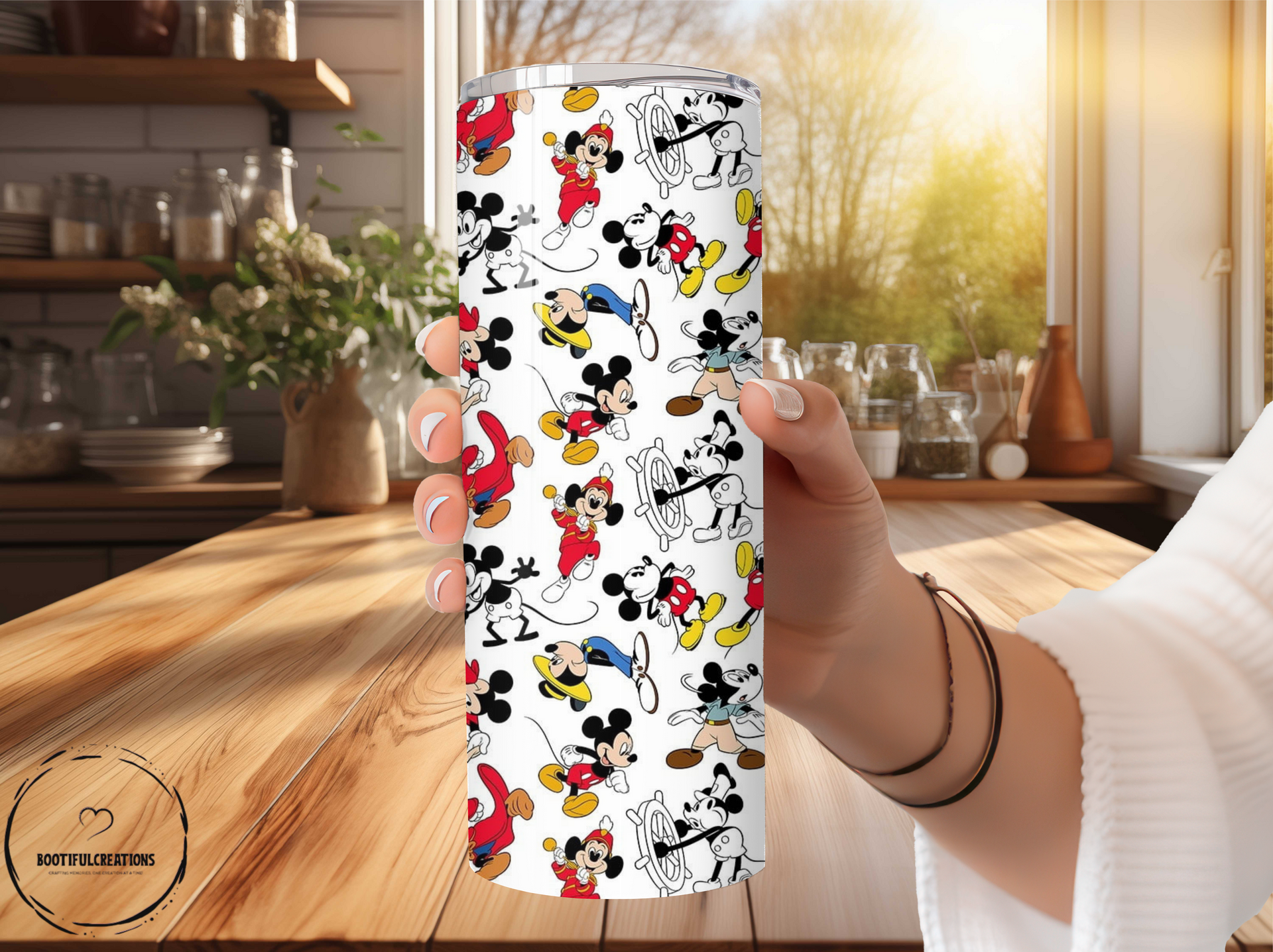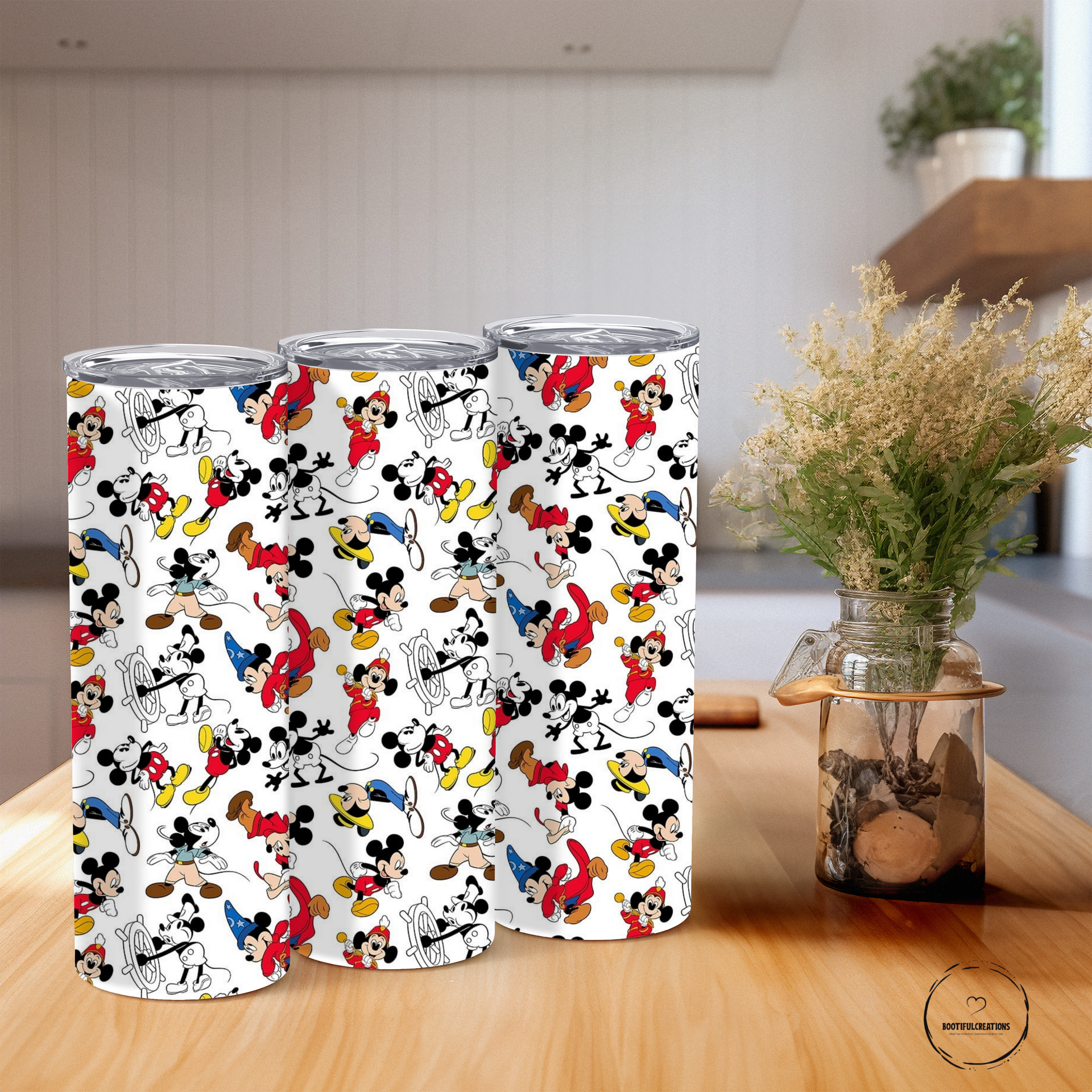 Stay hydrated in style with our Mickey Mouse Pattern Tumbler! The tumbler features a fun and nostalgic design of Mickey Mouse through the years. It can keep your drinks hot for up to 6 hours and cold for up to 24 hours. Plus, it can be personalized with a name to make it truly one-of-a-kind. Order now and add some magic to your daily routine!