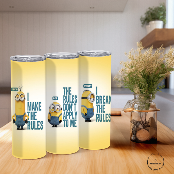 Keep your drinks hot or cold for hours with our Minion Attitude Tumbler! Add a personalized touch with your name and enjoy the company of your favorite Minions - Kevin, Bob, and Stuart. Stay hydrated and stylish with this tumbler, perfect for on-the-go adventures!