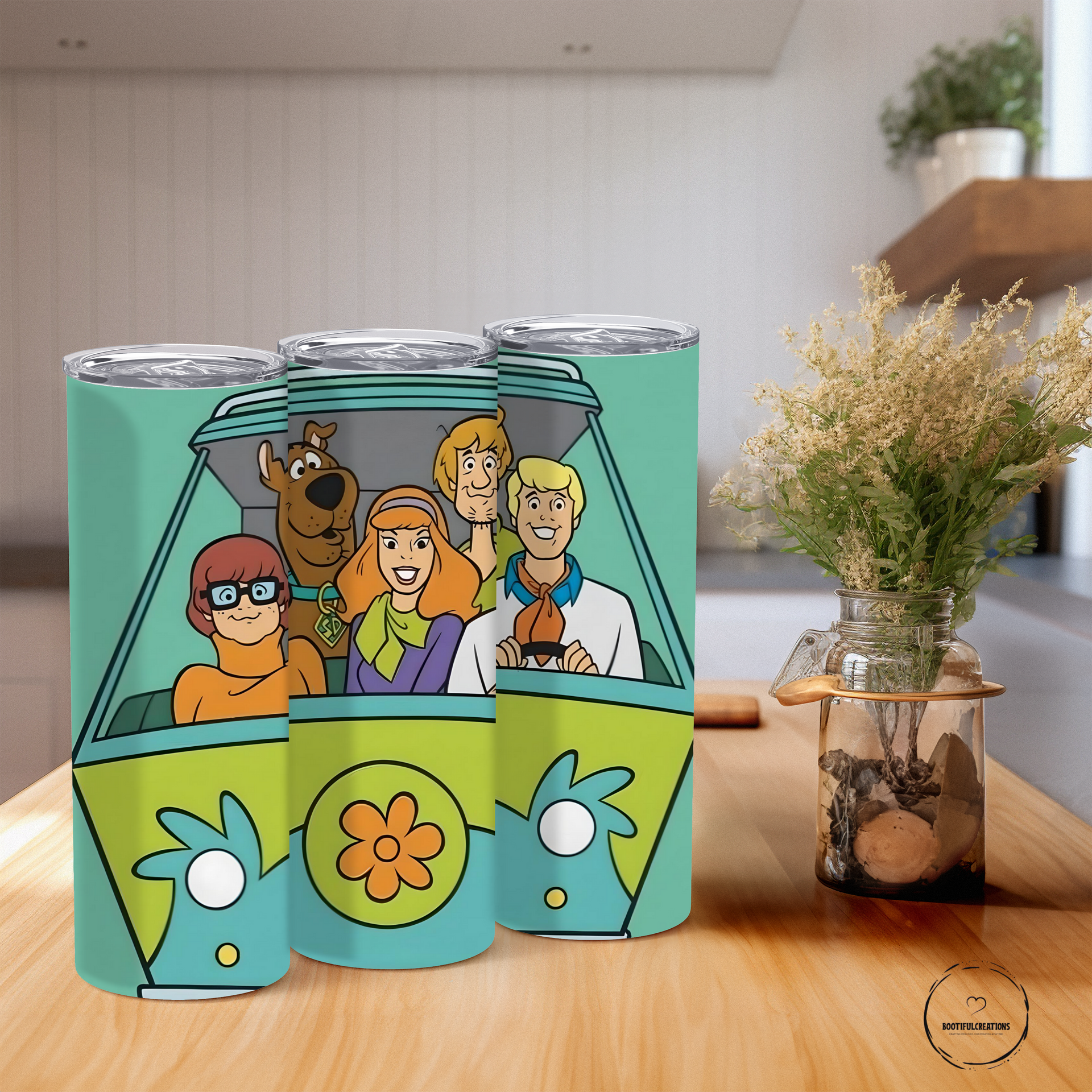 Experience the mystery of on-the-go drinks with the Mystery Machine Tumbler! Keep your drinks hot for up to 6 hours and cold for up to 24 hours. Personalize it with a name for a unique touch. Perfect for any adventure!