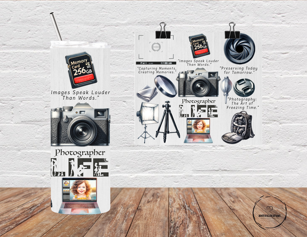 Stay refreshed and energized on-the-go with our Photographer Life Tumbler! This tumbler keeps your drinks hot for up to 6 hours and cold for up to 24 hours, perfect for long photoshoots. Personalize your tumbler with your name for that extra special touch. Fuel your passion for photography wherever you go!