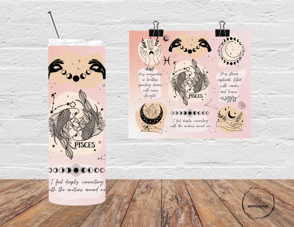 Stay hydrated in style with our Pisces Zodiac Sign Tumbler! This unique tumbler features the symbolic Pisces zodiac sign and can keep your drink hot for up to 6 hours or cold for up to 24 hours. Personalize it with your name for a special touch. A must-have for any astrology lover!