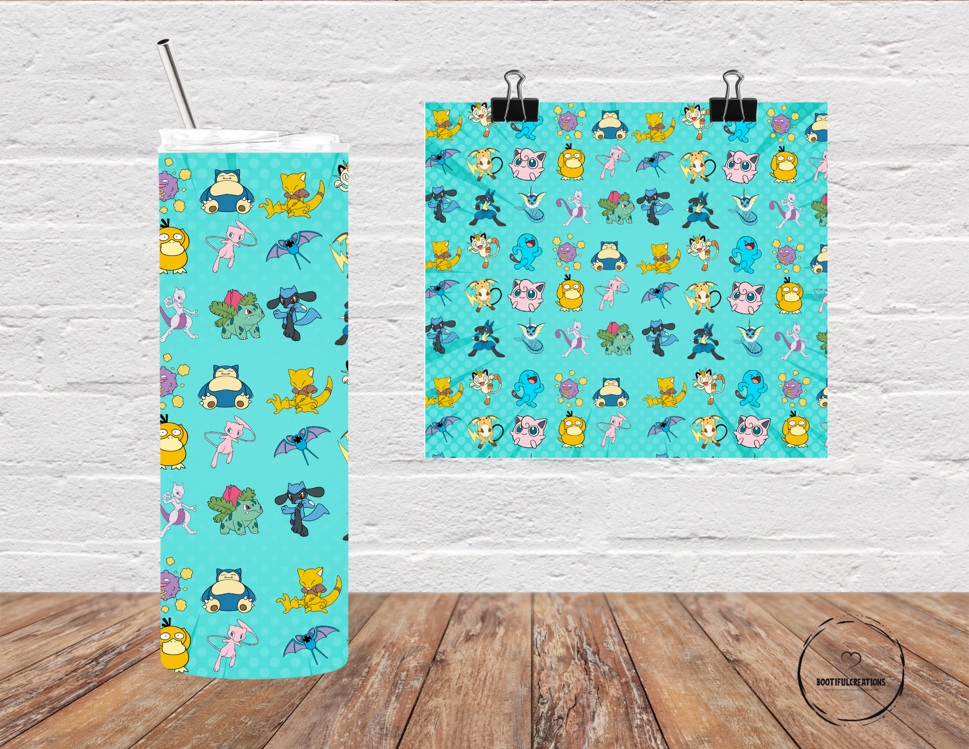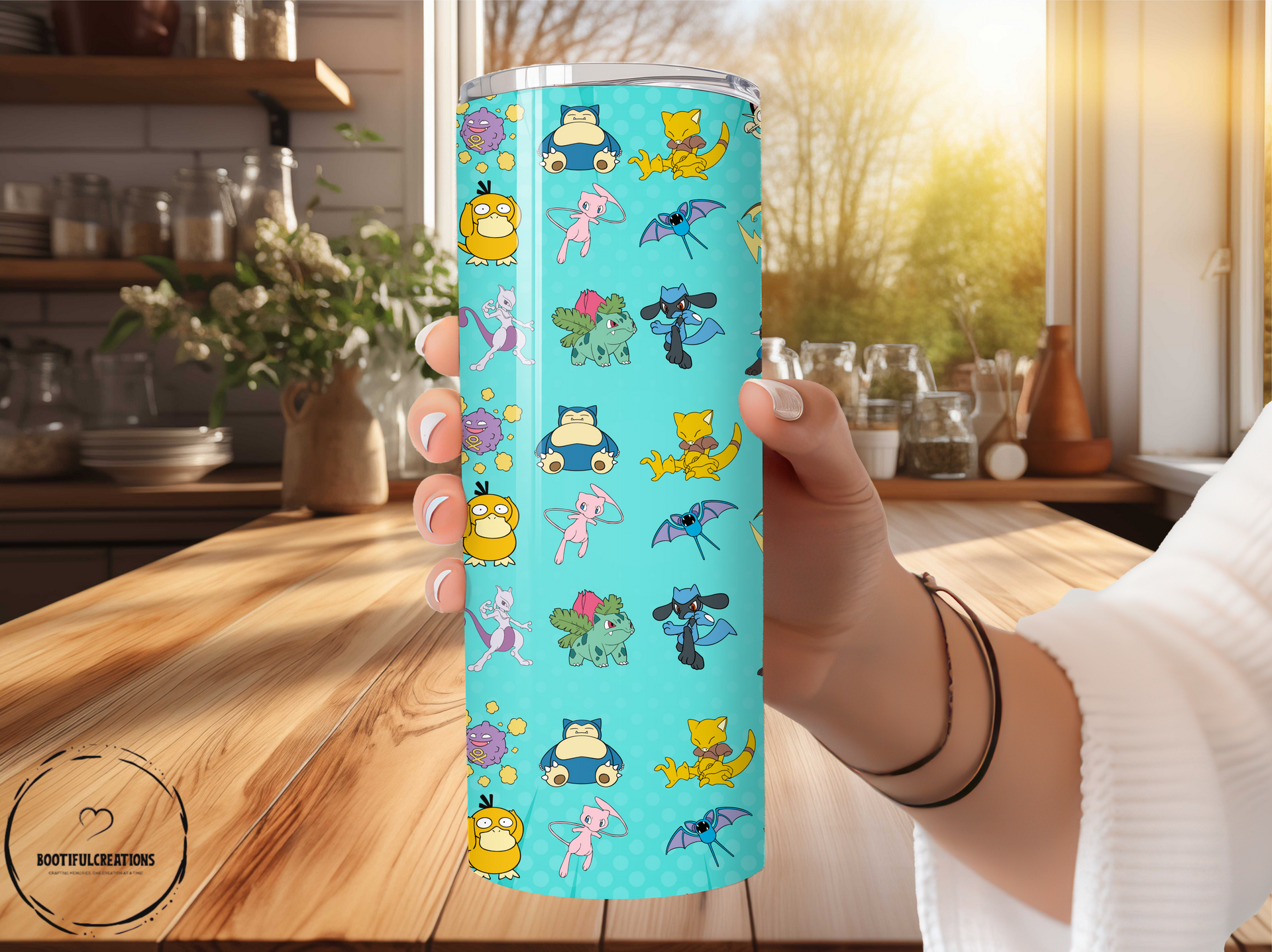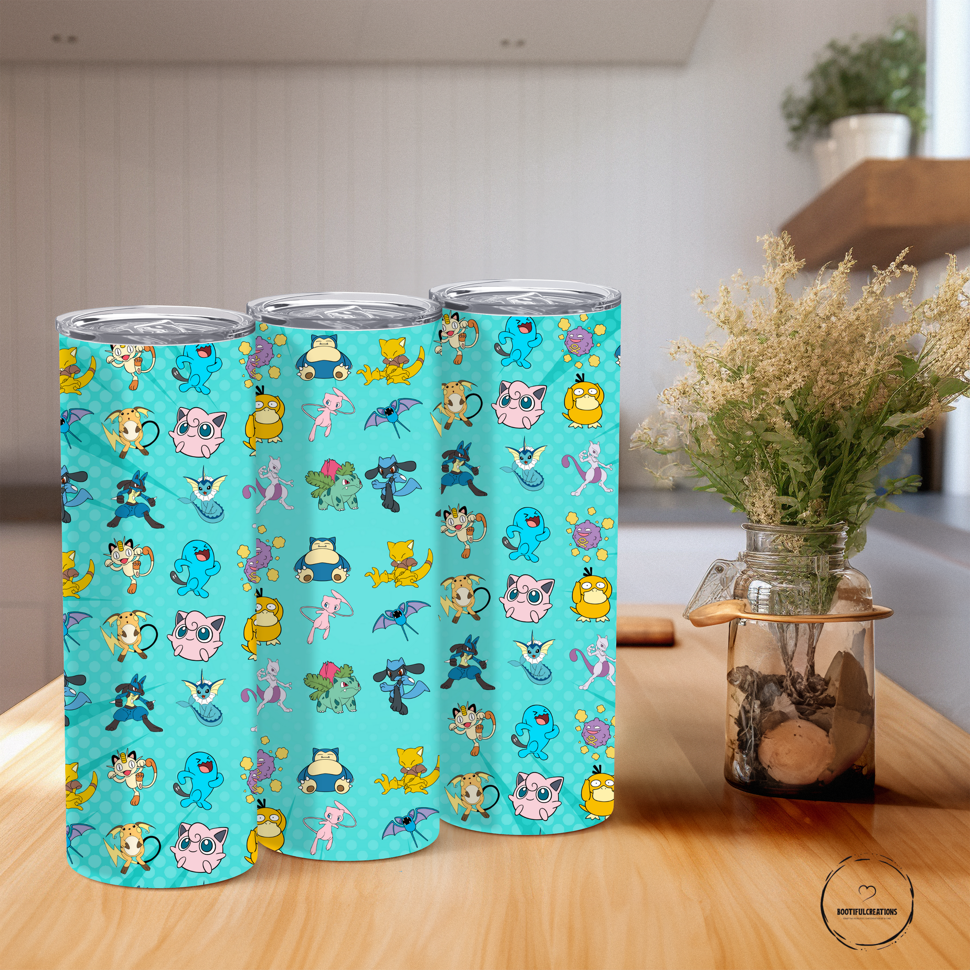 Stay hydrated in style with our Pokémon Character Party Tumbler! Featuring your favorite characters, like Snorlax, Psyduck, Mew, and Bulbasaur, on a vibrant turquoise background. Keep your drinks hot for up to 6 hours and cold for up to 24 hours. Personalize it with your name for the ultimate Pokémon fan experience. Catch 'em all while staying refreshed!