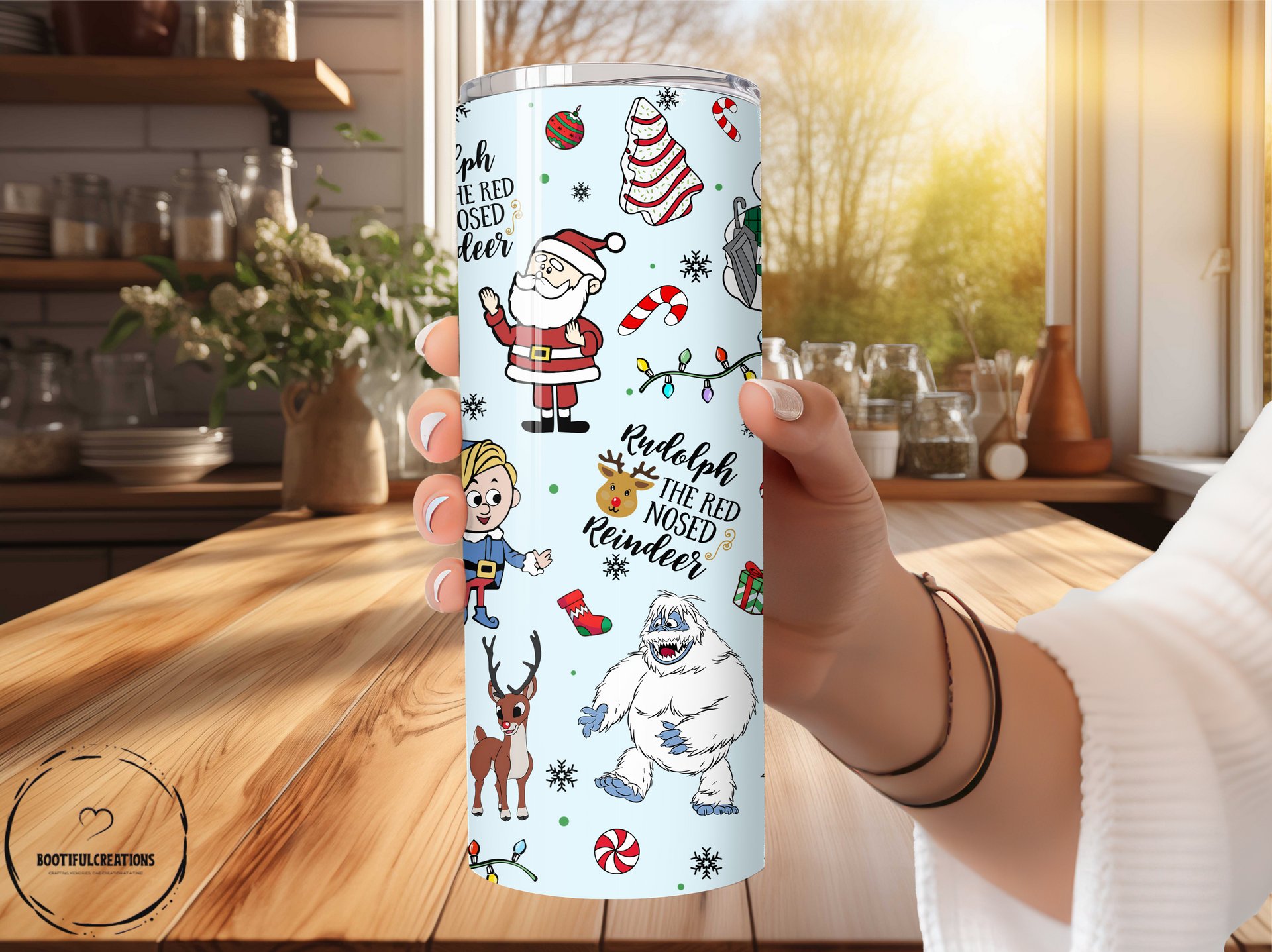 Introducing the Rudolph the Red Nose Reindeer Tumbler, inspired by the iconic holiday movie! Keep your drinks hot for up to 6 hours and cold for up to 24 hours, while adding a personal touch with custom name personalization. Perfect for any festive occasion, get yours now!