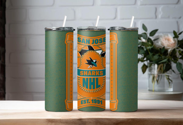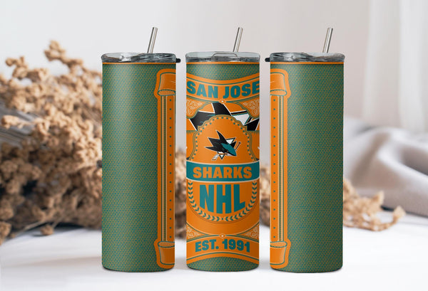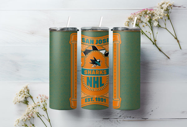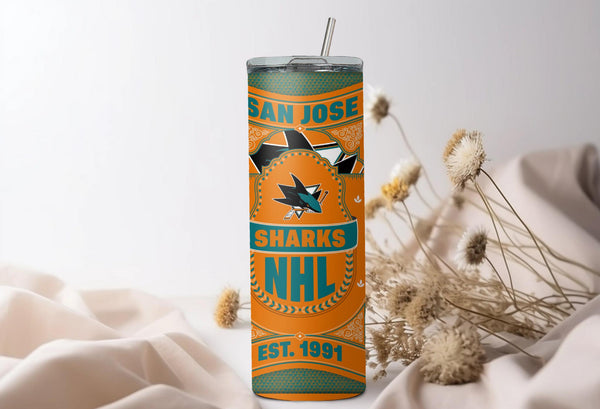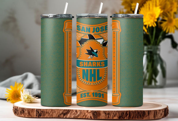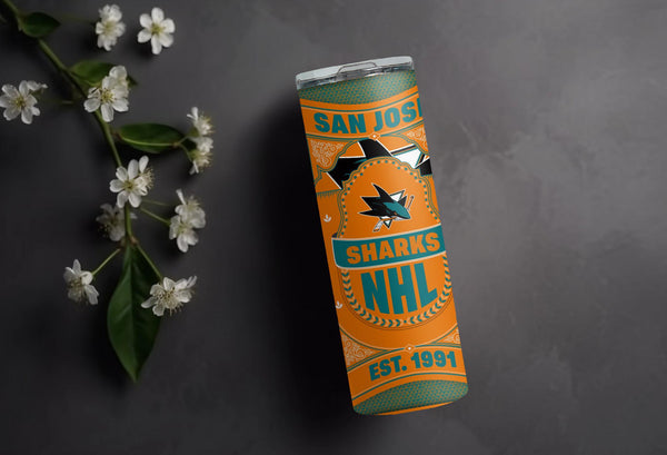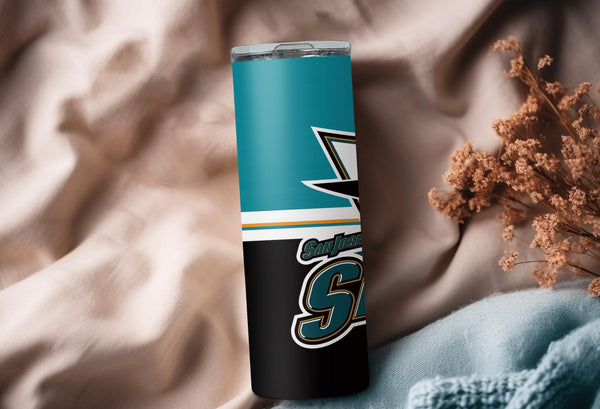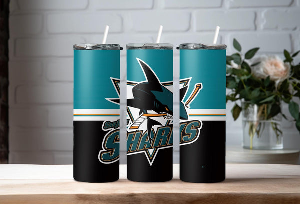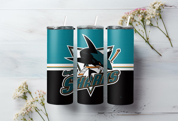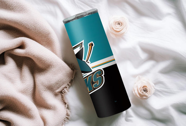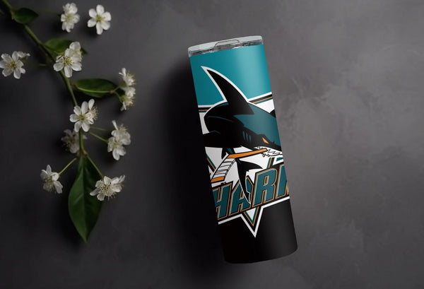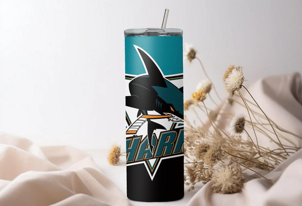 Get ready for game day with this custom-designed San Jose Sharks 20oz Skinny Tumbler! Whether you are cheering from the Shark Tank or sipping coffee at work, this tumbler is the ultimate accessory for any die-hard fan.