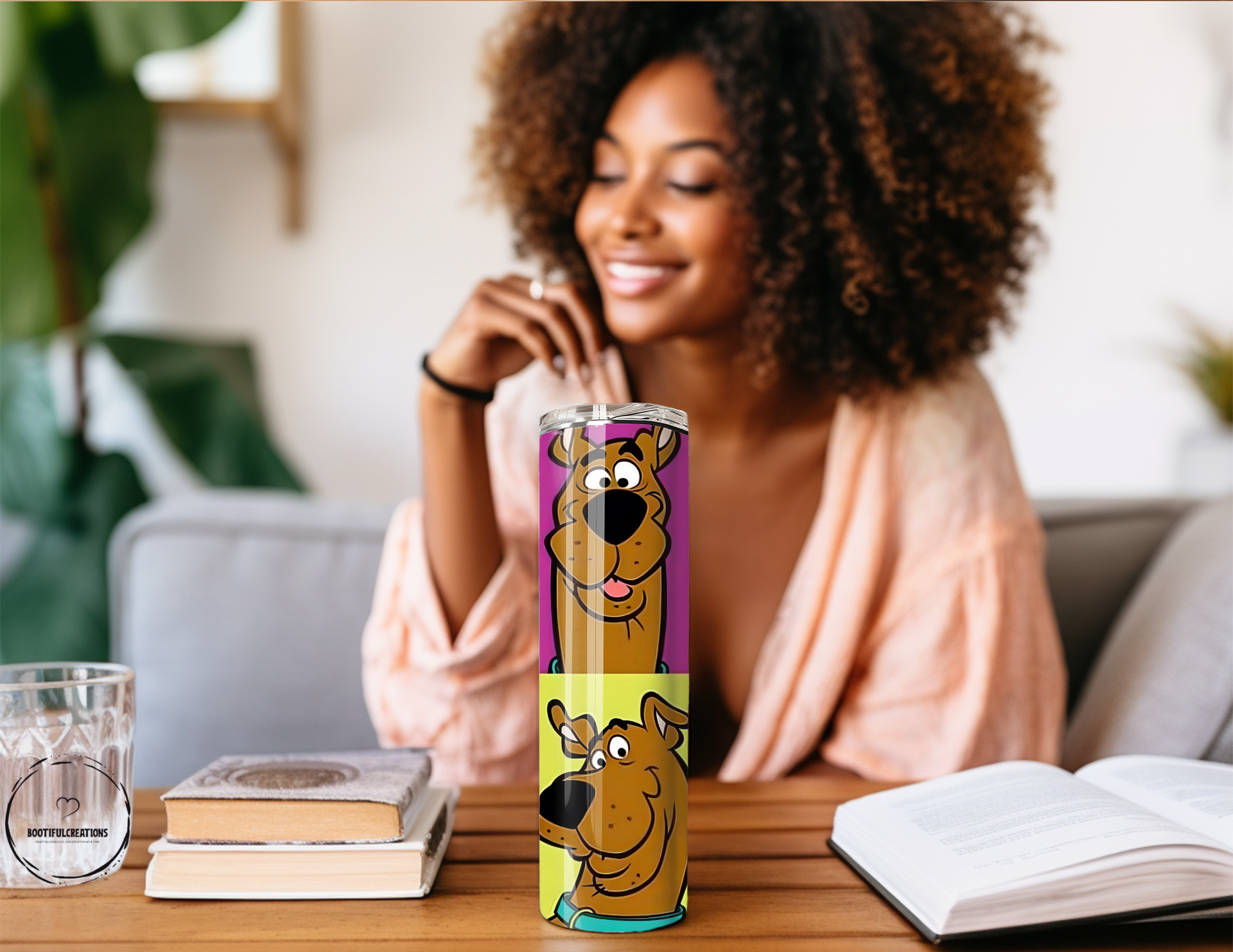 Unleash the mystery-solving power of Scooby-Doo with our Many Faces Pattern Tumbler! Keep your drinks hot for up to 6 hours and cold for up to 24 hours, while showing off various Scooby-Doo faces. Personalize it with a name for a truly unique and fun experience. Stay hydrated in style with this tumbler!