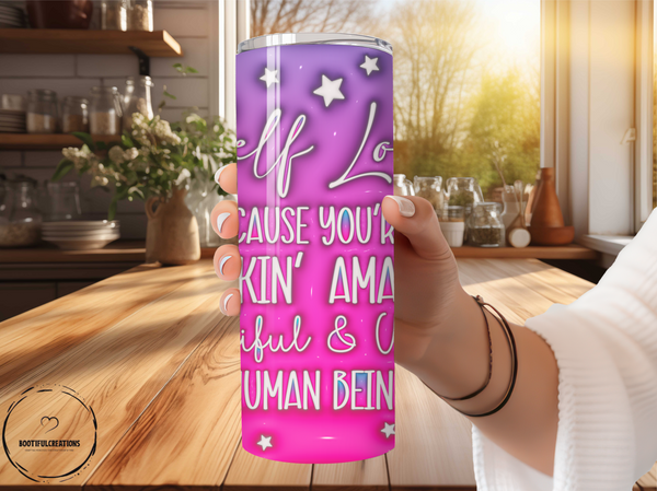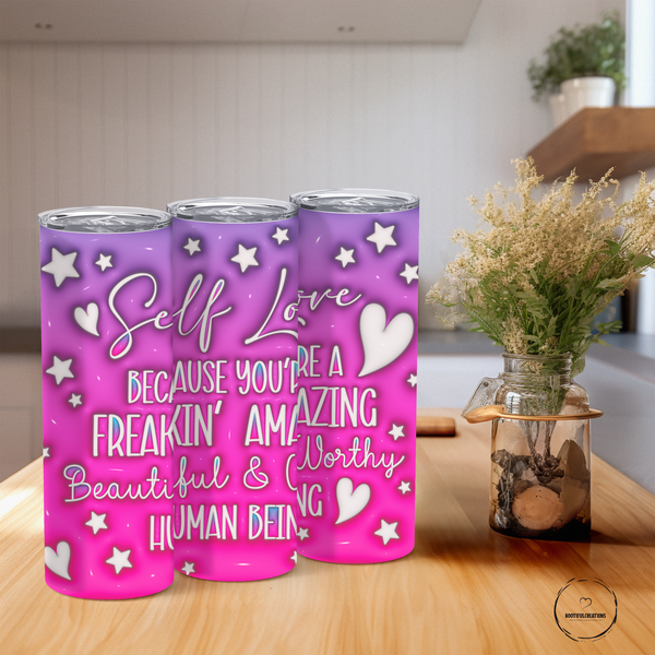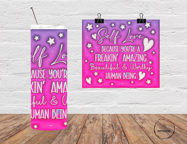 Indulge in self-care with our Self Love Tumbler. Keep your beverage hot for up to 6 hours or cold for up to 24 hours while reminding yourself that you are amazing, beautiful, and worthy. Personalize it with your name for a daily dose of self-love. Treat yourself today!