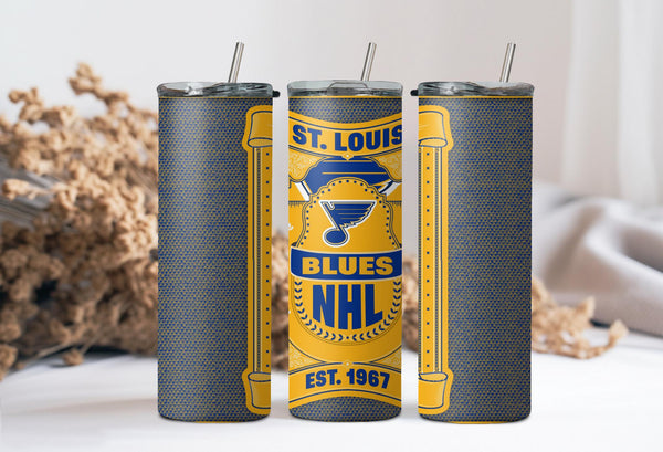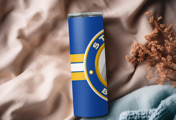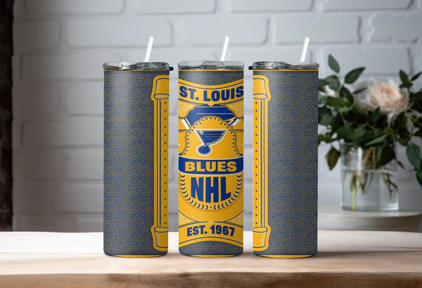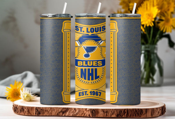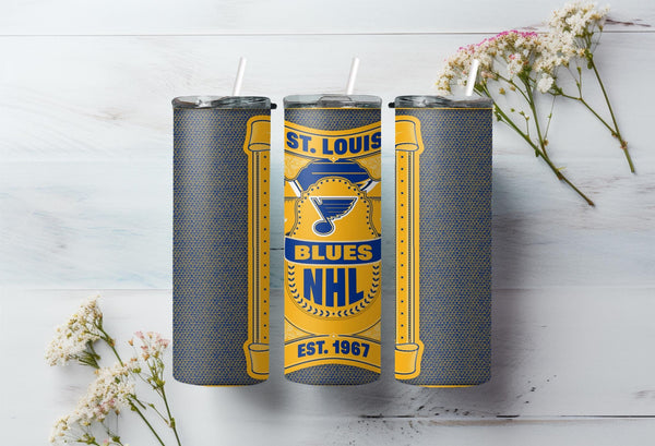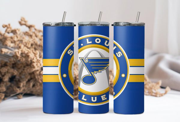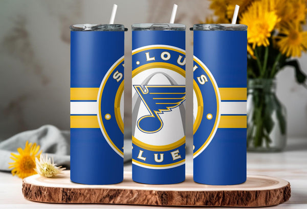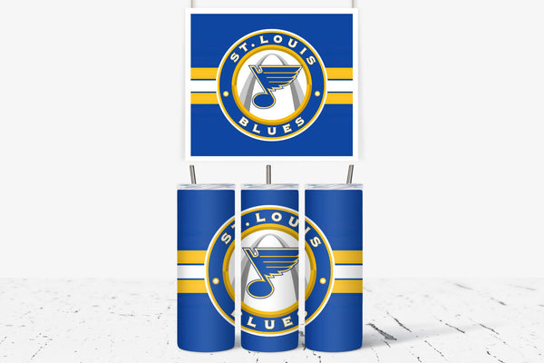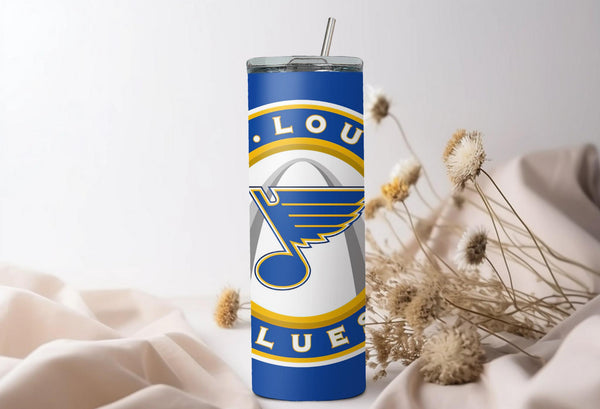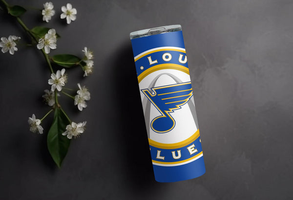 Whether you are singing "Gloria" after a big win or just heading to work, this custom St. Louis Blues 20oz Skinny Tumbler is the perfect way to show your team pride.