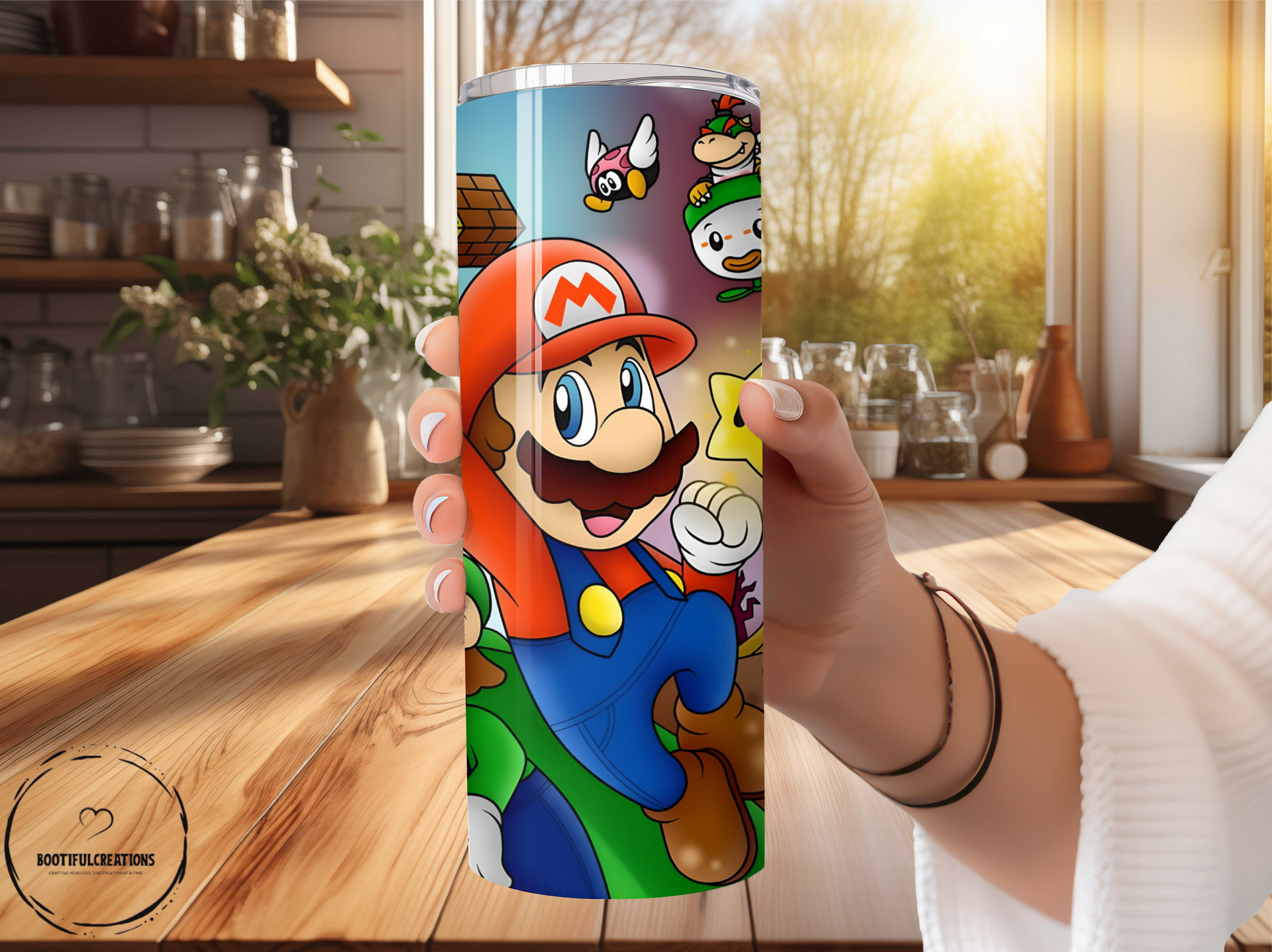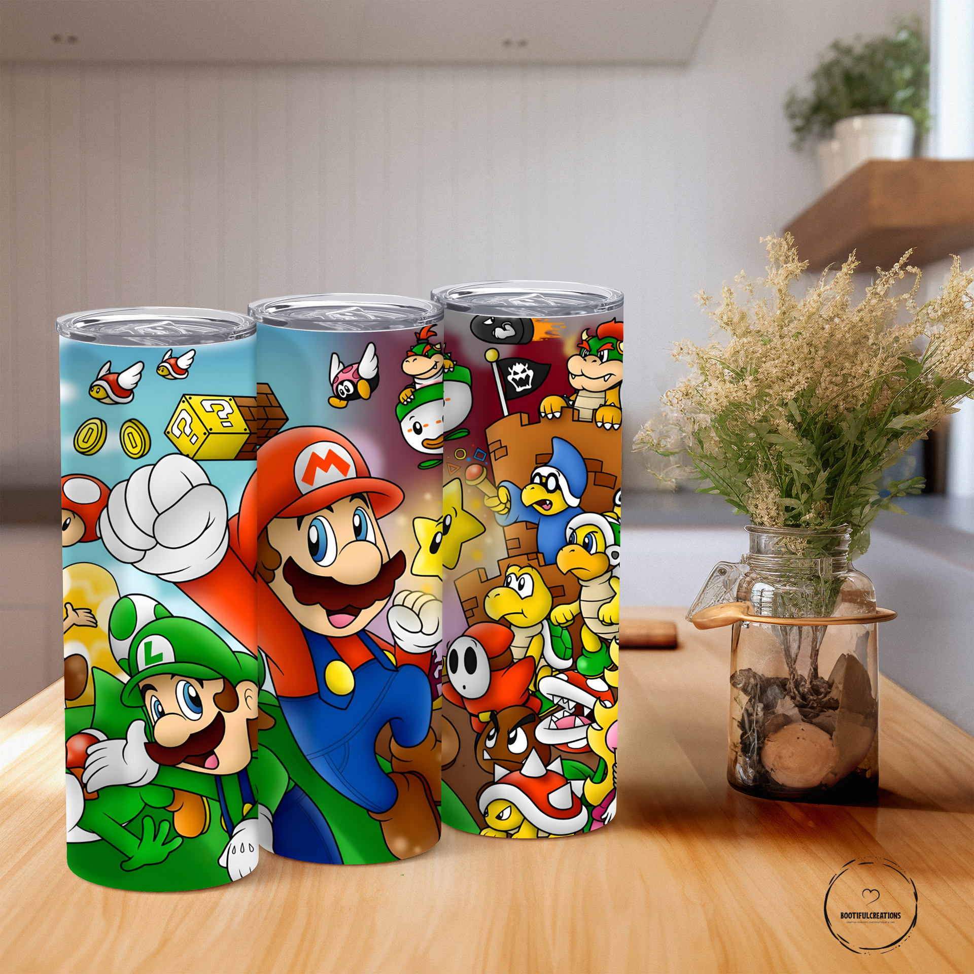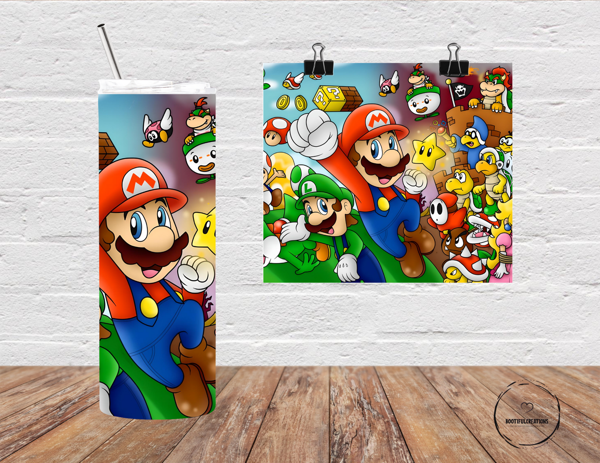 Indulge in nostalgia and keep your beverage at the perfect temperature with our Super Mario Bros Tumbler! Featuring the iconic characters Luigi and Mario, this tumbler can keep your drink hot for up to 6 hours or cold for up to 24 hours. Plus, personalize it with your name for that extra special touch. Don't miss out on this must-have for any Super Mario fan!