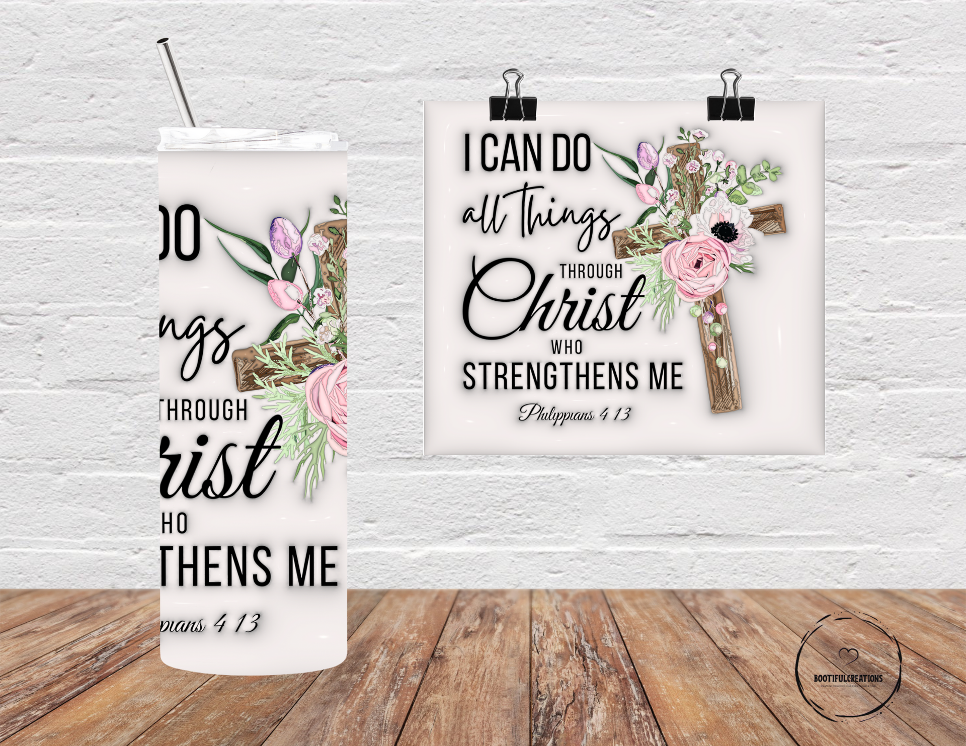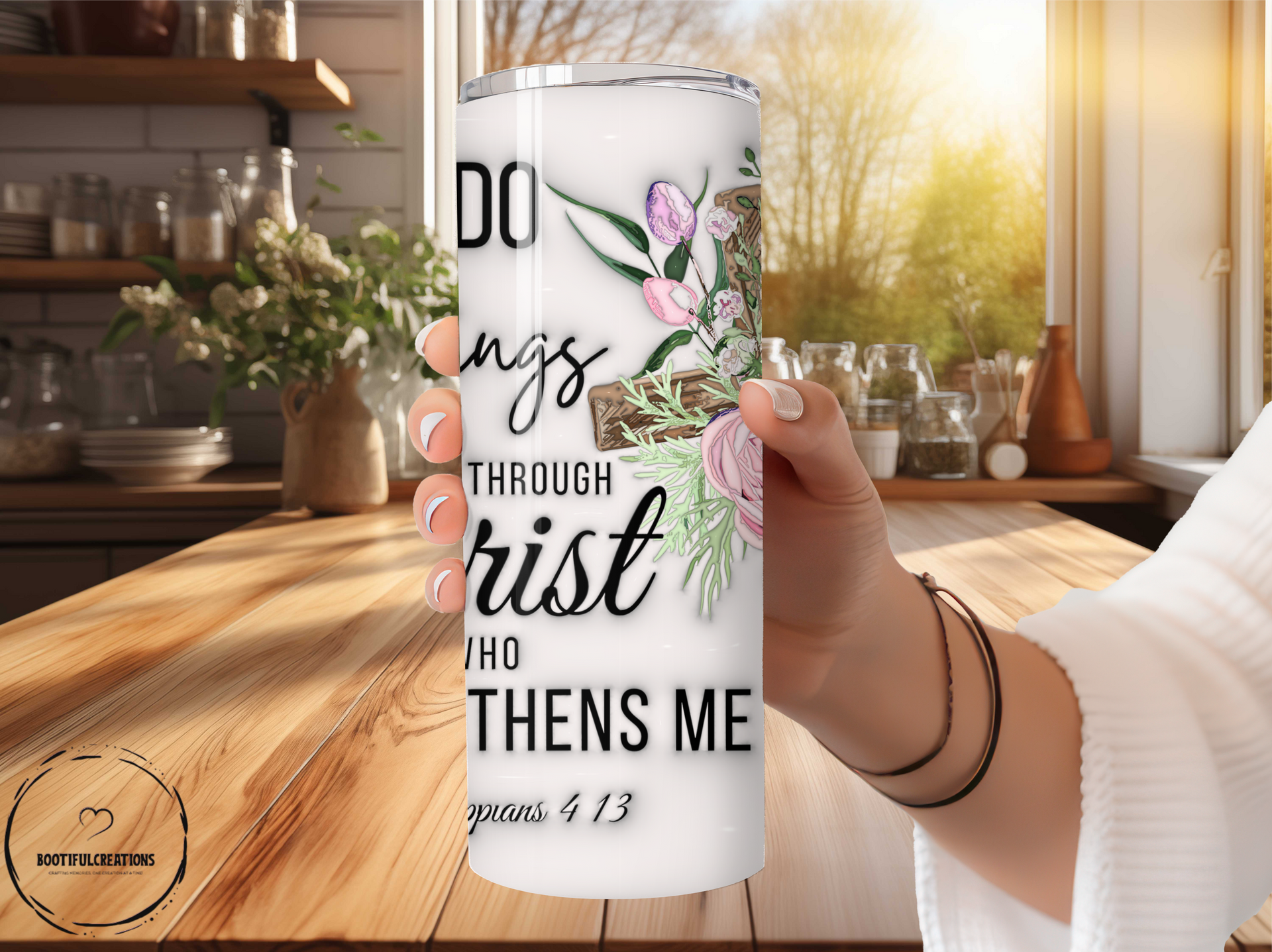 Stay hydrated and inspired with our "Through Christ" tumbler! With uplifting words and a beautiful floral cross design, it's perfect for hot or cold beverages and keeps drinks at their desired temperature for hours. Personalize it with a name for an extra special touch. Let your faith shine through with every sip!
