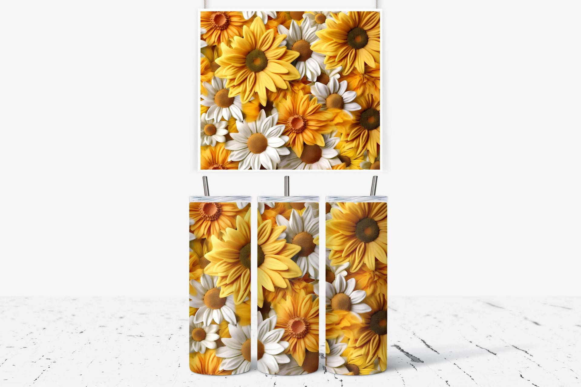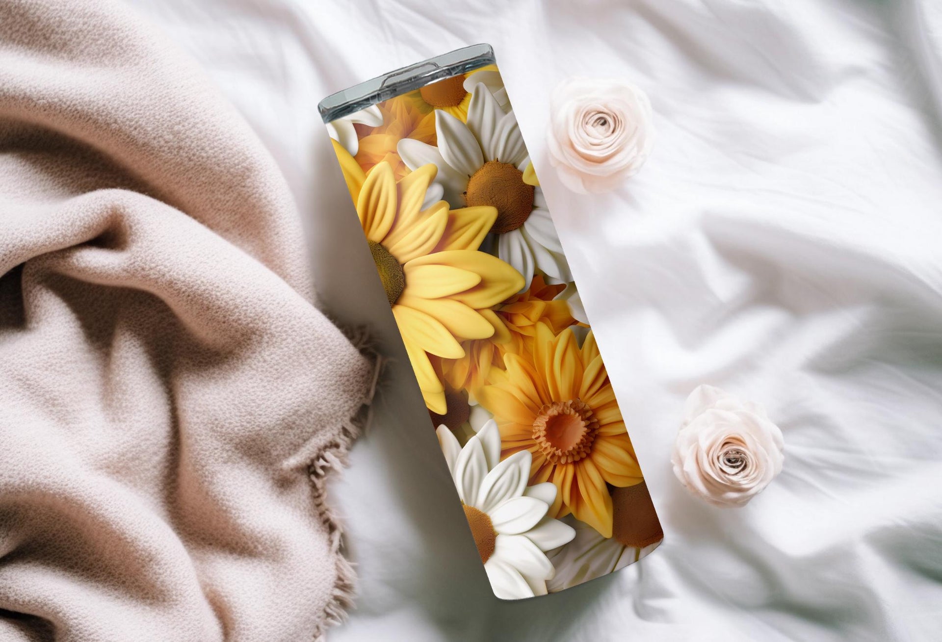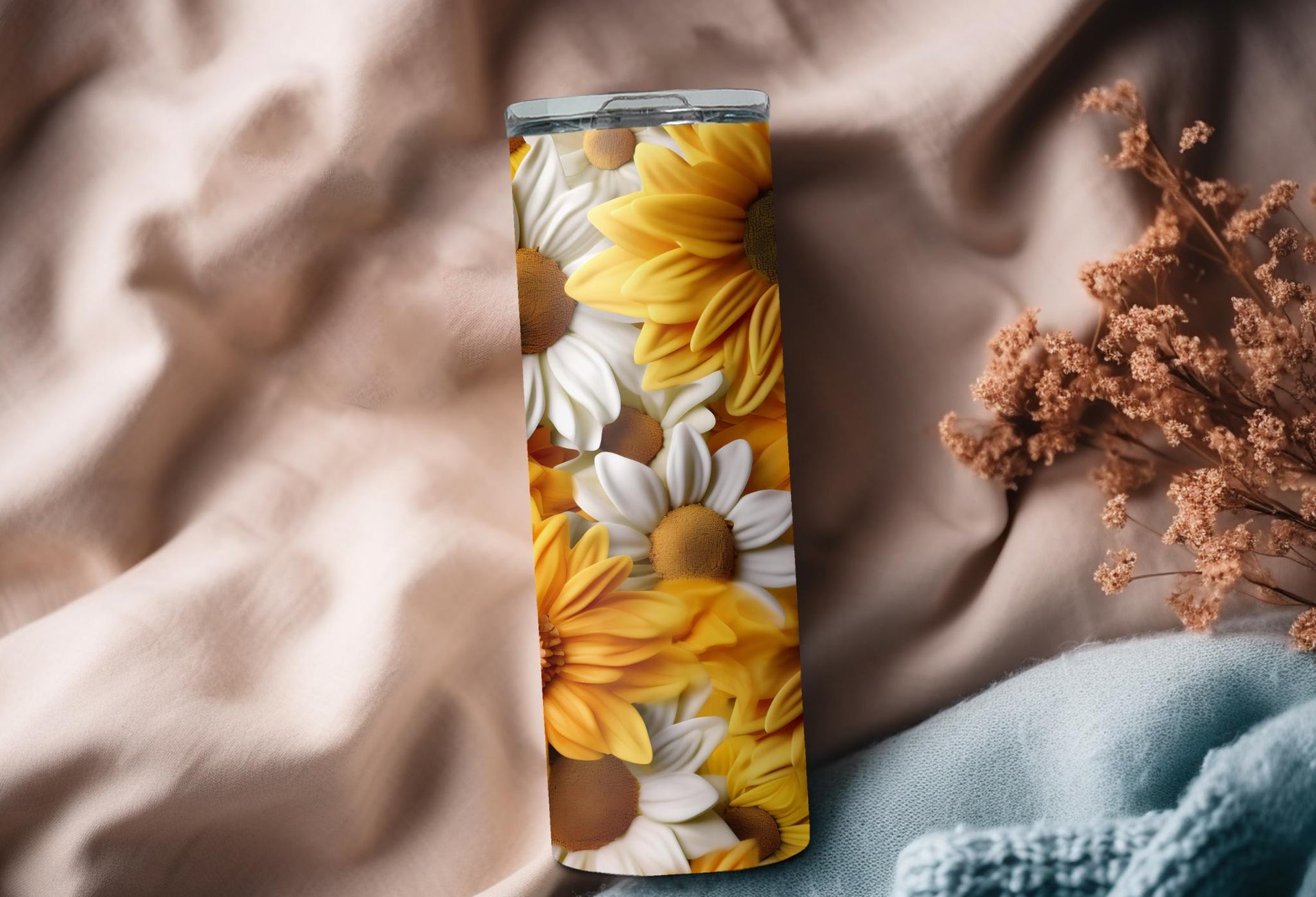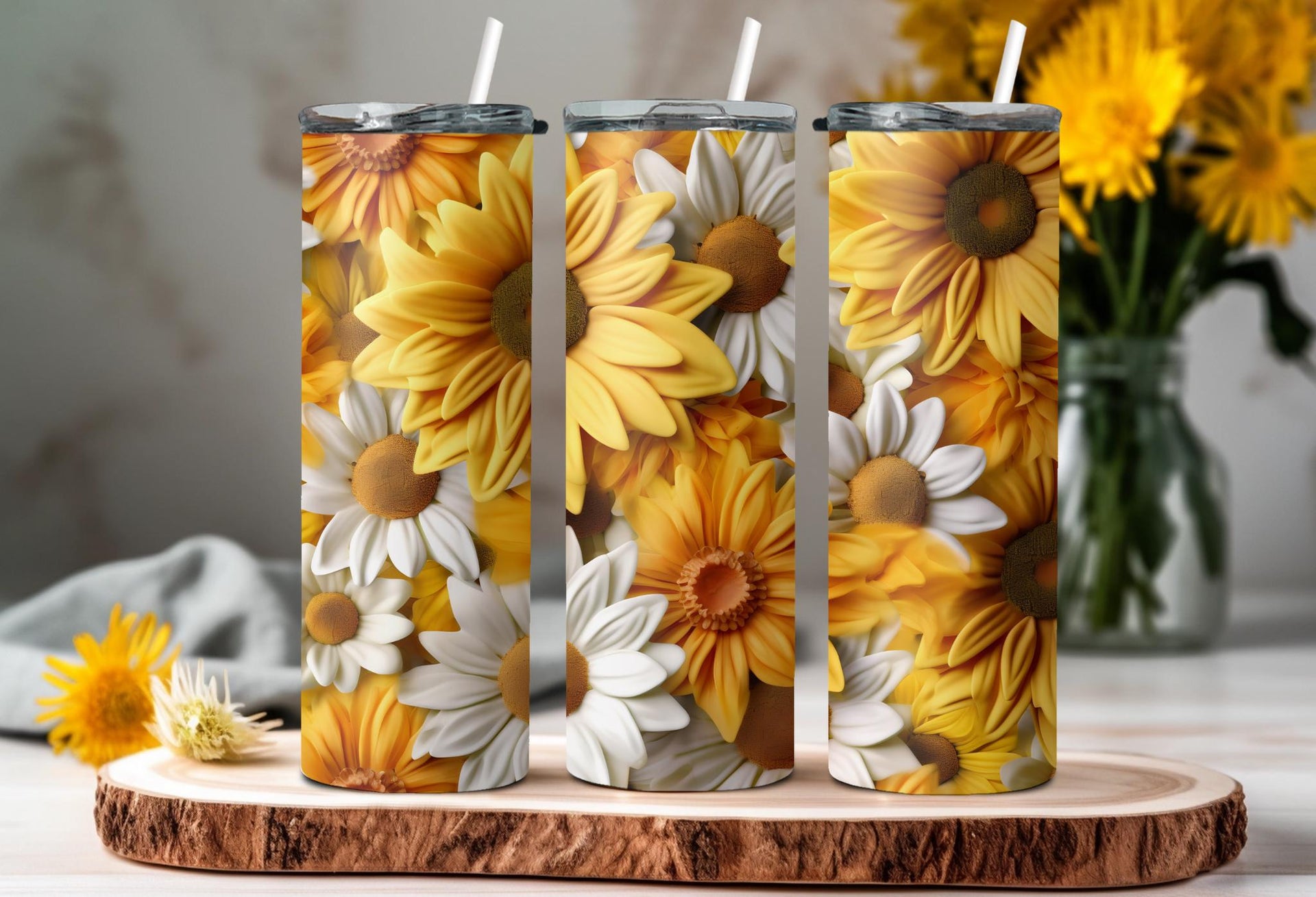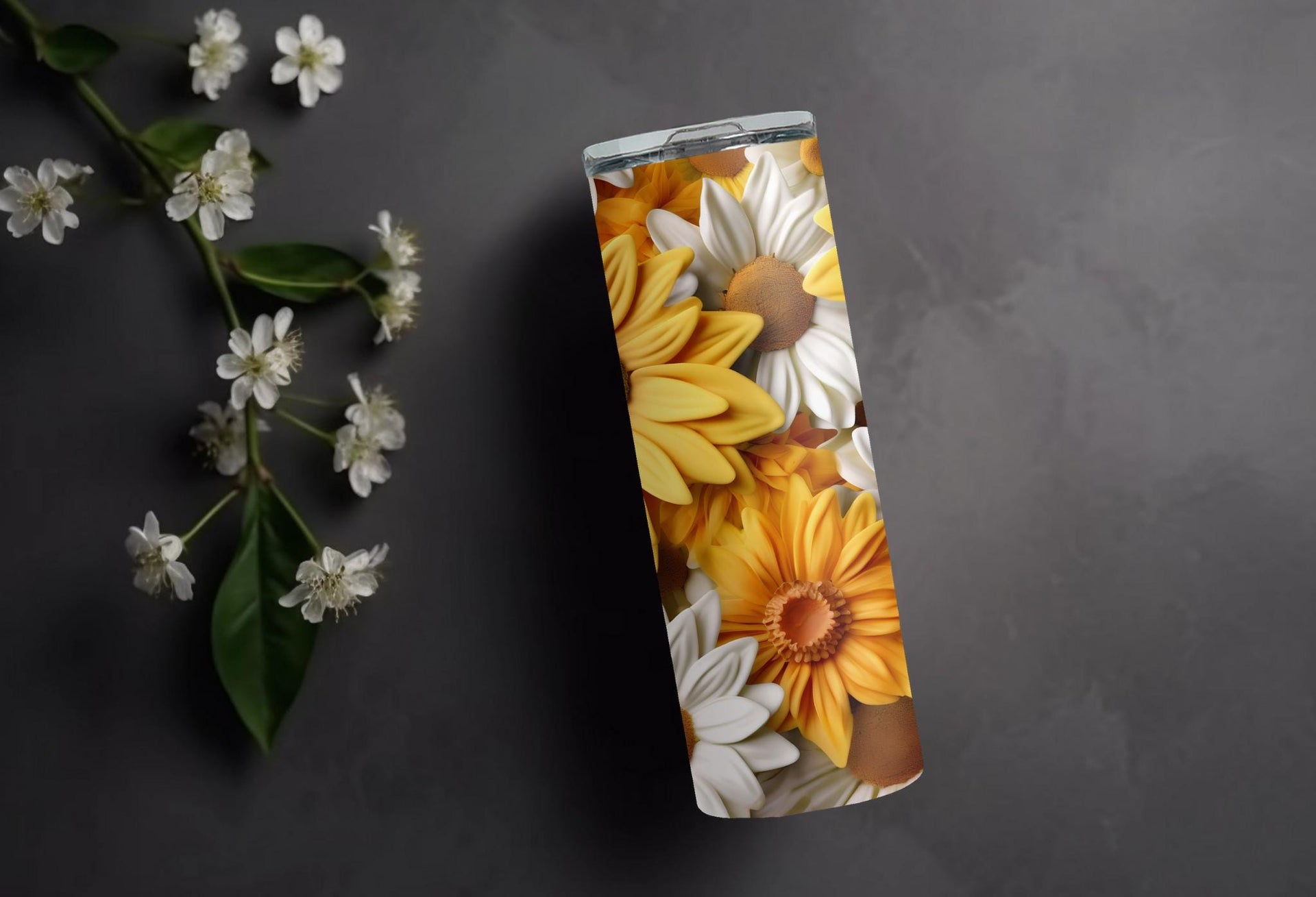 3D Sunflower & Daisy Tumbler: Floral Stainless Steel Drinkware