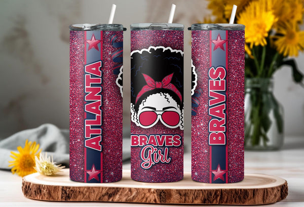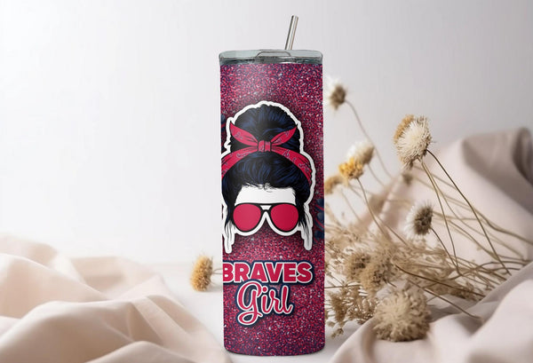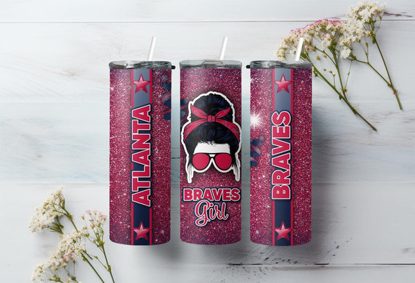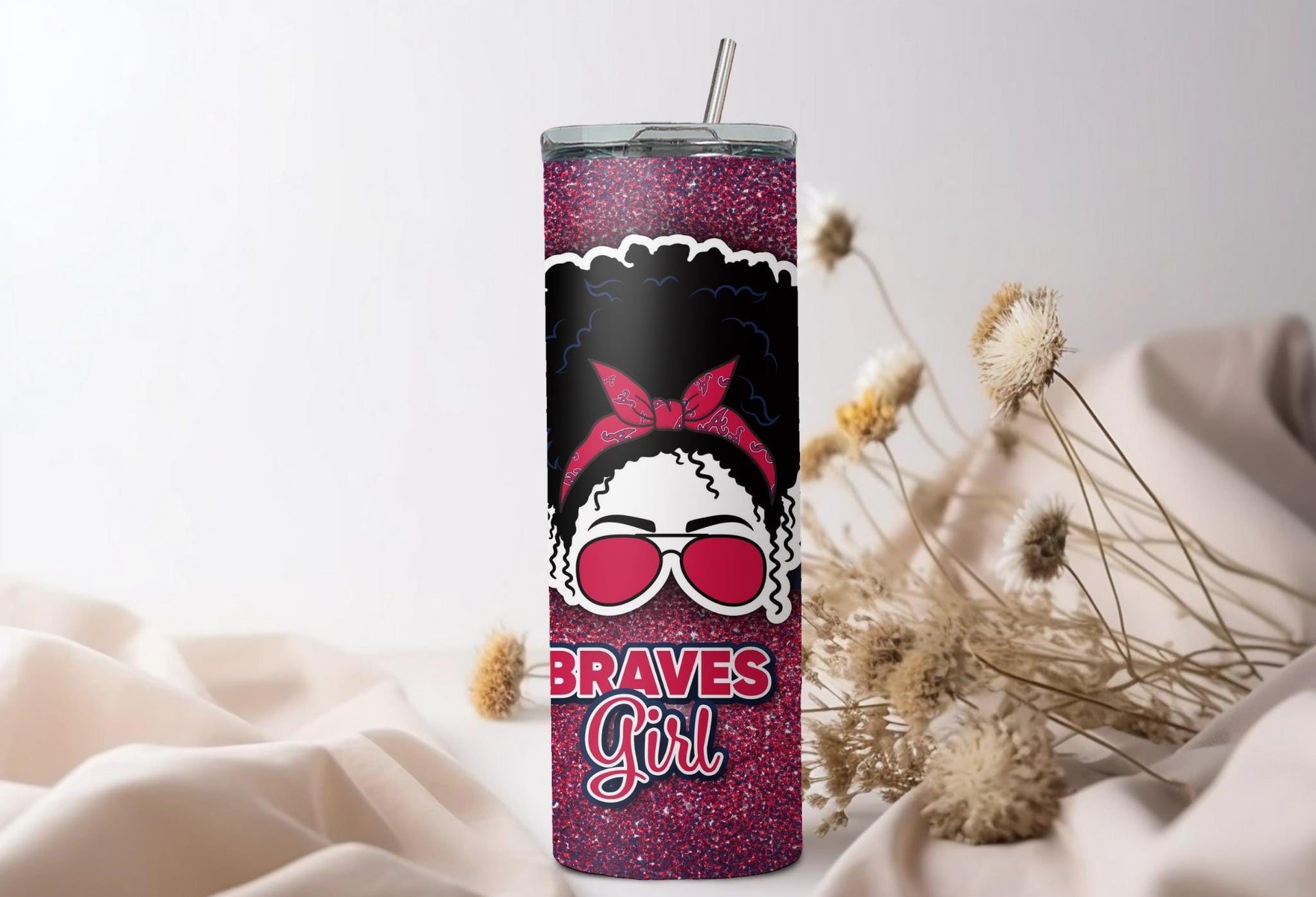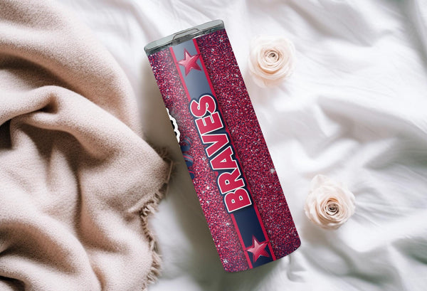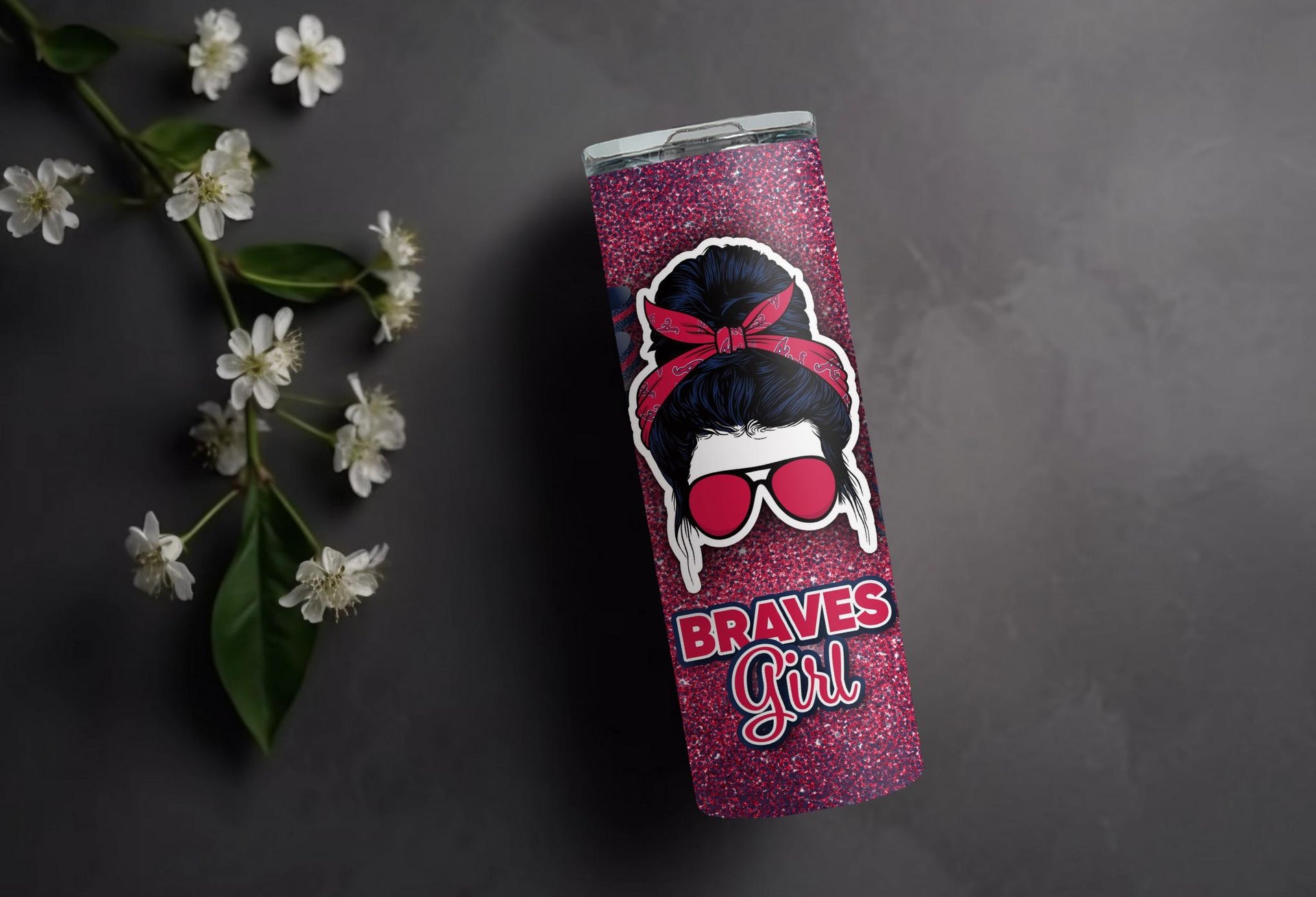 Atlanta Braves Girl 20oz Tumbler, Red Faux Glitter, Baseball Mom Gift