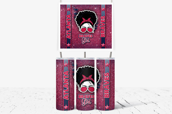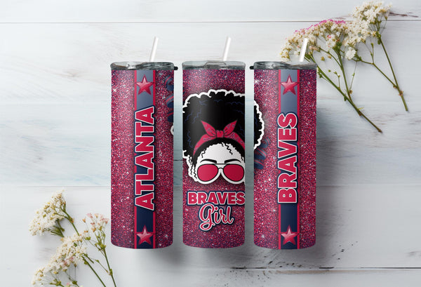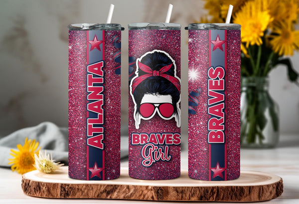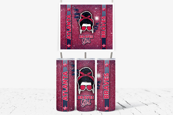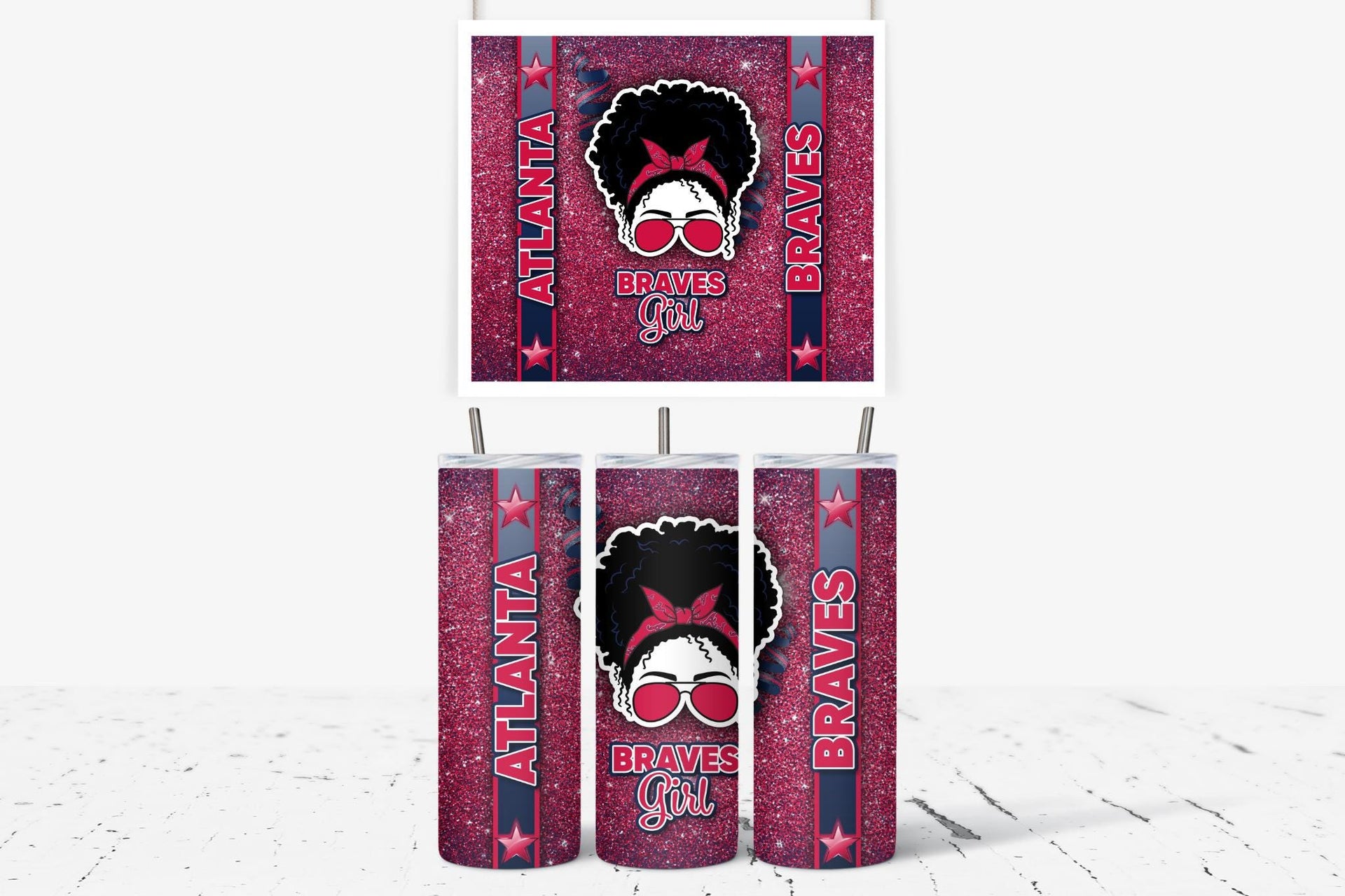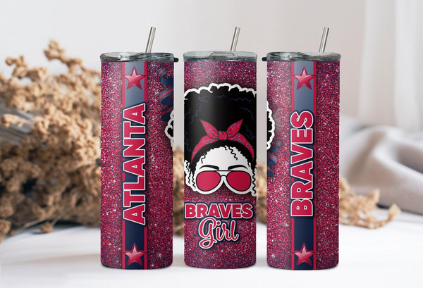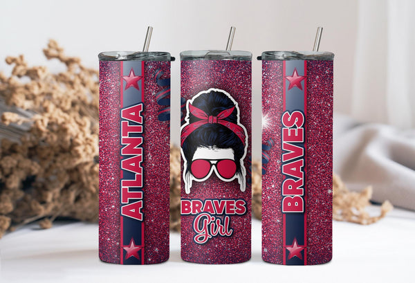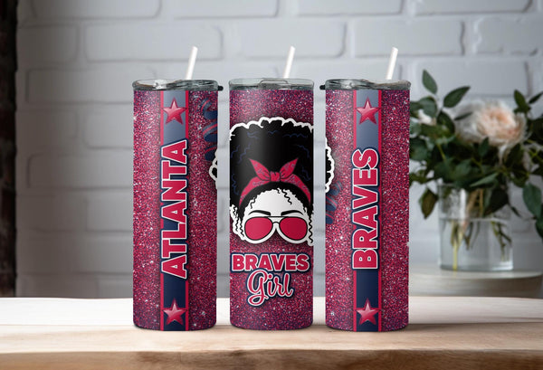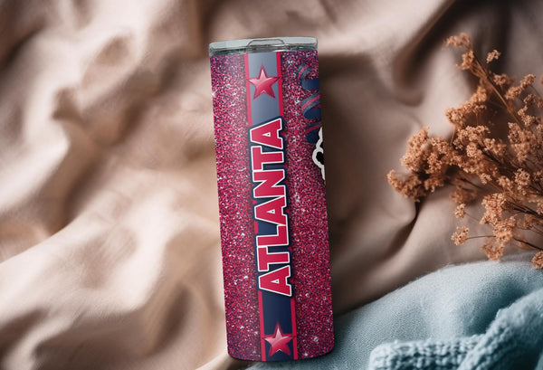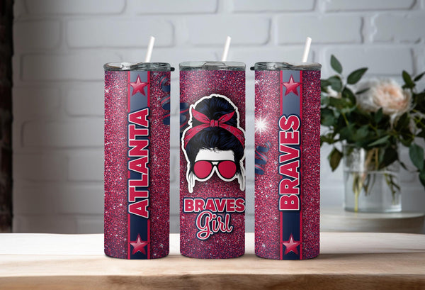 Atlanta Braves Girl 20oz Tumbler, Red Faux Glitter, Baseball Mom Gift