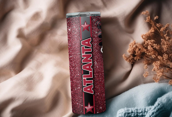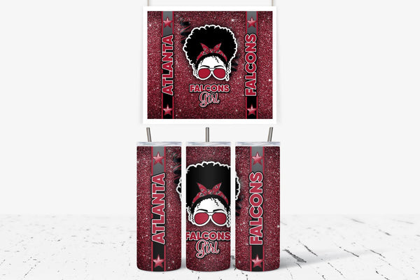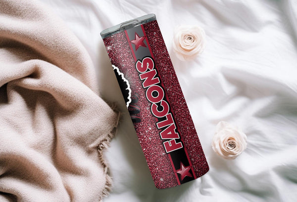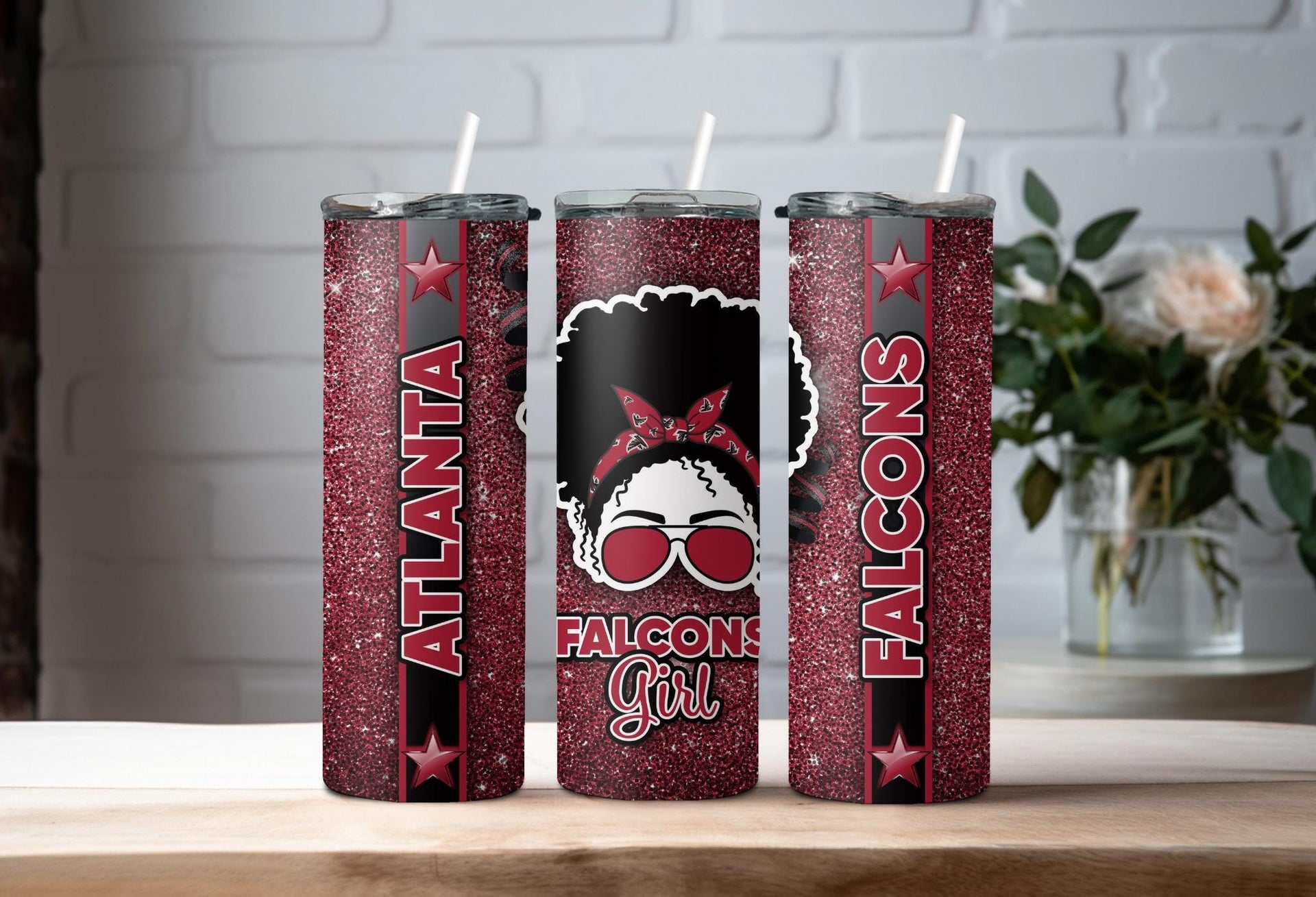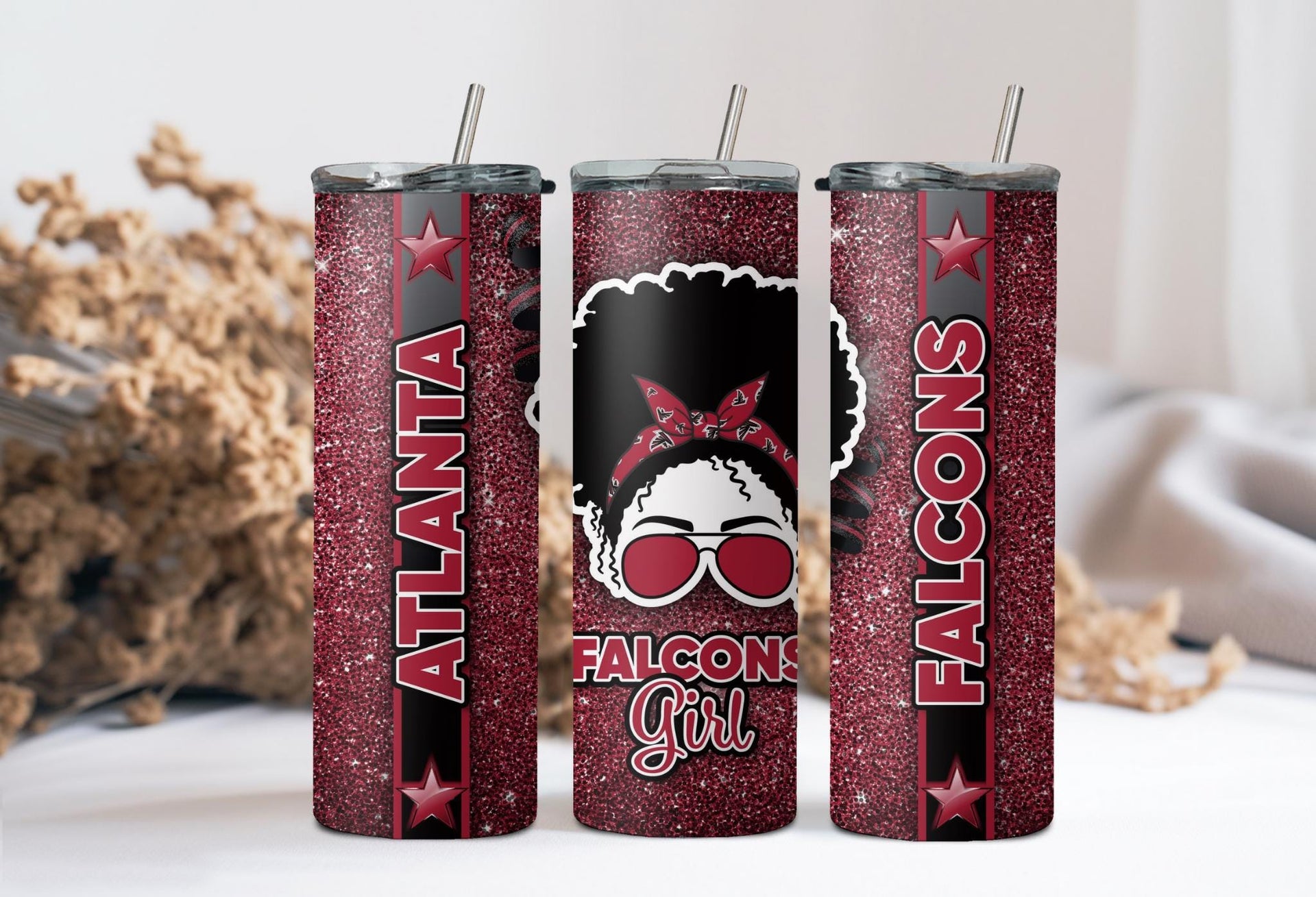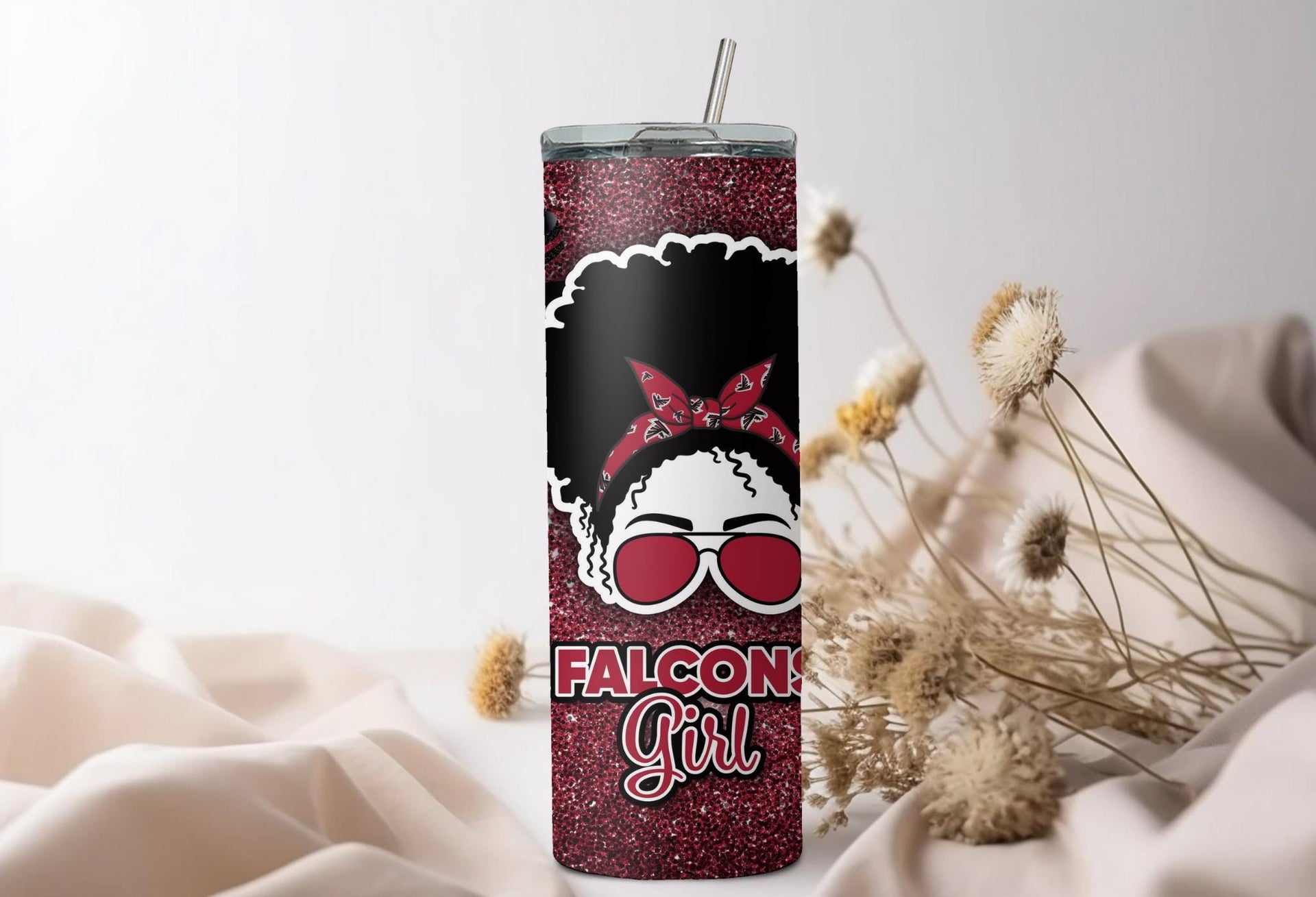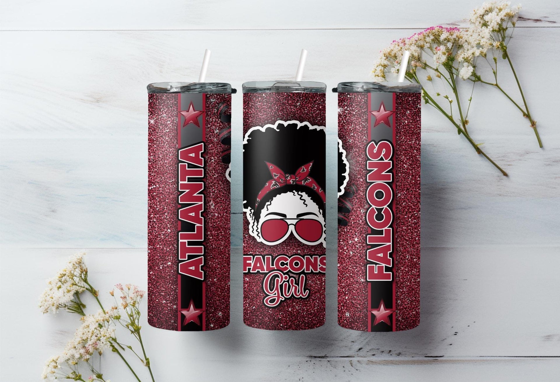 Featuring a vibrant red and black faux-glitter background and the stylish "Falcons Girl" logo, this cup is the ultimate accessory for any fan in the A.