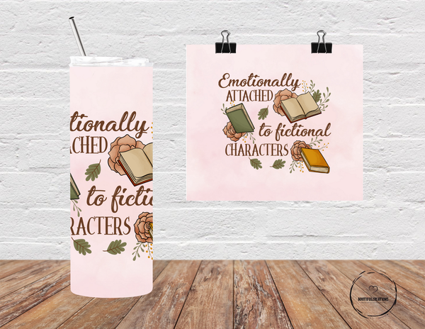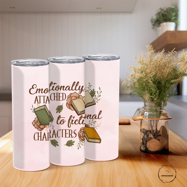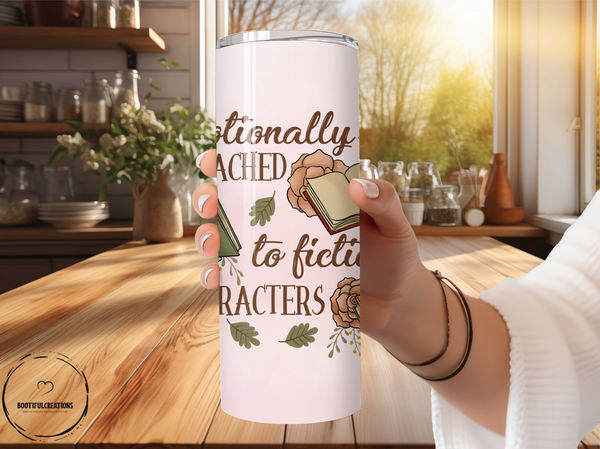 Indulge in your love for books with our "Emotionally Attached to Fictional Characters" tumbler! This floral tumbler keeps your drinks hot for up to 6 hours and cold for up to 24 hours. Personalize it with your name and enjoy your favorite stories on the go. Get lost in the pages with every sip!