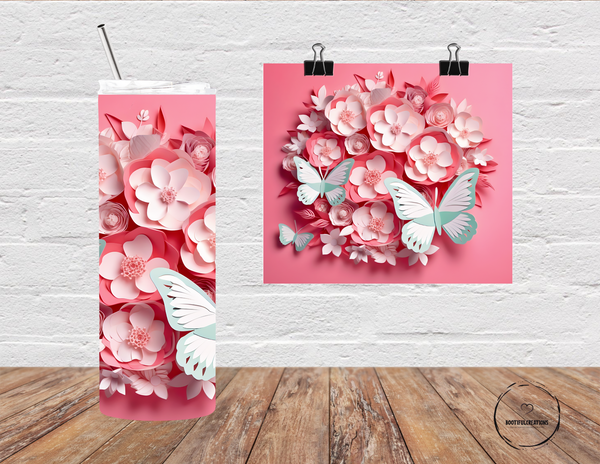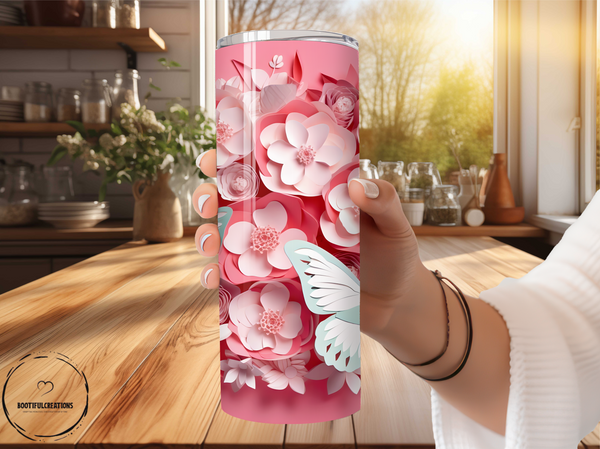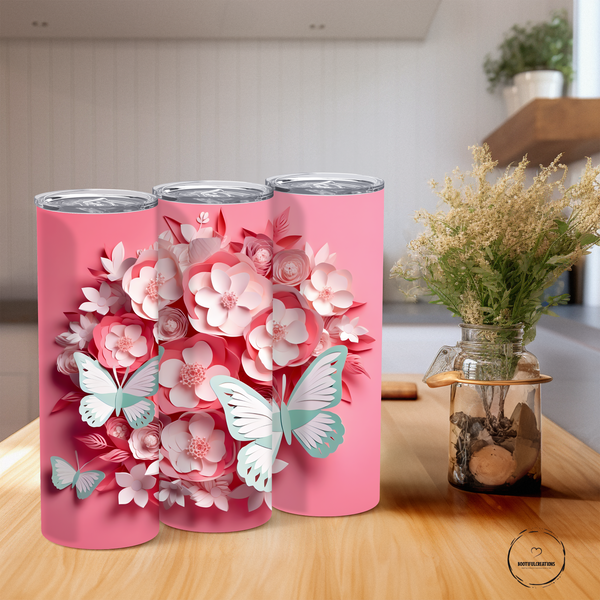 Elevate your daily routine with the Blossoming Elegance Tumbler! Enjoy your beverage hot for up to 6 hours or cold for up to 24 hours in this personalized tumbler featuring a stunning pink design of 3D butterflies and flowers. Make every sip a moment of elegance and beauty.