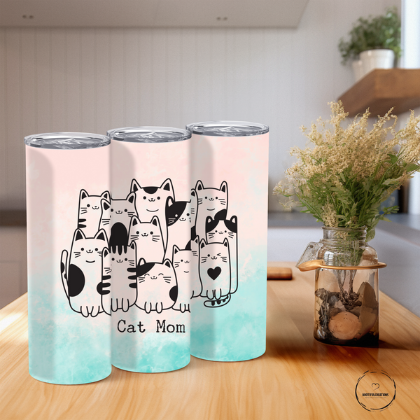 Indulge in your love for cats with our Cat Mom Tumbler! This tumbler keeps your drink hot for up to 6 hours and cold for up to 24 hours, perfect for busy cat moms on the go. Make it even more special by personalizing it with a name. Show off your feline pride and stay hydrated in style!