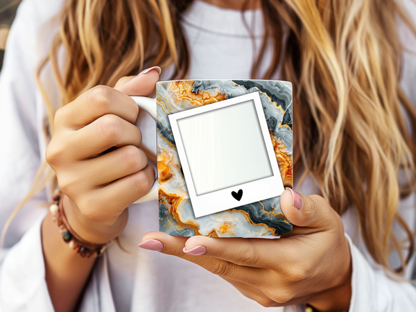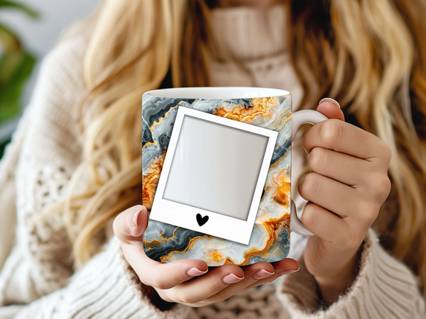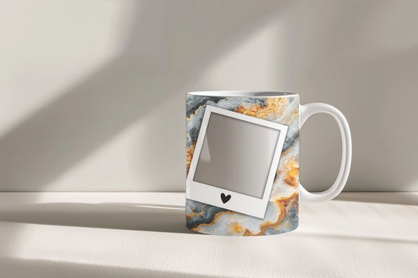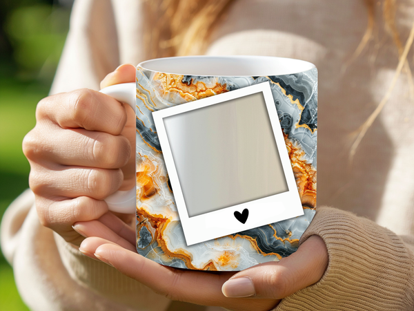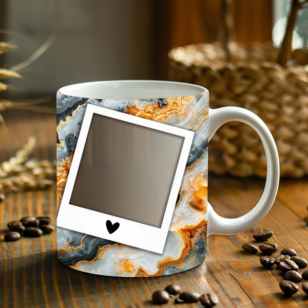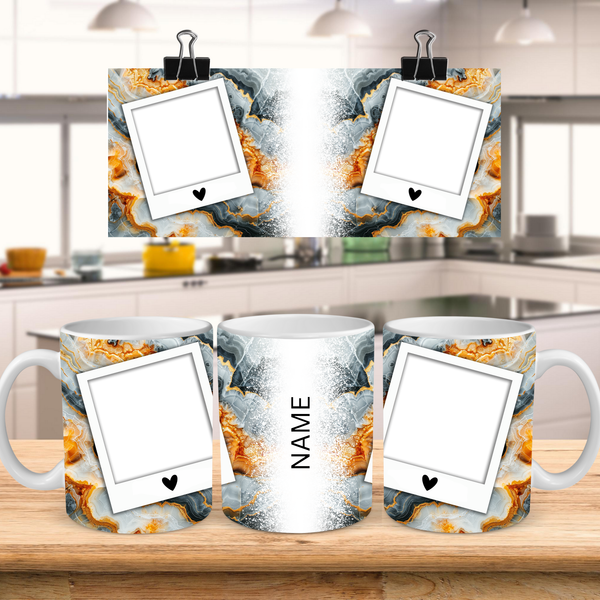 Customizable Photo & Name Coffee Mug - Warm Marbled Design