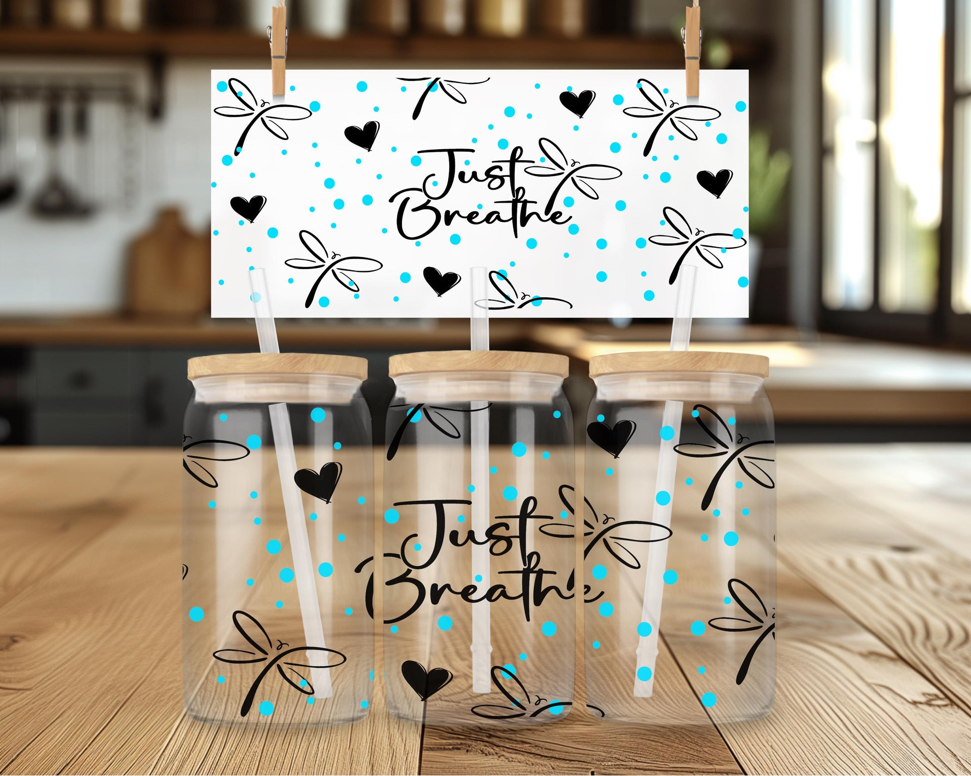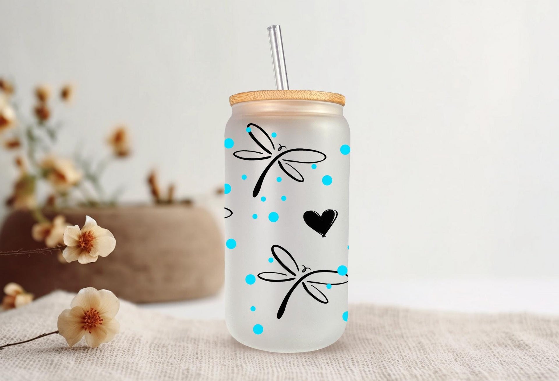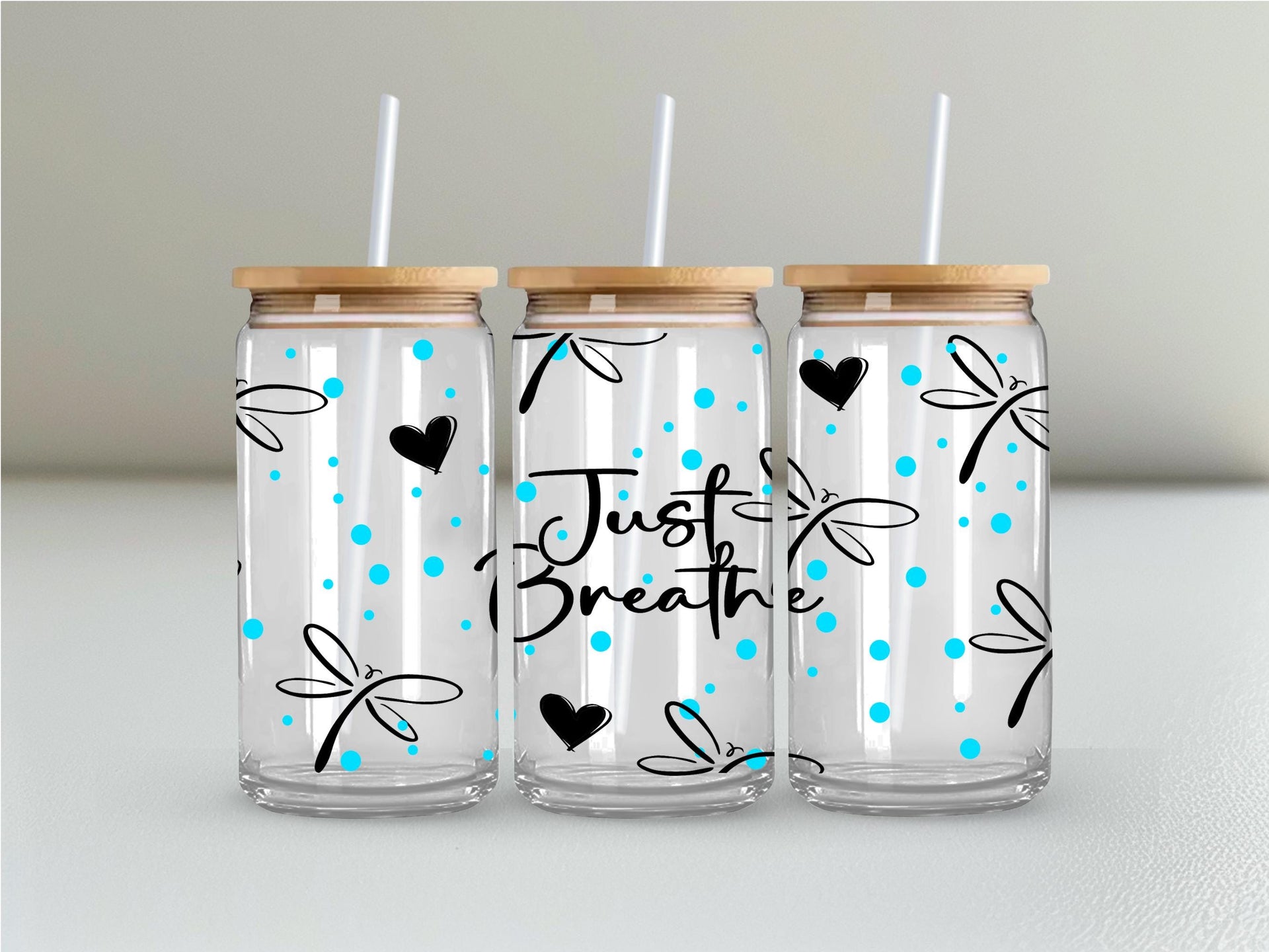Experience a moment of calm with our Just Breathe Glass Cup. Featuring delicate dragonflies, this 16oz cup can be enjoyed in clear or frosted glass. Savor your favorite beverage and let the message on the cup remind you to take deep breaths and appreciate the present. Perfect for self-care or as a gift for loved ones.