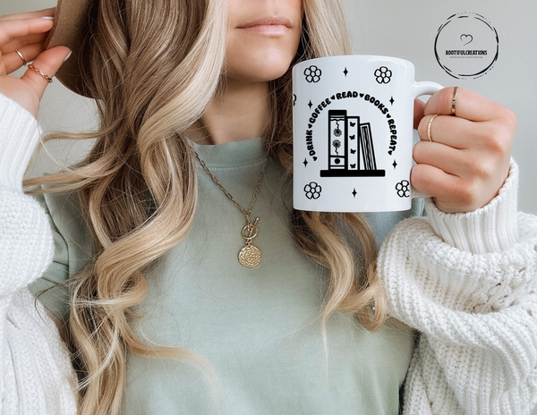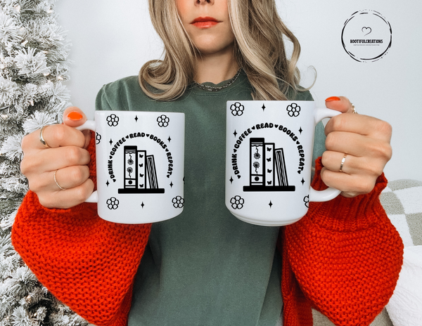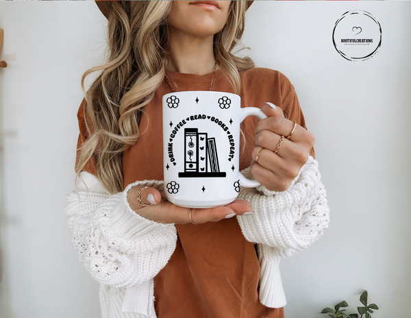 "Drink Coffee, Read Books, Repeat" Coffee Mug