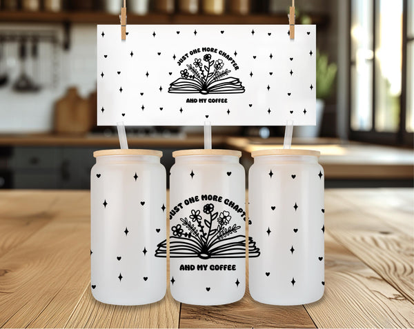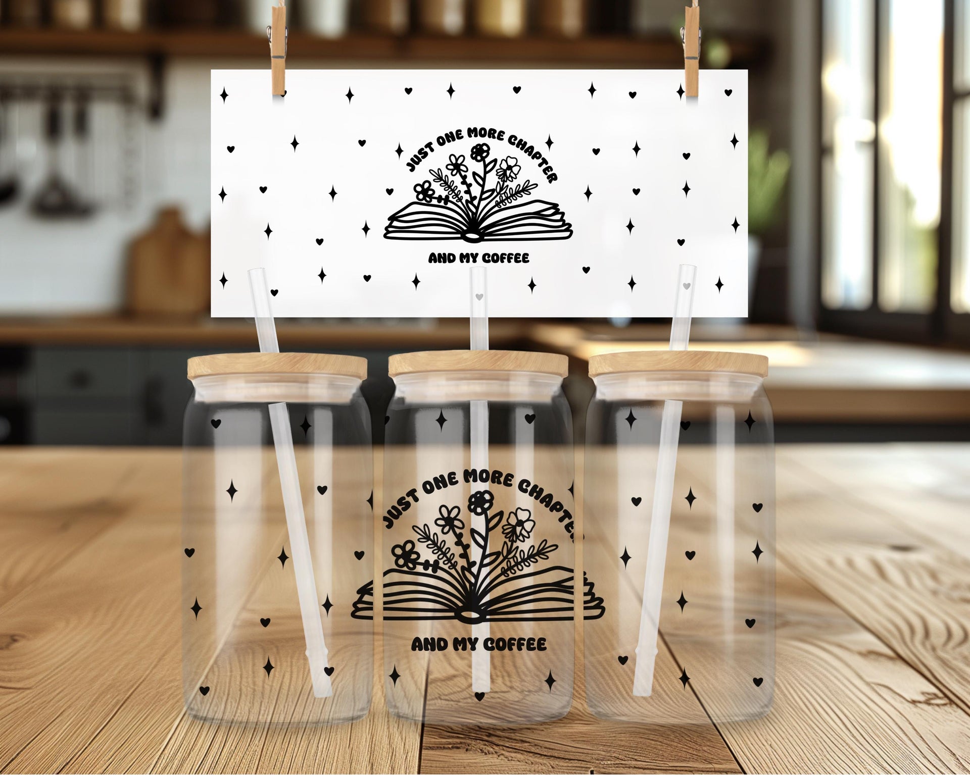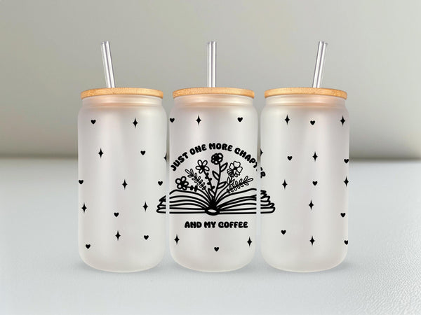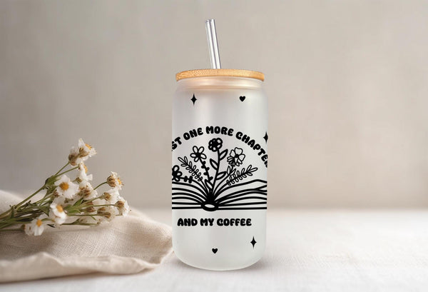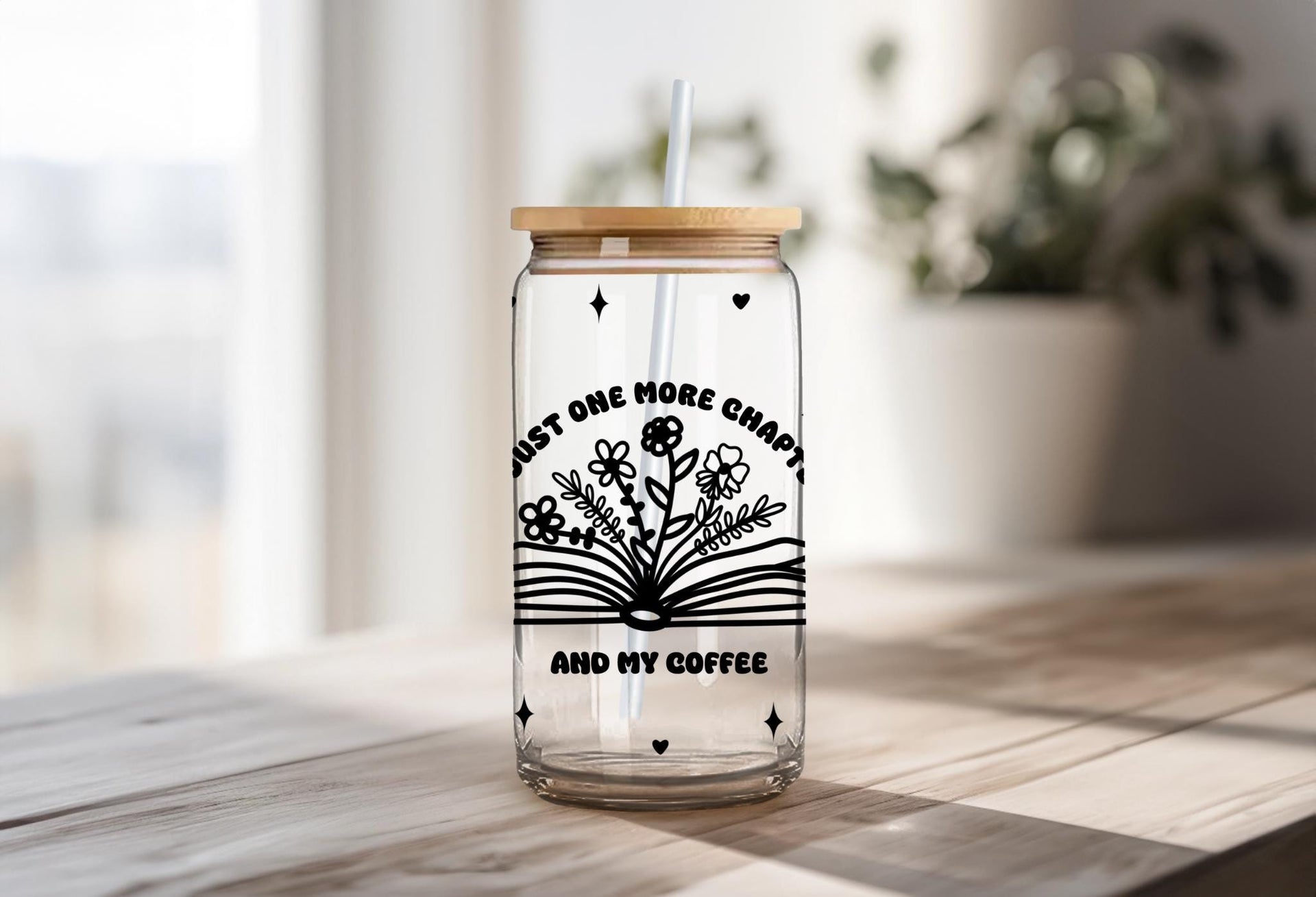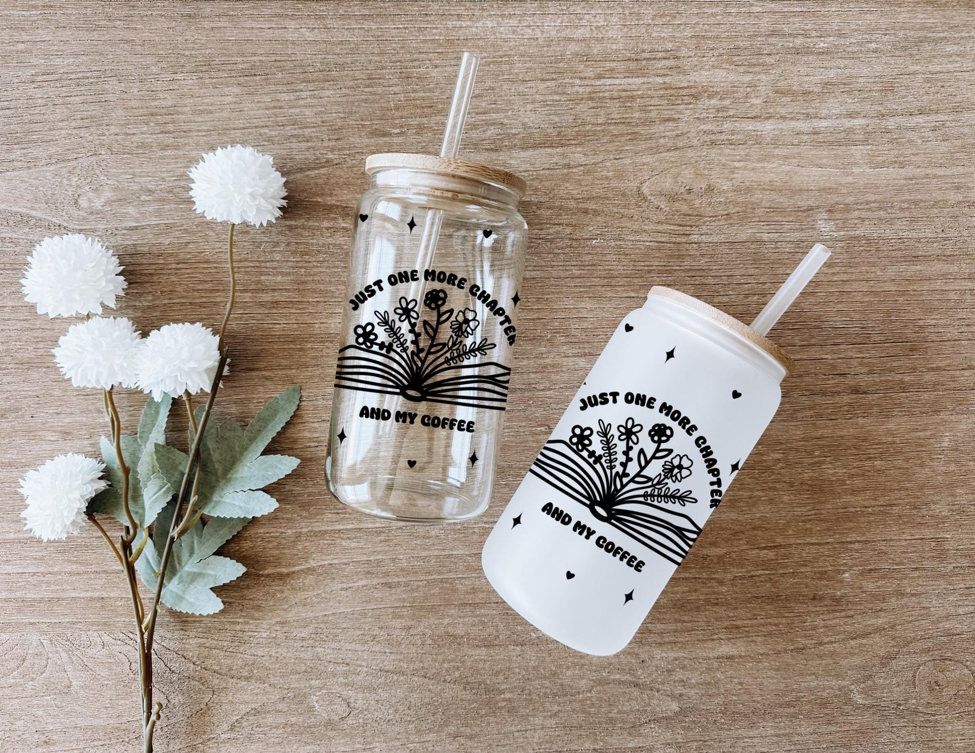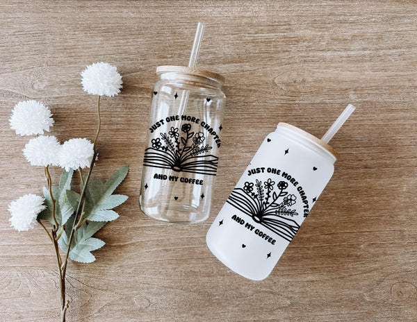 Just One More Chapter Glass Tumbler: Book Lover Iced Coffee Cup