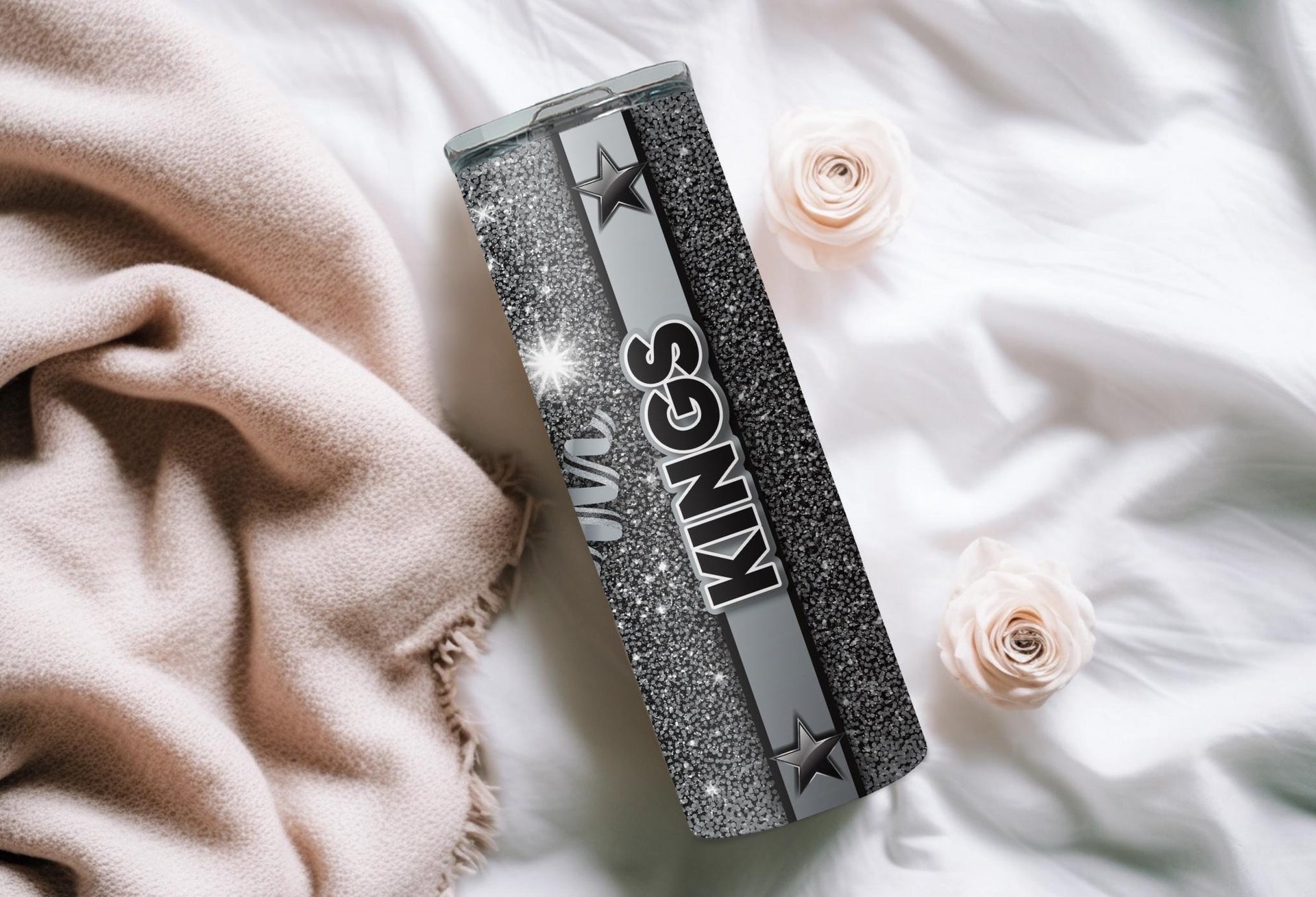 Whether you are cheering at the Crypto.com Arena or watching the game from home, this tumbler is the perfect way to show your team royalty. Featuring a sleek black and silver faux-glitter design, this cup is a stylish must-have for any LA fan.