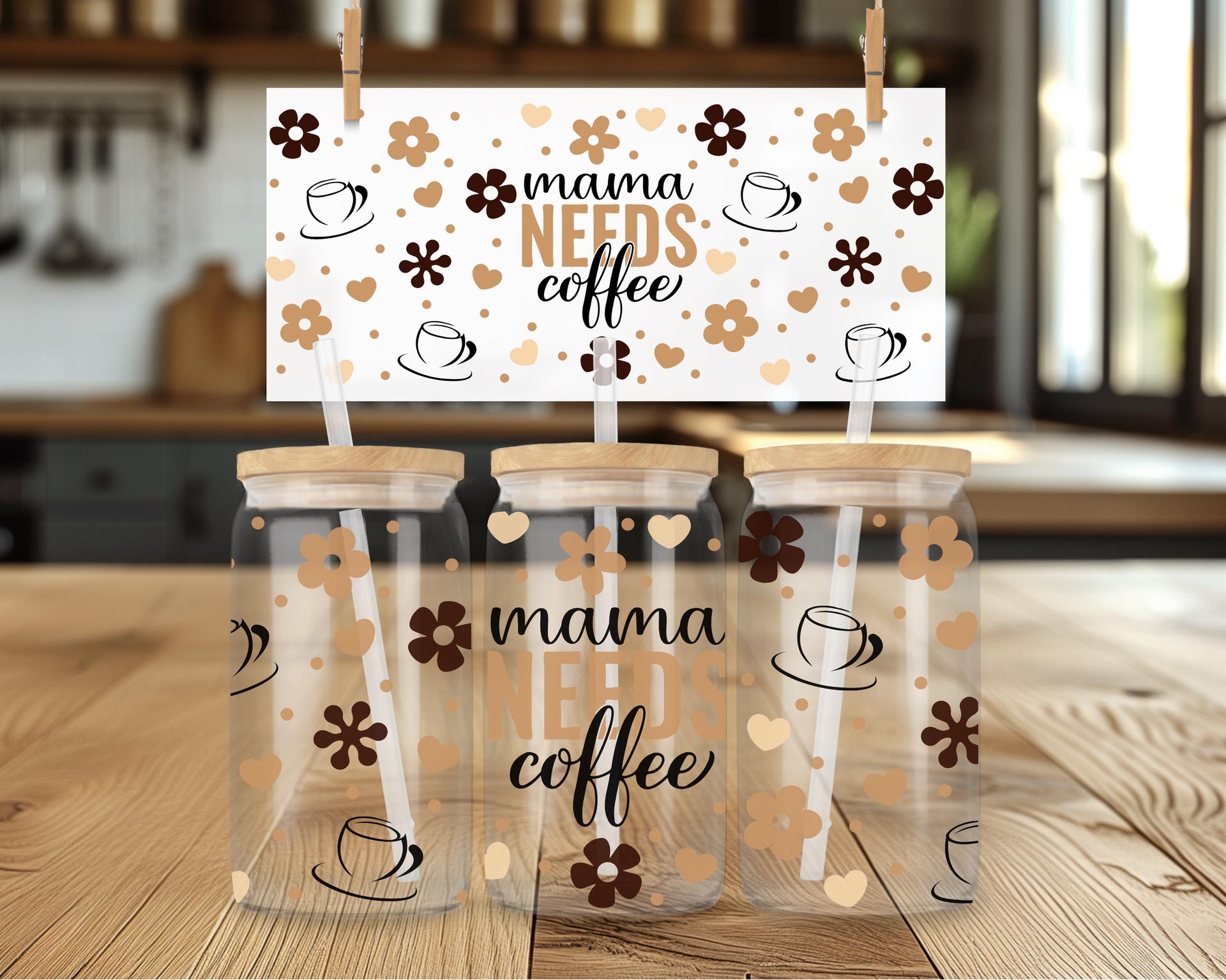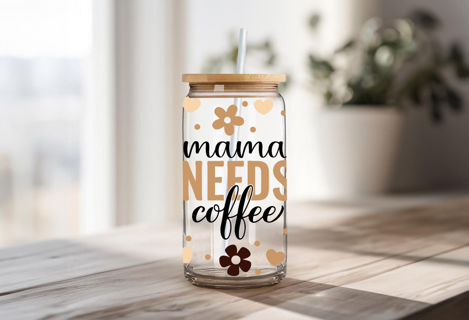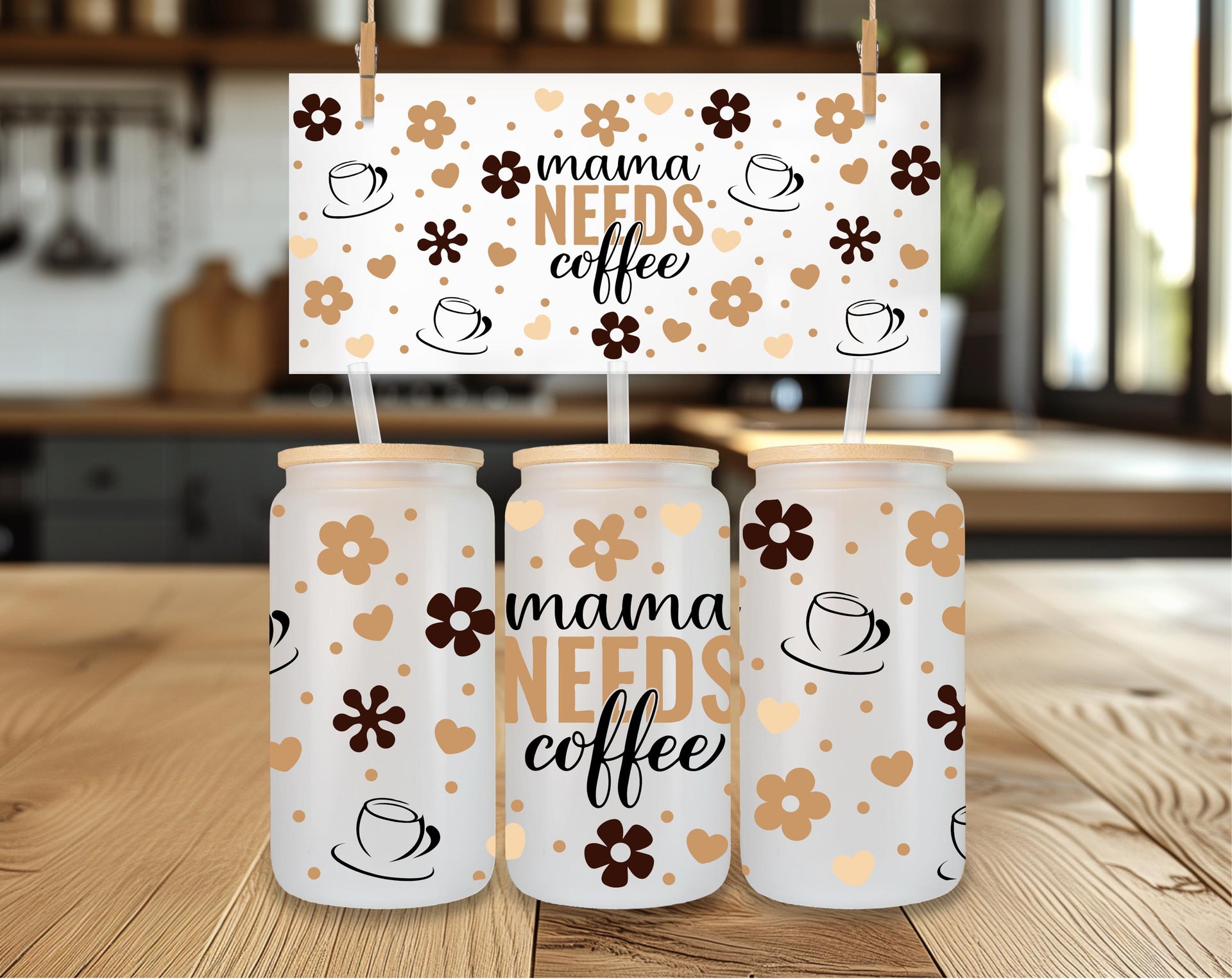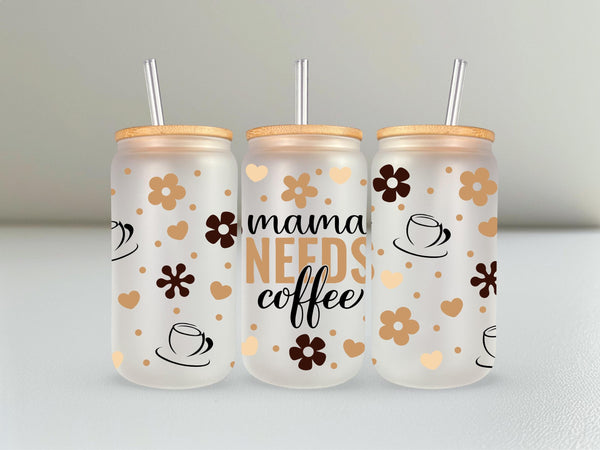 Indulge in your daily caffeine fix with our Mama Needs Coffee glass cup. Holding 16oz, this clear or frosted cup features a bold and relatable "Mama Needs Coffee" design. Perfect for busy moms on-the-go, it's both functional and stylish. Fuel up and conquer the day with this must-have cup!