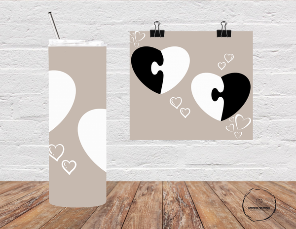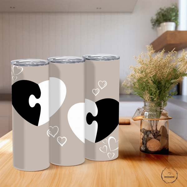 This Puzzle Heart Photo Tumbler is a symbol of unity and connection with its unique design of two interlocking puzzle piece hearts. Personalize it with a name and showcase up to 4 photos using the 2 black and 2 white puzzle pieces. Enjoy hot beverages for up to 6 hours and cold drinks for up to 24 hours!