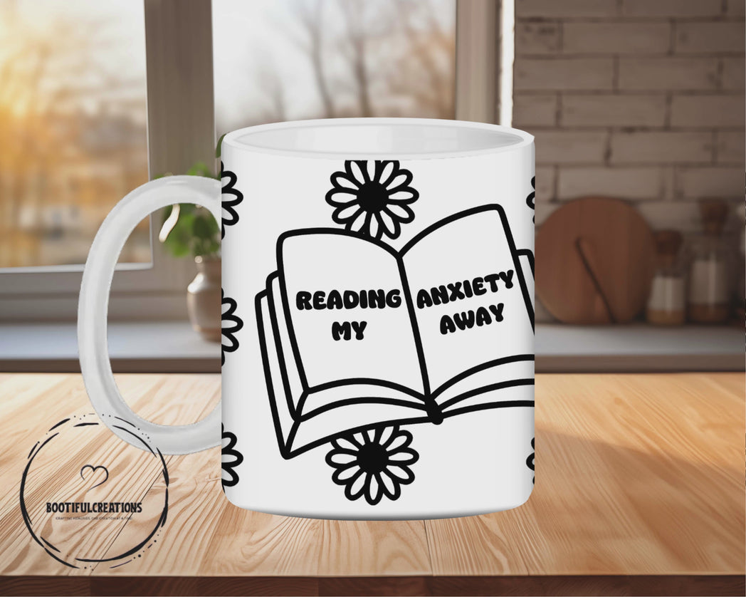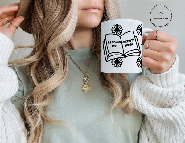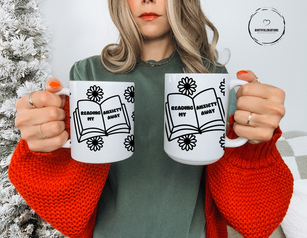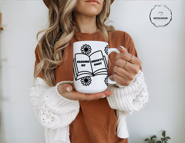 Our "Reading My Anxiety Away" coffee mug lets you start your day with a sense of calm. Available in 11oz or 15oz, this ceramic mug features a beautiful floral design, making it both functional and stylish. Sip your coffee and let the therapeutic power of reading soothe your worries. Get yours today!