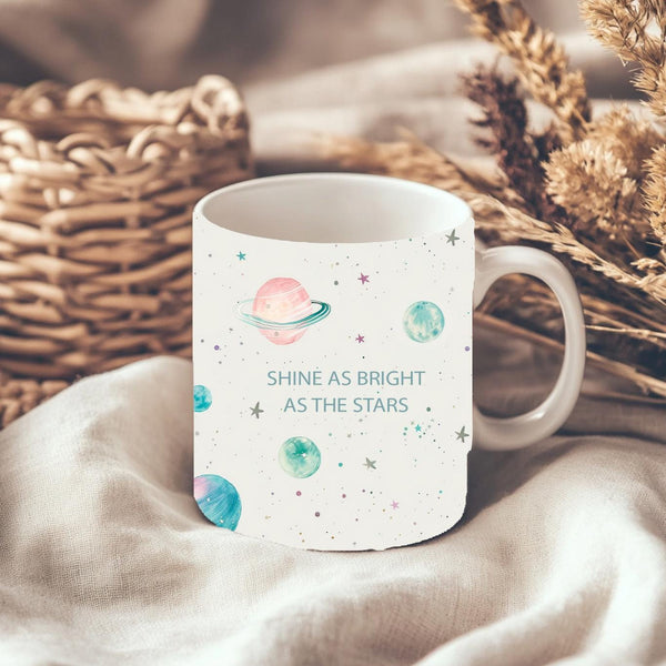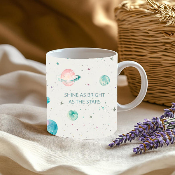 Embark on your adventures and illuminate your spirit with our "Shine As Bright As The Stars" Sagittarius Zodiac Coffee Mug! This enchanting mug features a whimsical design with pastel planets, twinkling stars, and delicate cosmic elements scattered across a soft, celestial background. On one side, it proudly displays the adventurous Sagittarius zodiac symbol and name, while the other side carries the inspiring message, "Shine As Bright As The Stars."
