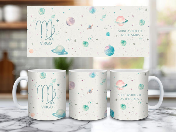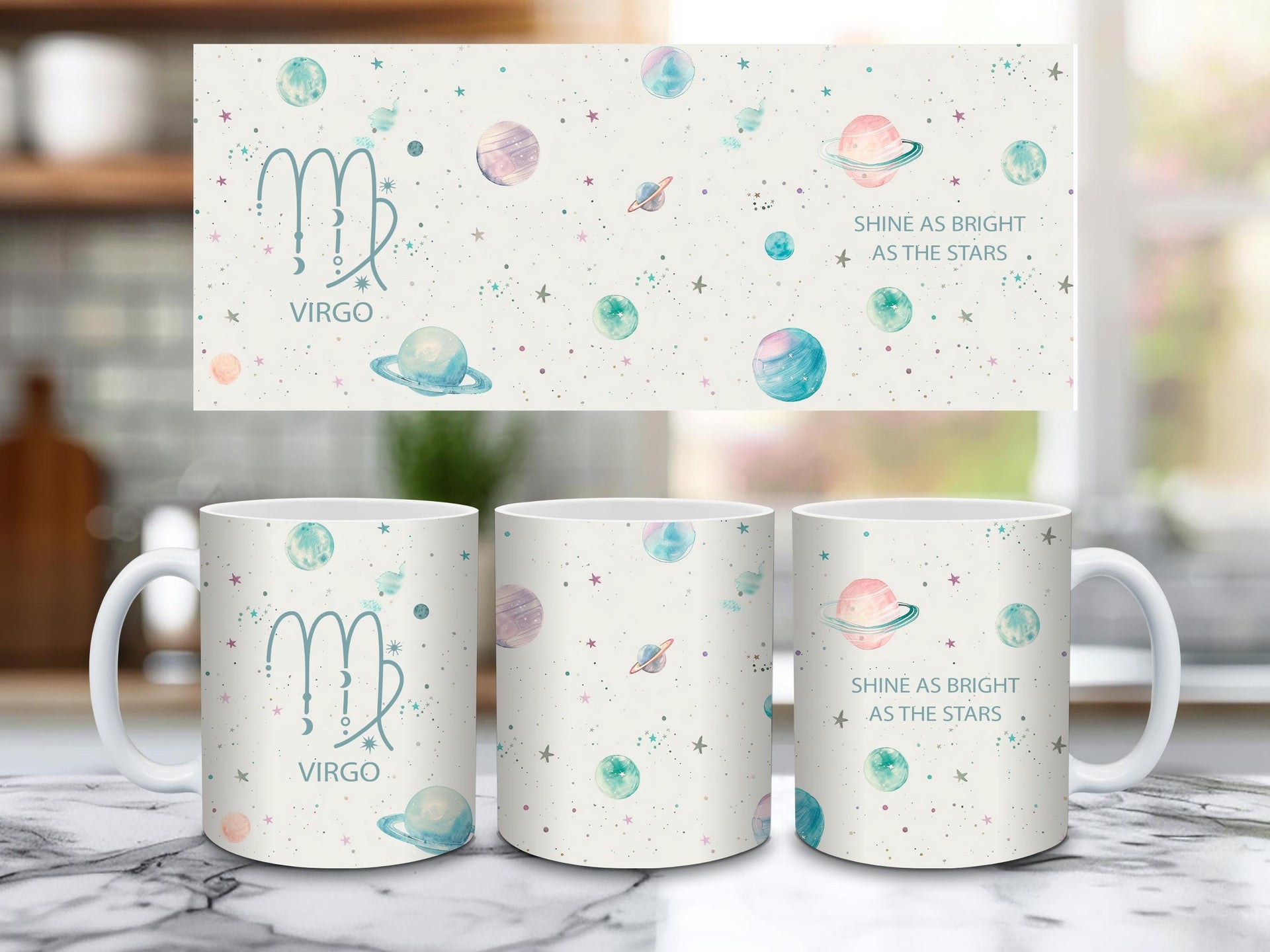 Cultivate clarity and let your inner light shine with our "Shine As Bright As The Stars" Virgo Zodiac Coffee Mug! This enchanting mug features a whimsical design with pastel planets, twinkling stars, and delicate cosmic elements scattered across a soft, celestial background. On one side, it proudly displays the meticulous Virgo zodiac symbol and name, while the other side carries the inspiring message, "Shine As Bright As The Stars."