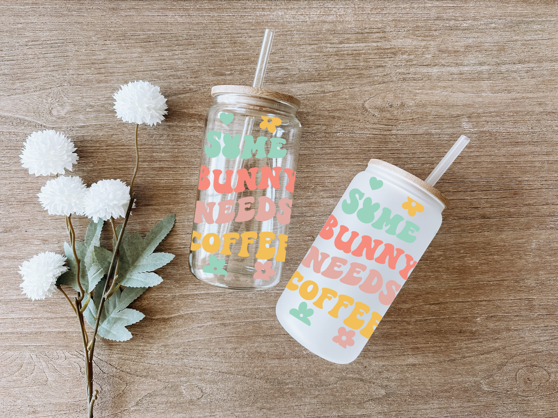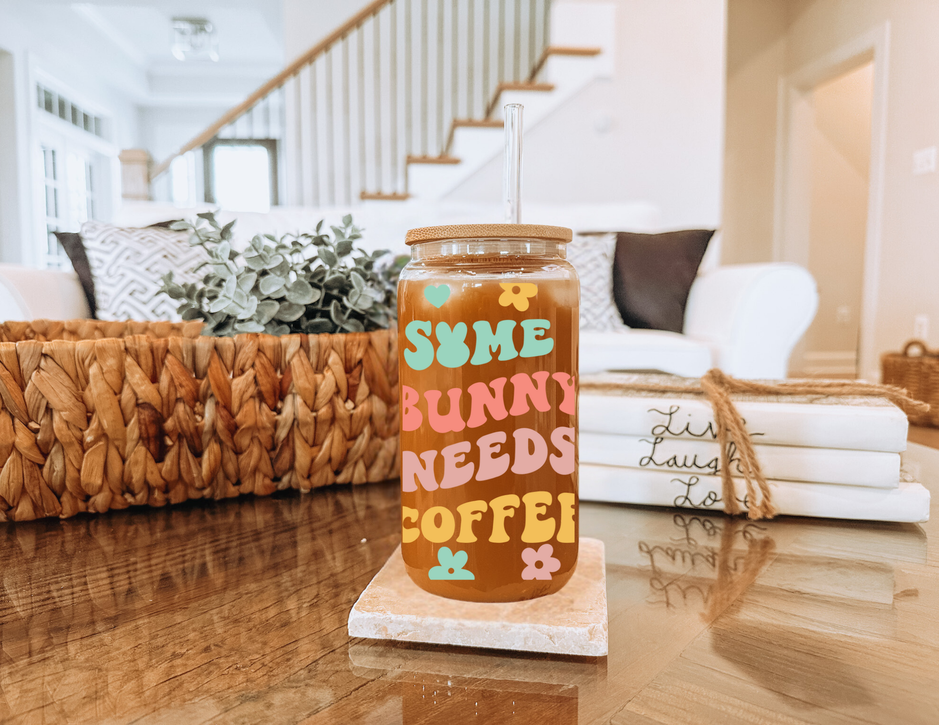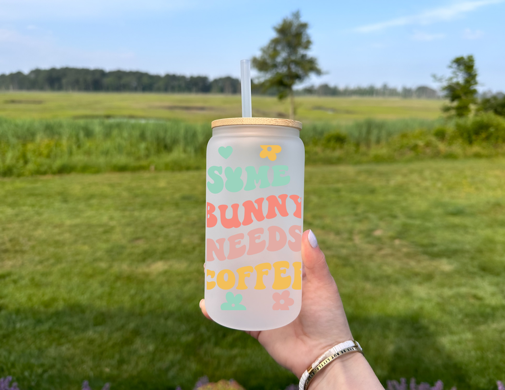 Get your caffeine fix and show off your adorable side with the "Some Bunny Needs Coffee" Glass Cup. At 16oz, this cup holds just the right amount for your morning brew. Adorned with pastel flowers, hearts, and eggs, it's the perfect way to start your day with a touch of cuteness (and caffeine)!