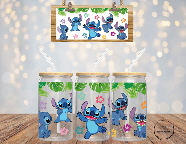 Add a touch of tropical paradise to your morning routine with our Stitch Glass Cup! Featuring intricate stitched detailing of vibrant flowers, this 16oz glass cup comes in a clear or frosted design. Sip your favorite drink in style and transport yourself to an island getaway with every sip.