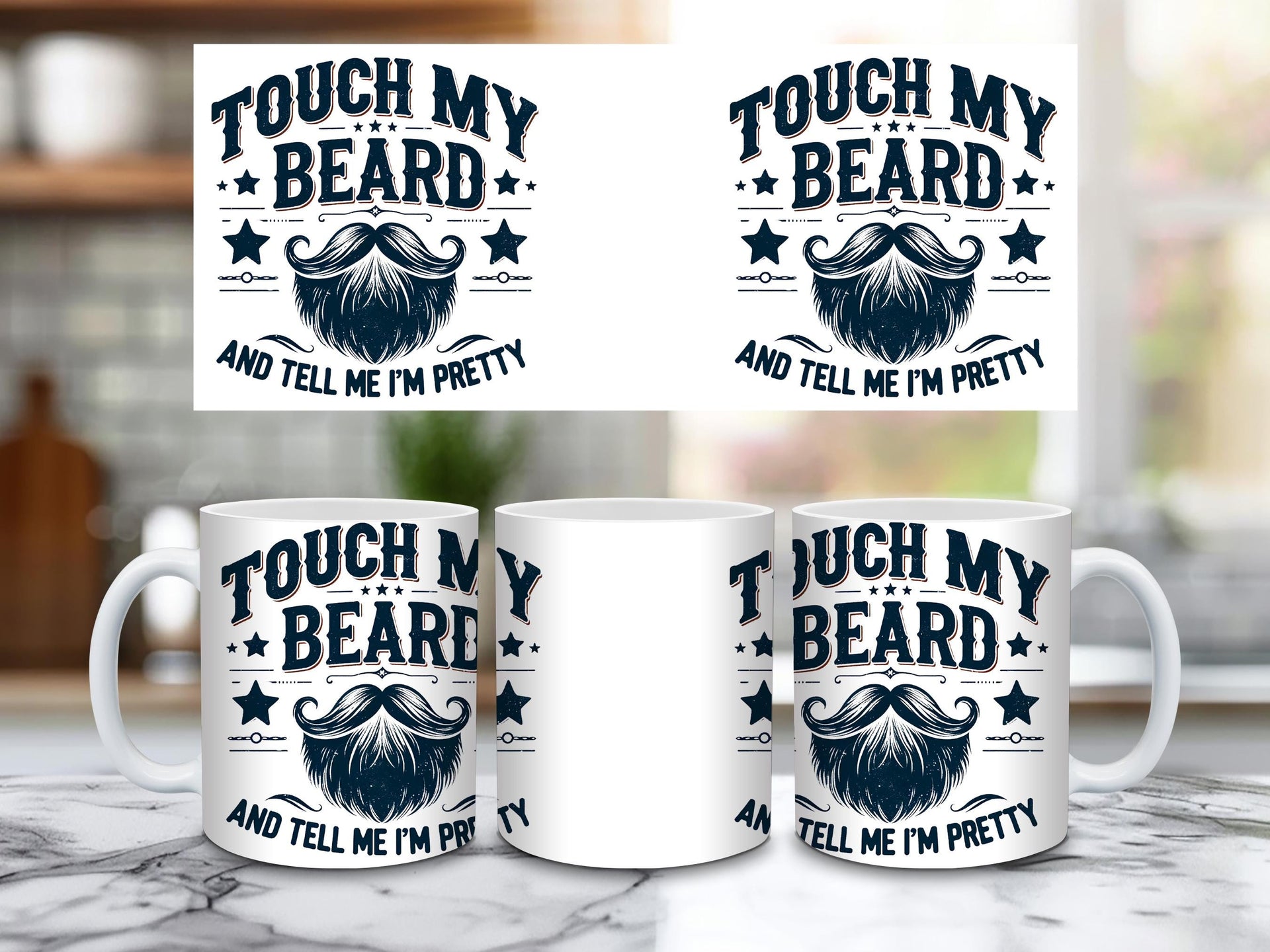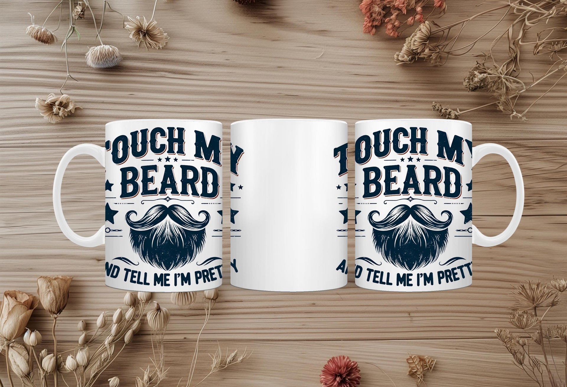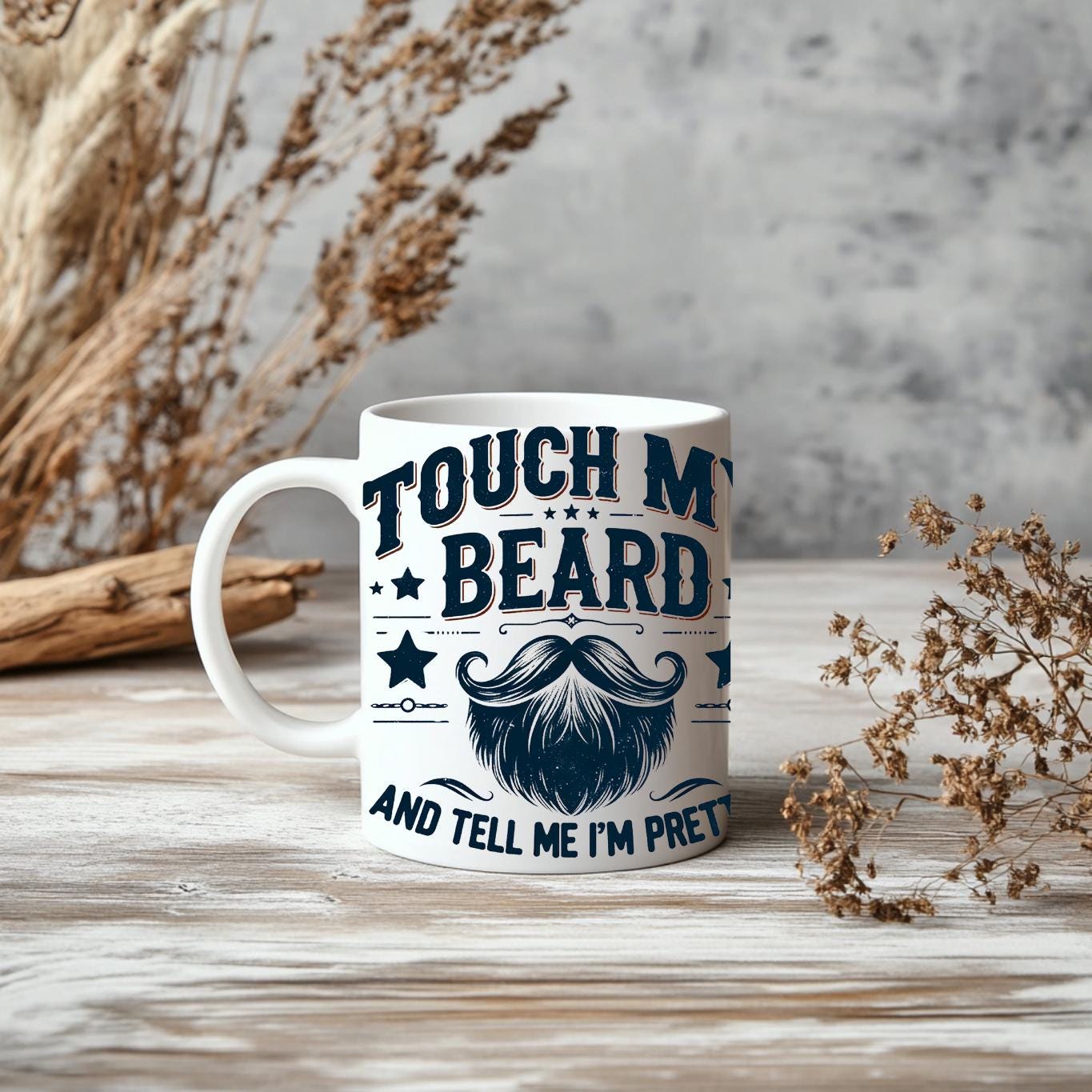 Get ready for some laughs with our hilarious "Touch My Beard & Tell Me I'm Pretty" Coffee Mug! This fun and quirky mug features a bold, vintage-inspired design with a stylish mustache and beard illustration, surrounded by stars and a playful command. It's the perfect way for any bearded individual to express their unique sense of humor and perhaps get a few compliments along with their coffee. Crafted from durable ceramic, it's available in both a convenient 11oz and a more generous 15oz size to suit all preferences.