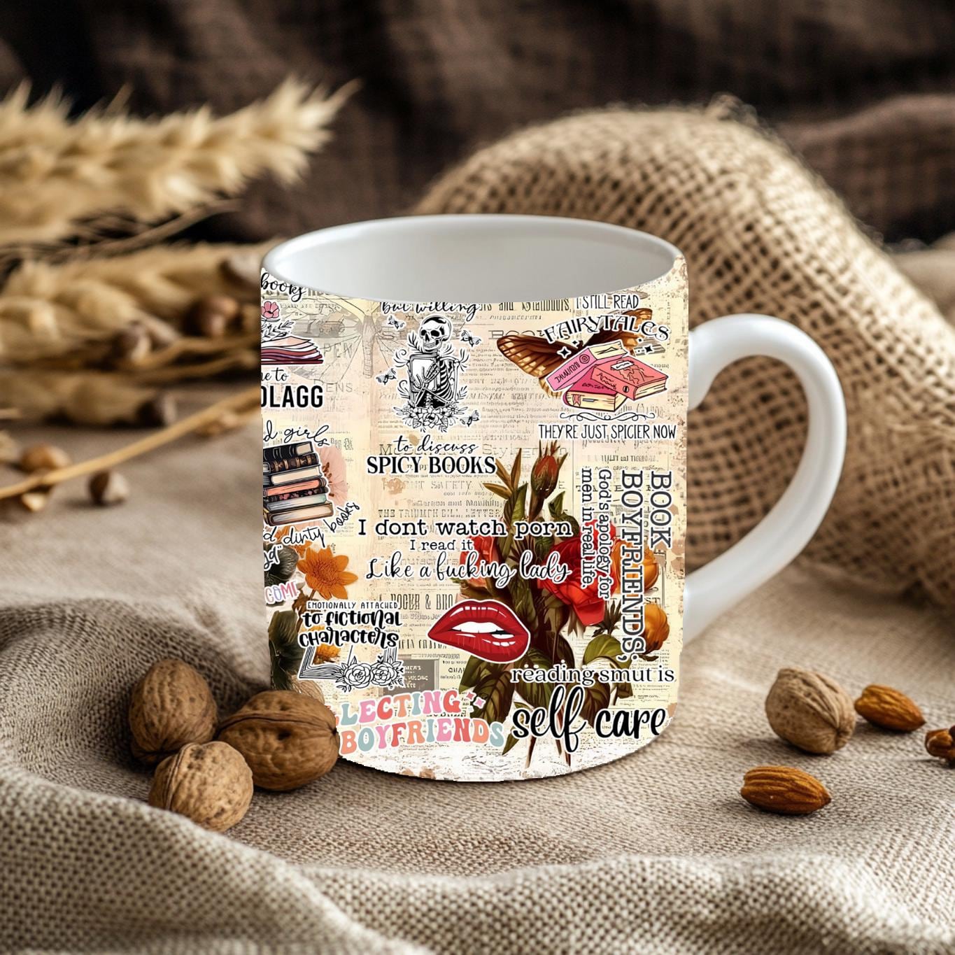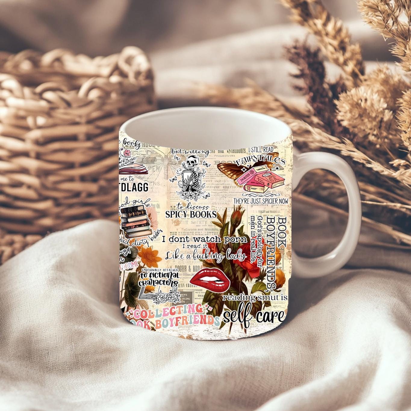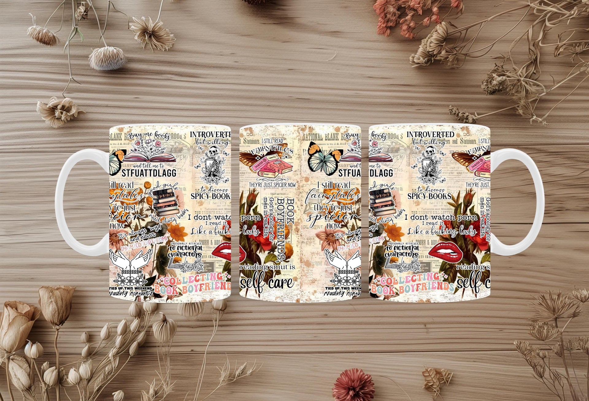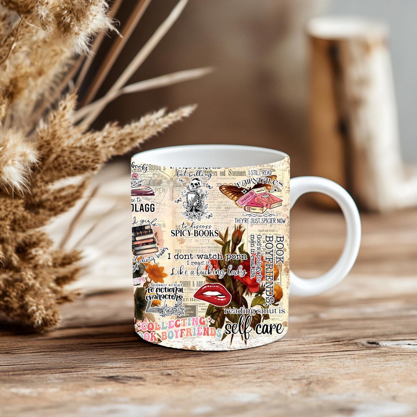 Vintage Reader's Self-Care Mug - Collecting Book Boyfriends & Spicy Books, Maximalist Bookworm Gift 11oz 15oz