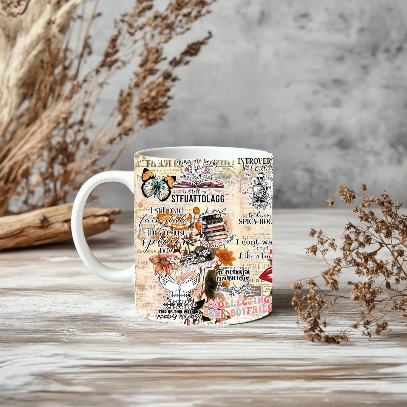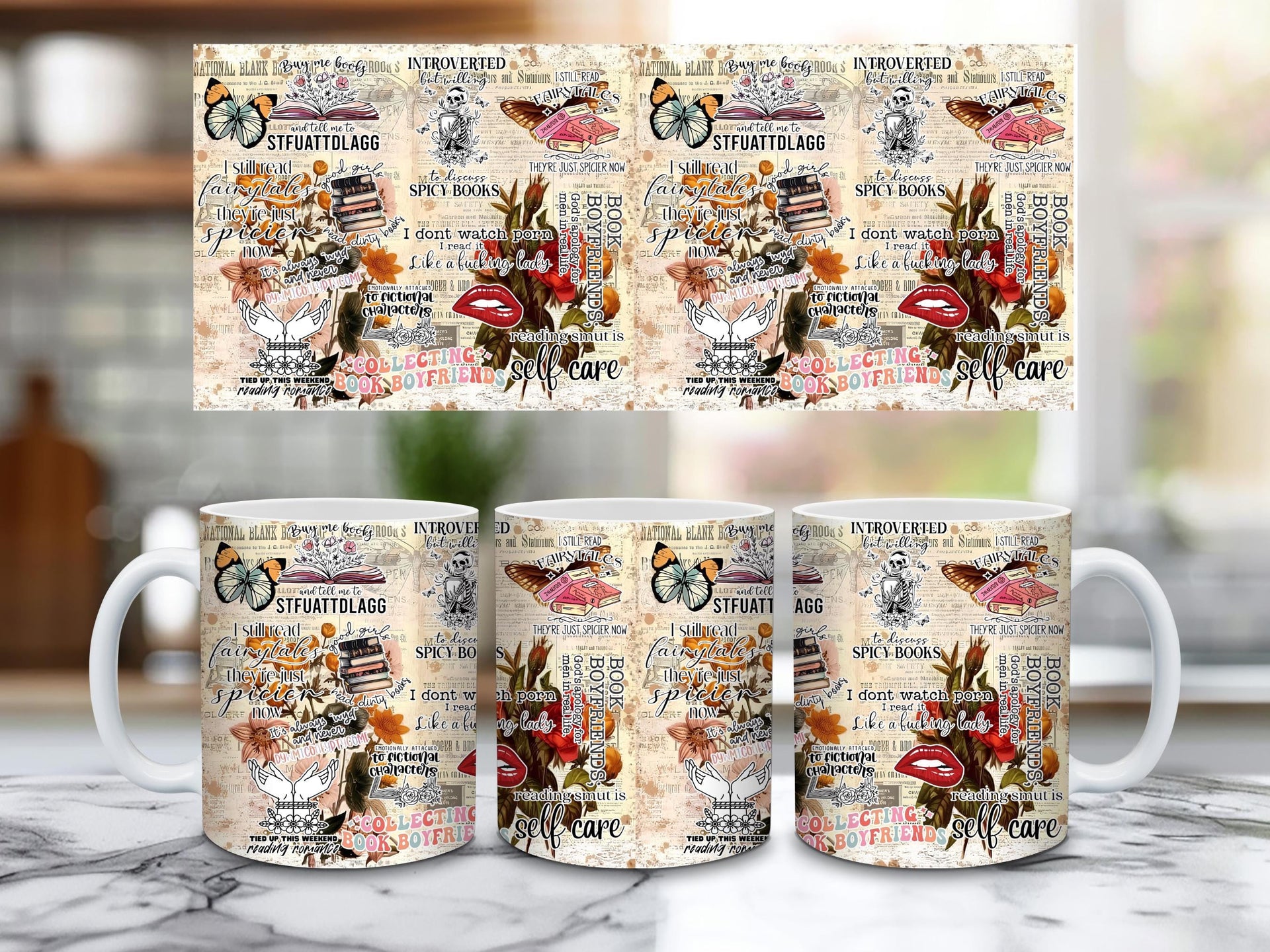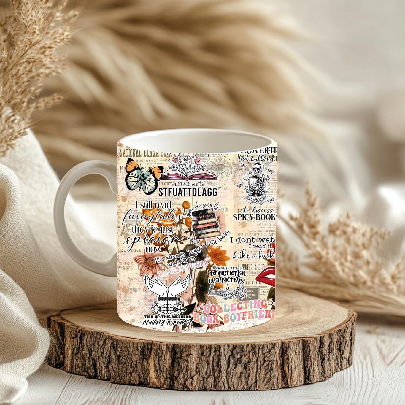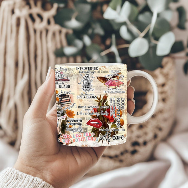 Vintage Reader's Self-Care Mug - Collecting Book Boyfriends & Spicy Books, Maximalist Bookworm Gift 11oz 15oz